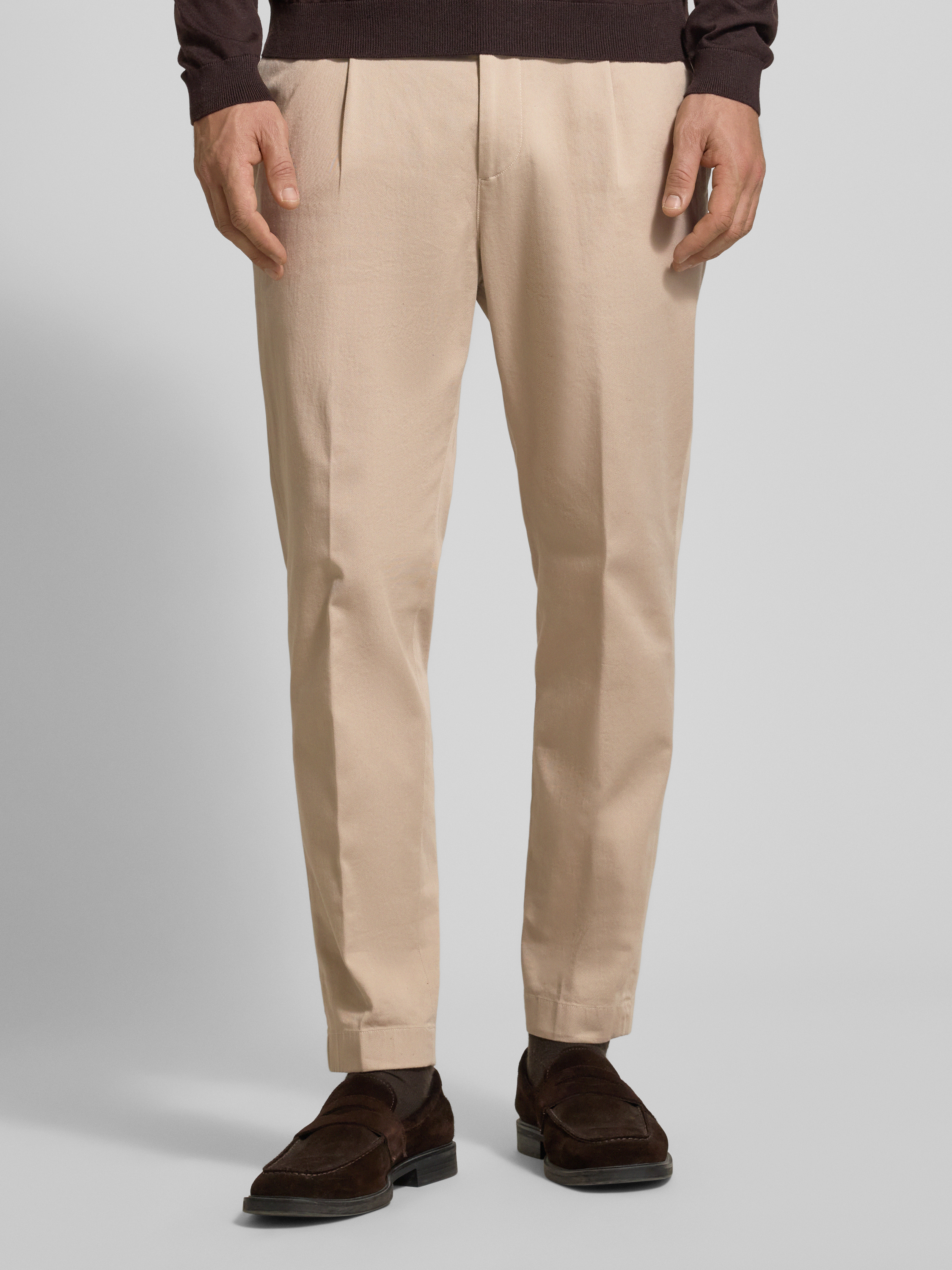JOOP! CollectionStoffen broek met bandplooien, model 'Lester' in beige