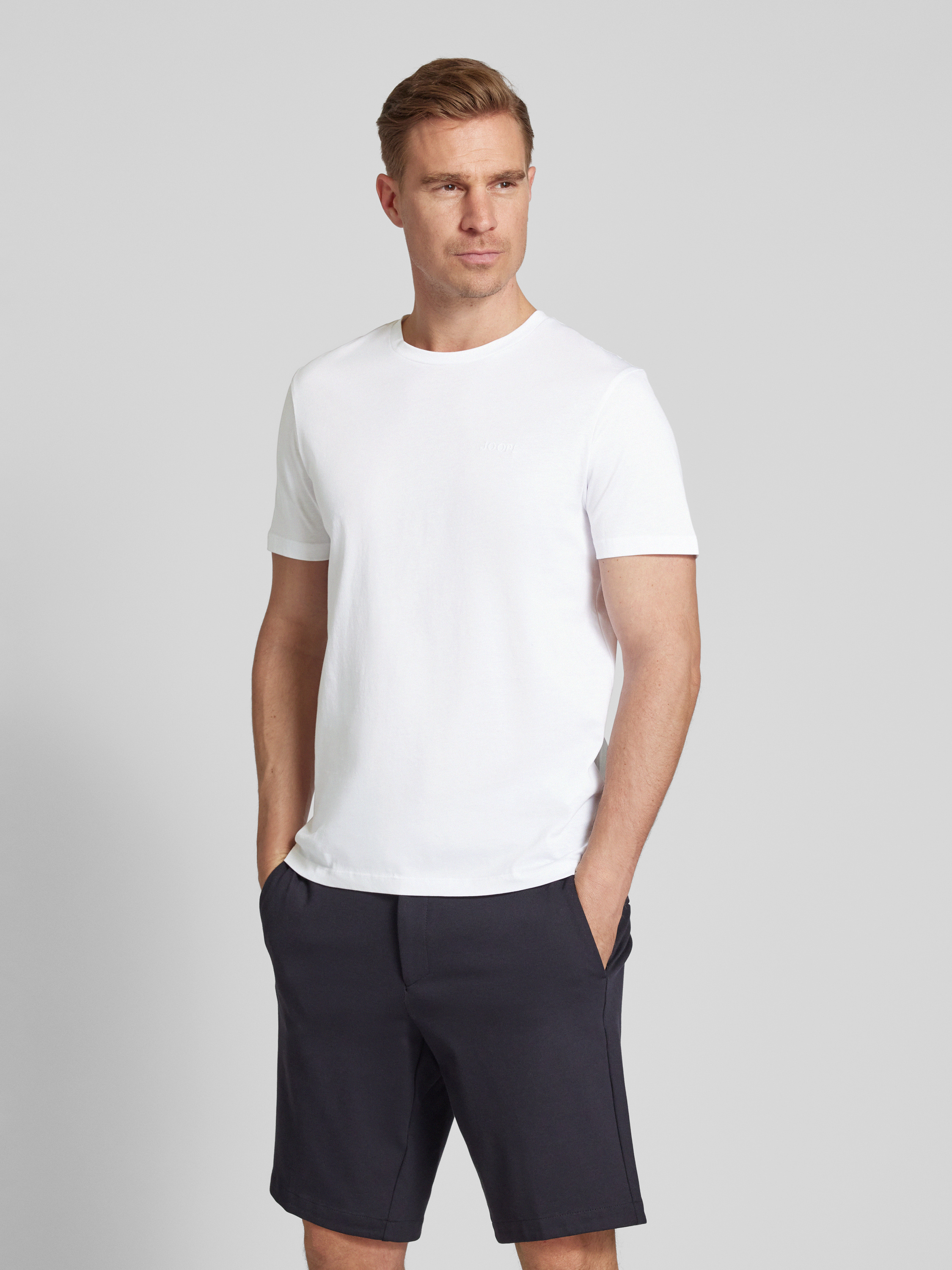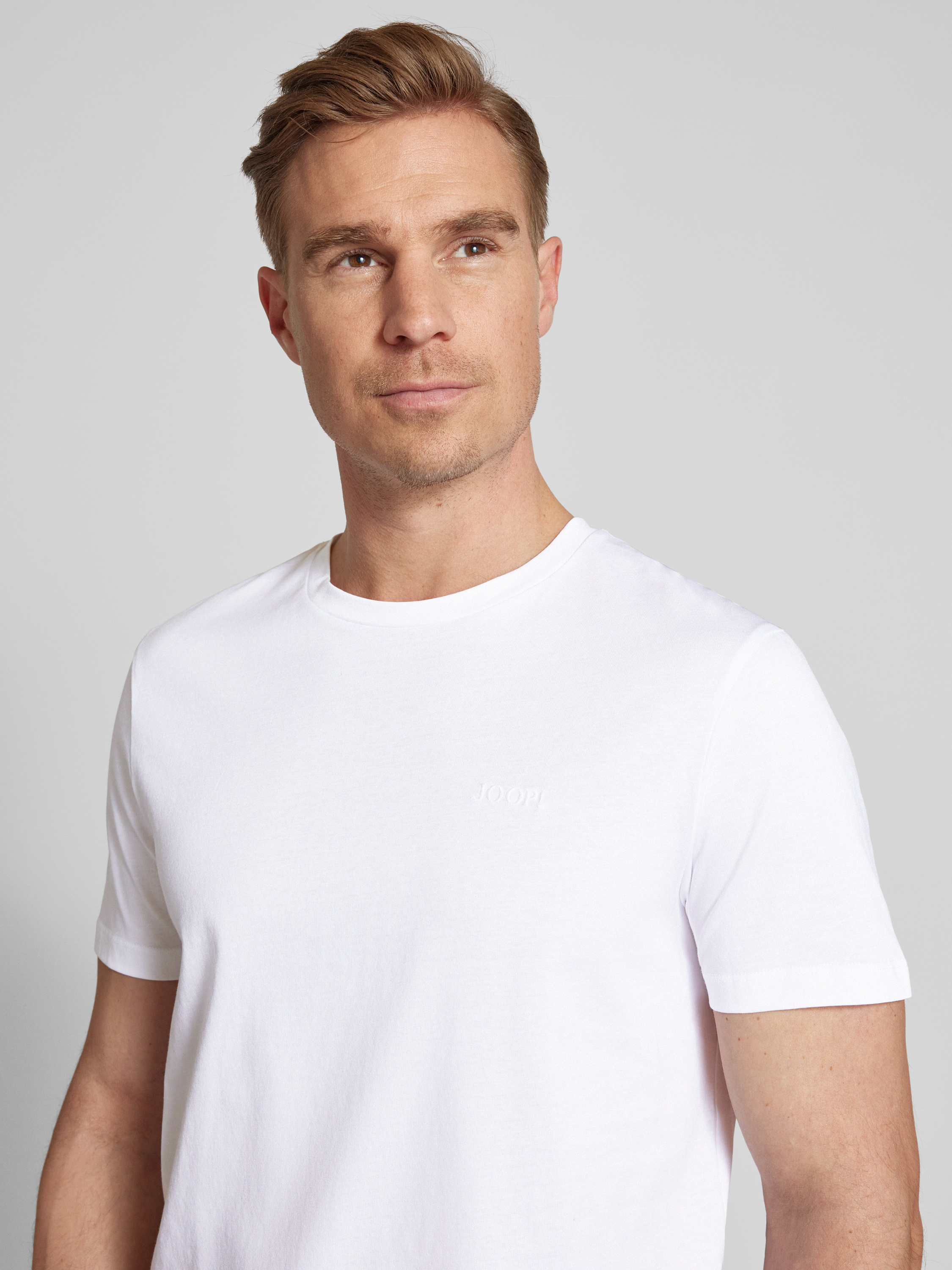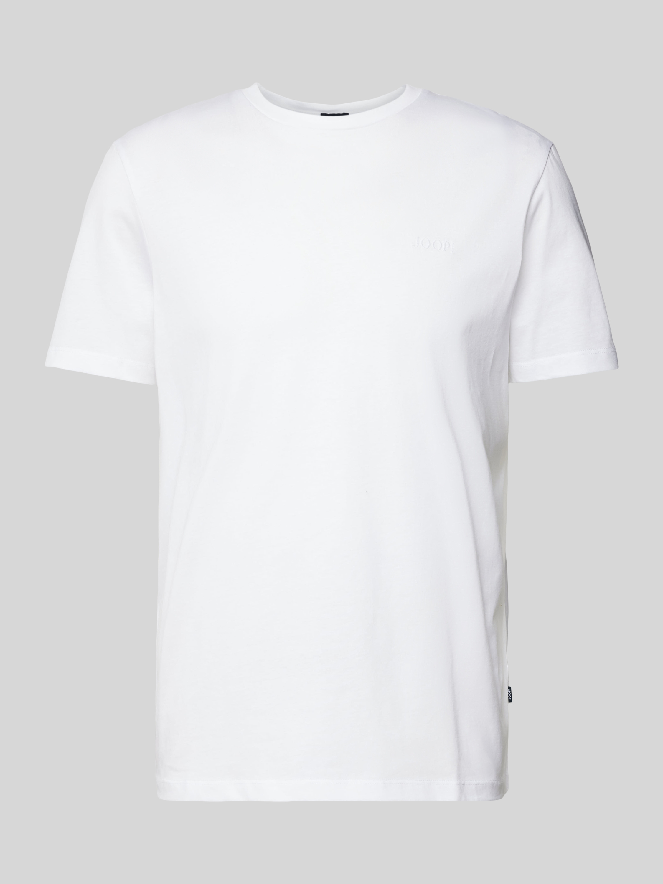 T-shirt met geribde ronde hals, model 'Cosmo' in offwhite