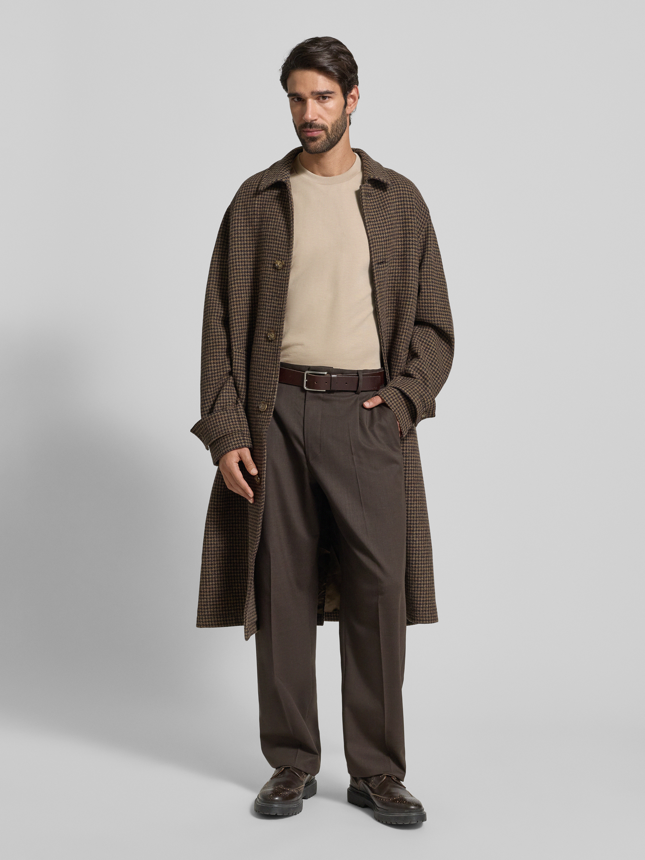 Lange jas van wol met mouwtrensjes, model 'PINE'