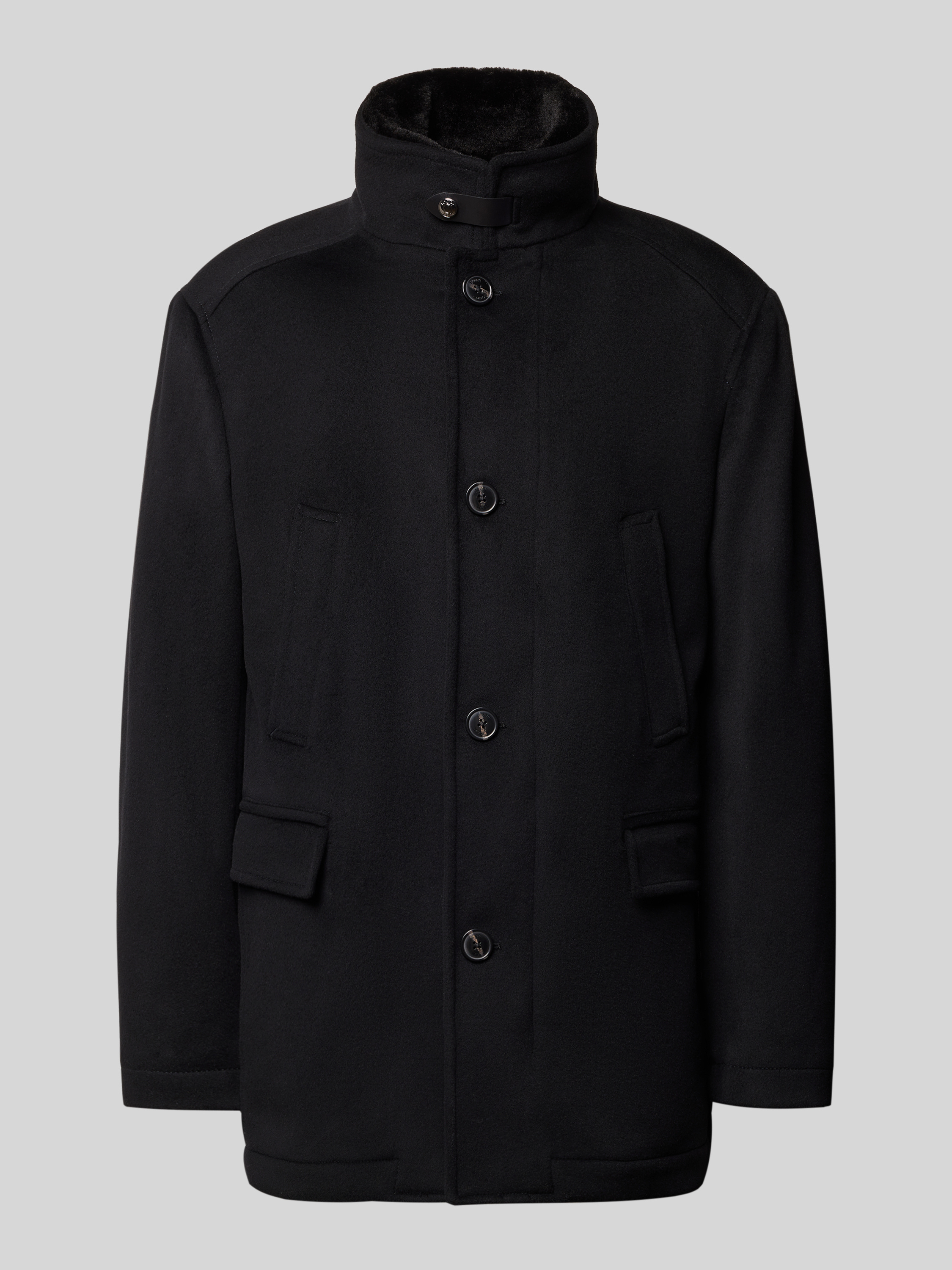 Wollen jack met opstaande kraag en klepzakken, model 'Gary' in zwart