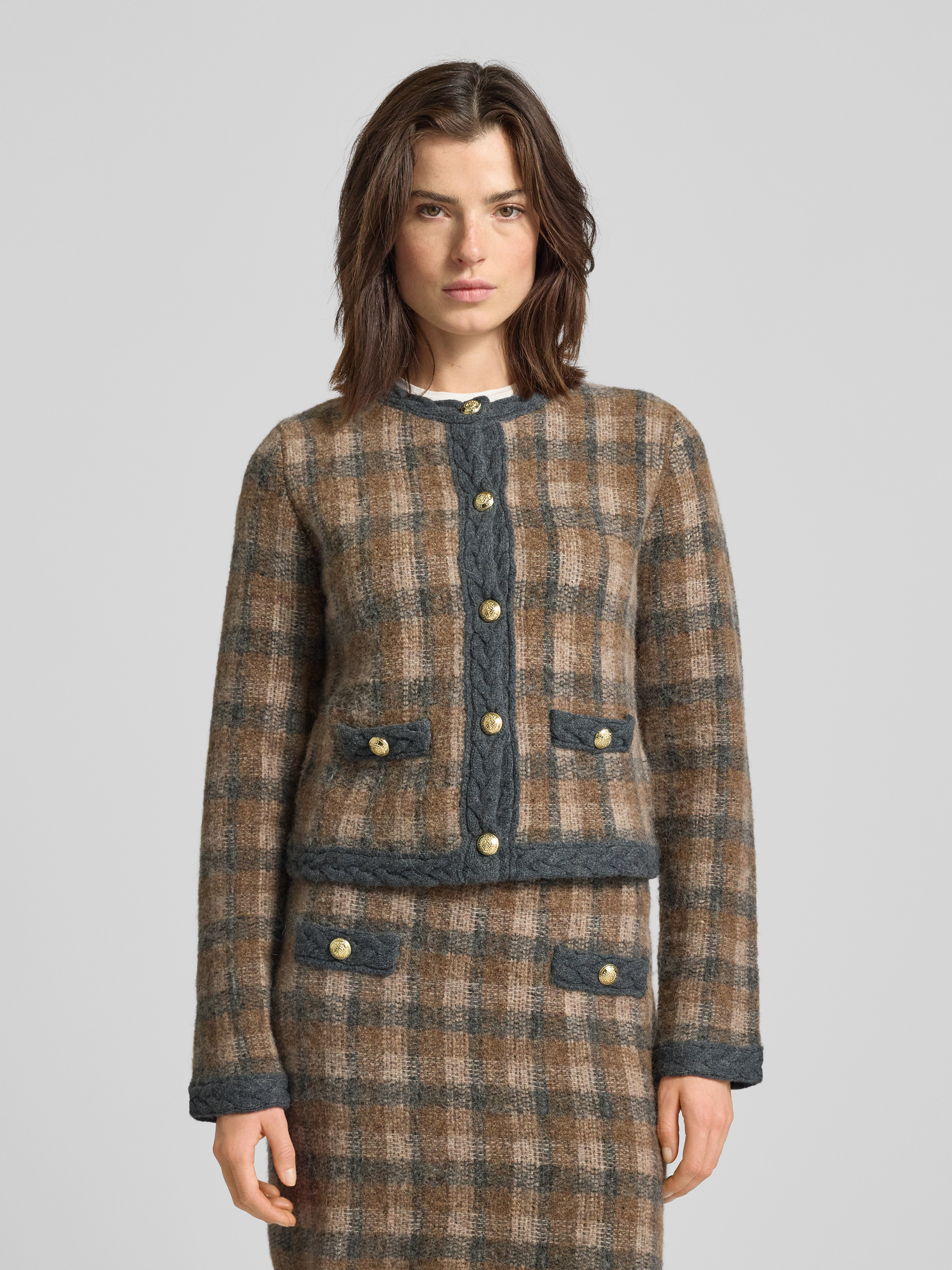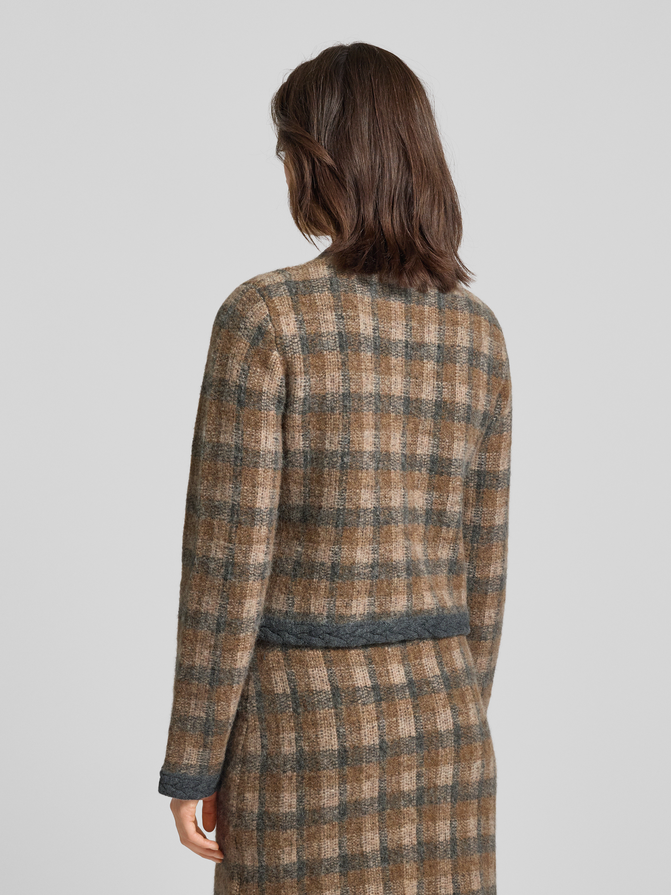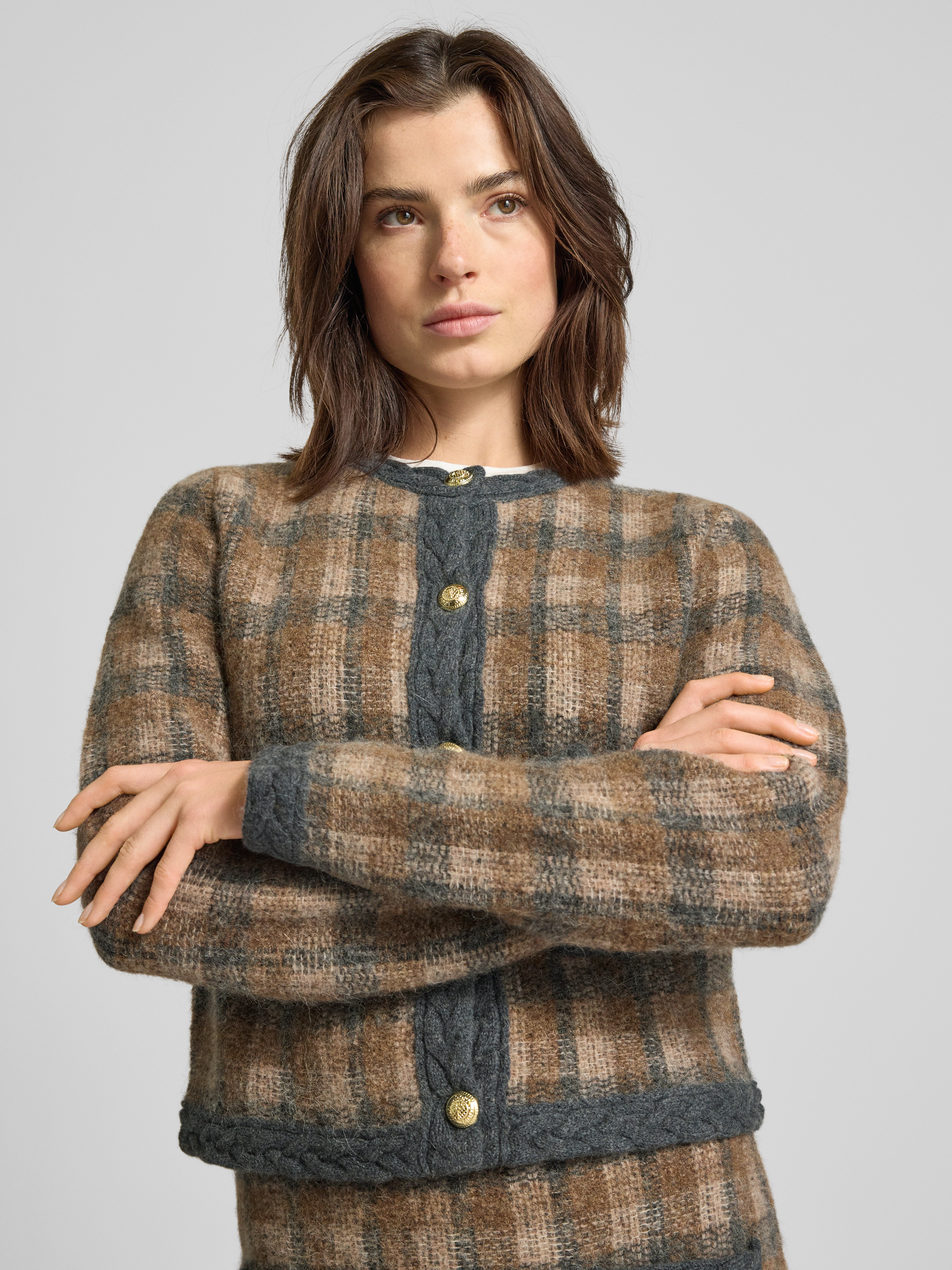 Gebreid jack van alpacamix met ronde hals, model 'KEA' in middenbruin