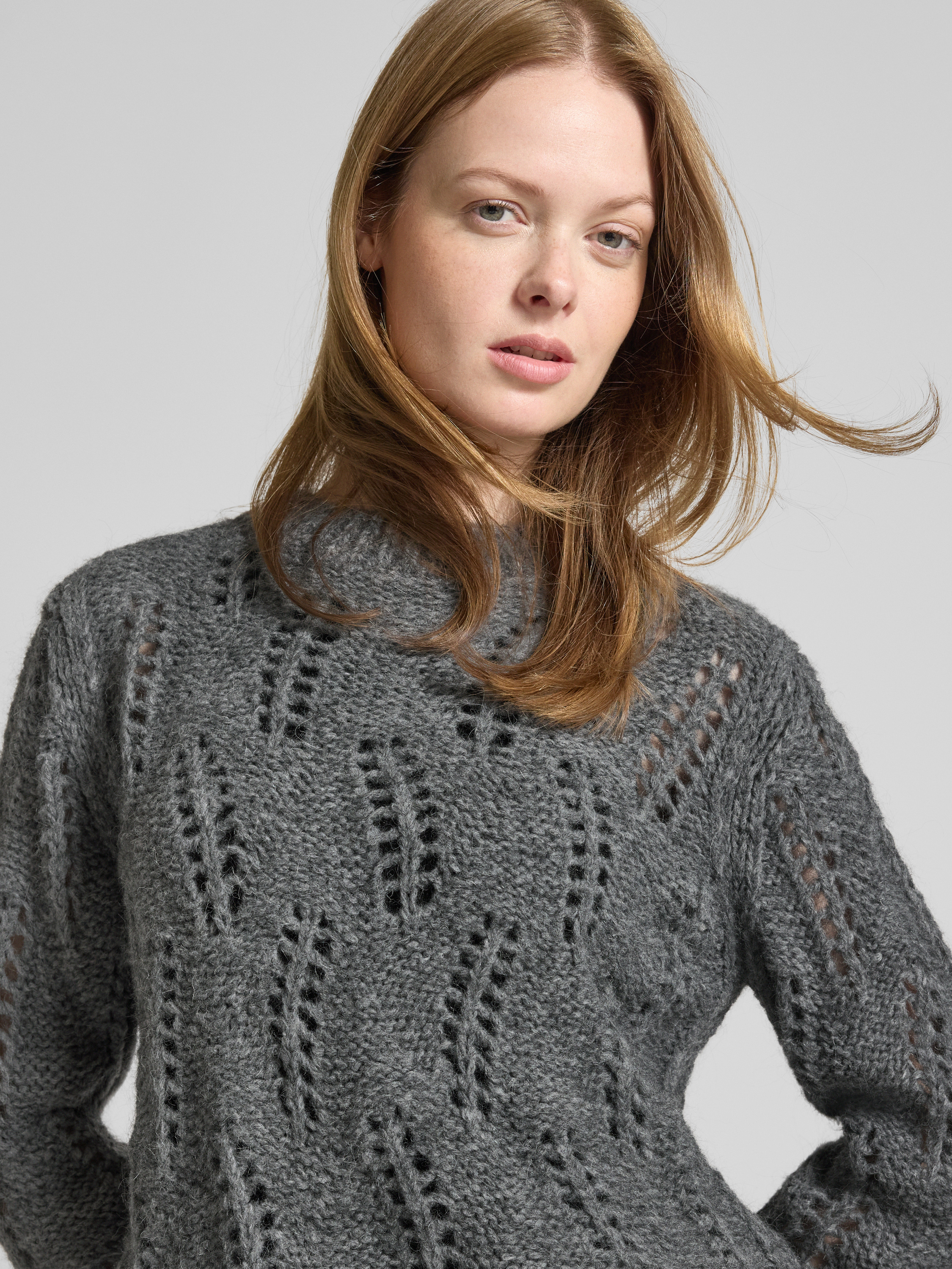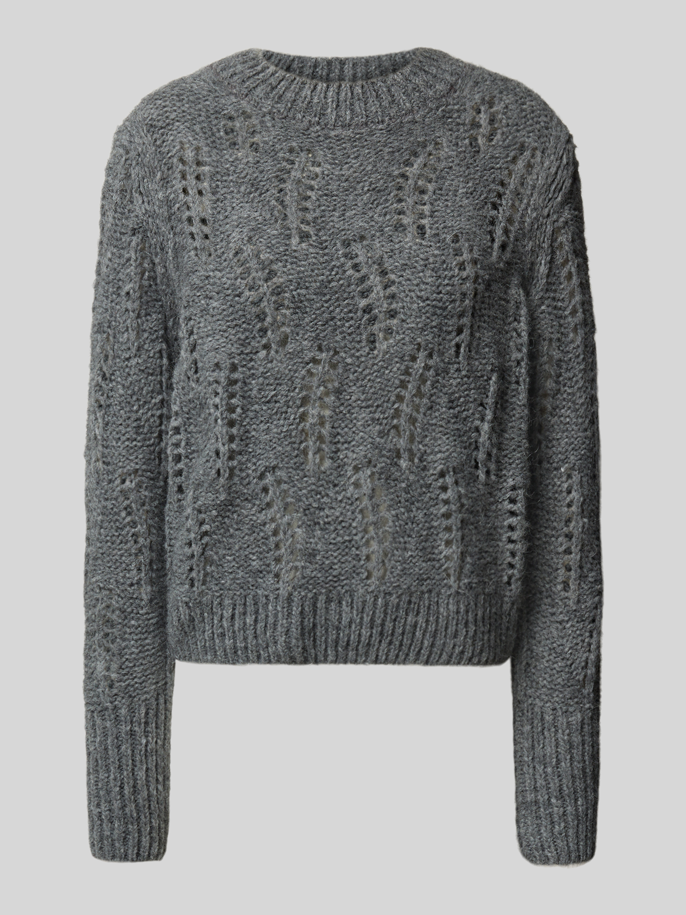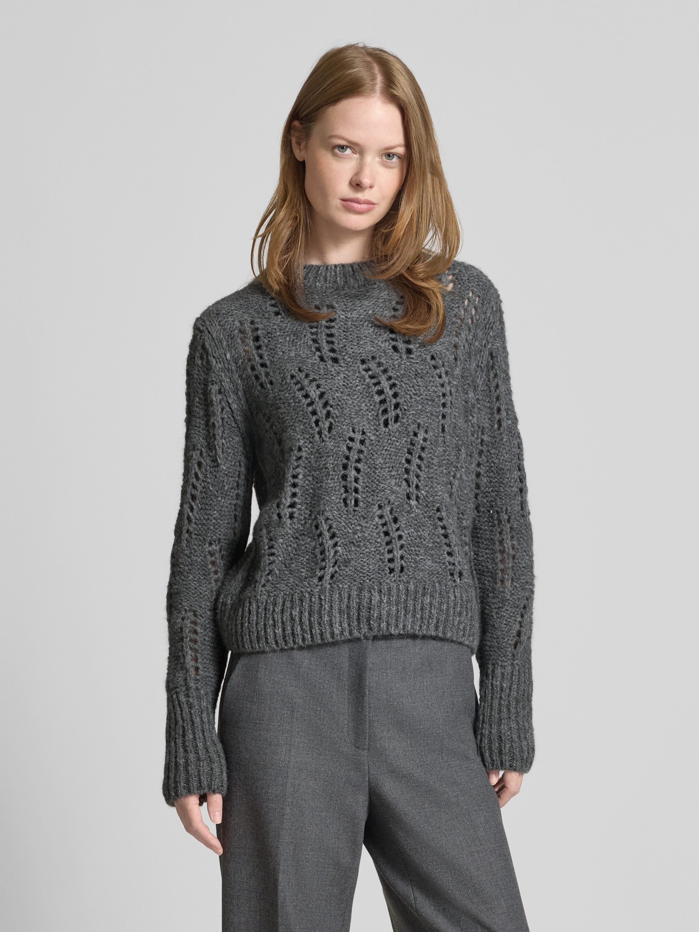 JOOP!Gebreide pullover met alpaca en ronde hals in lichtgrijs gemêleerd