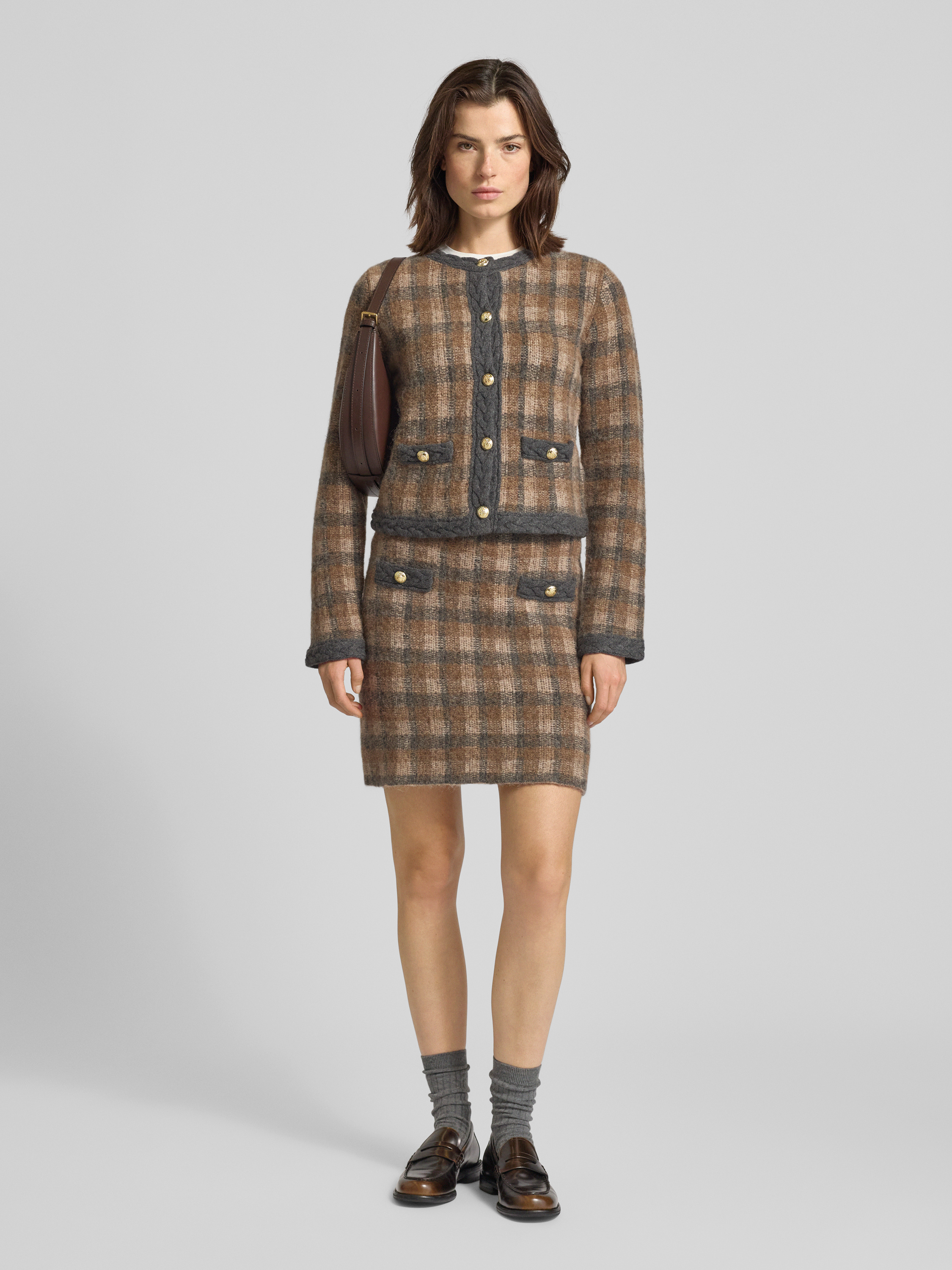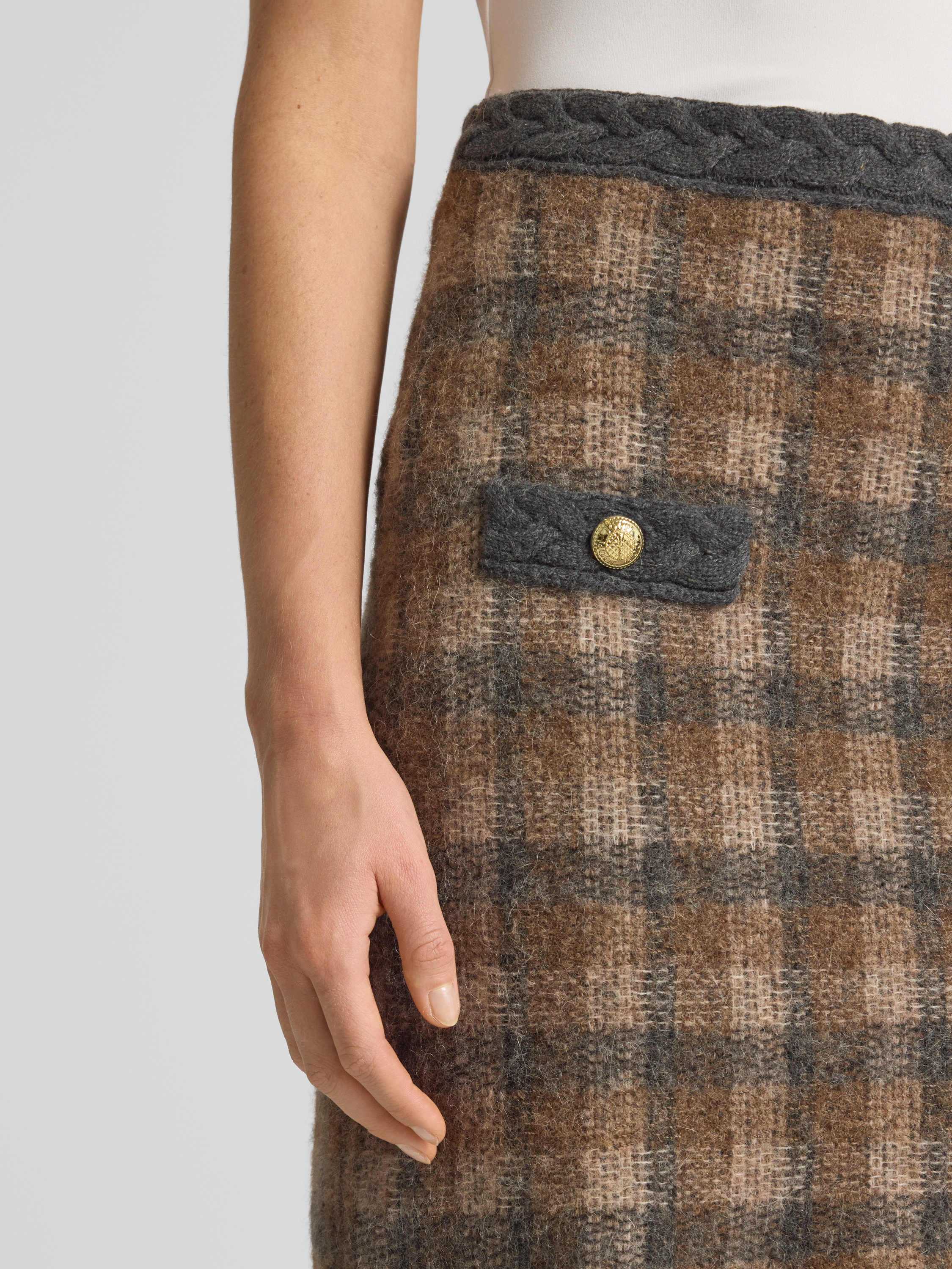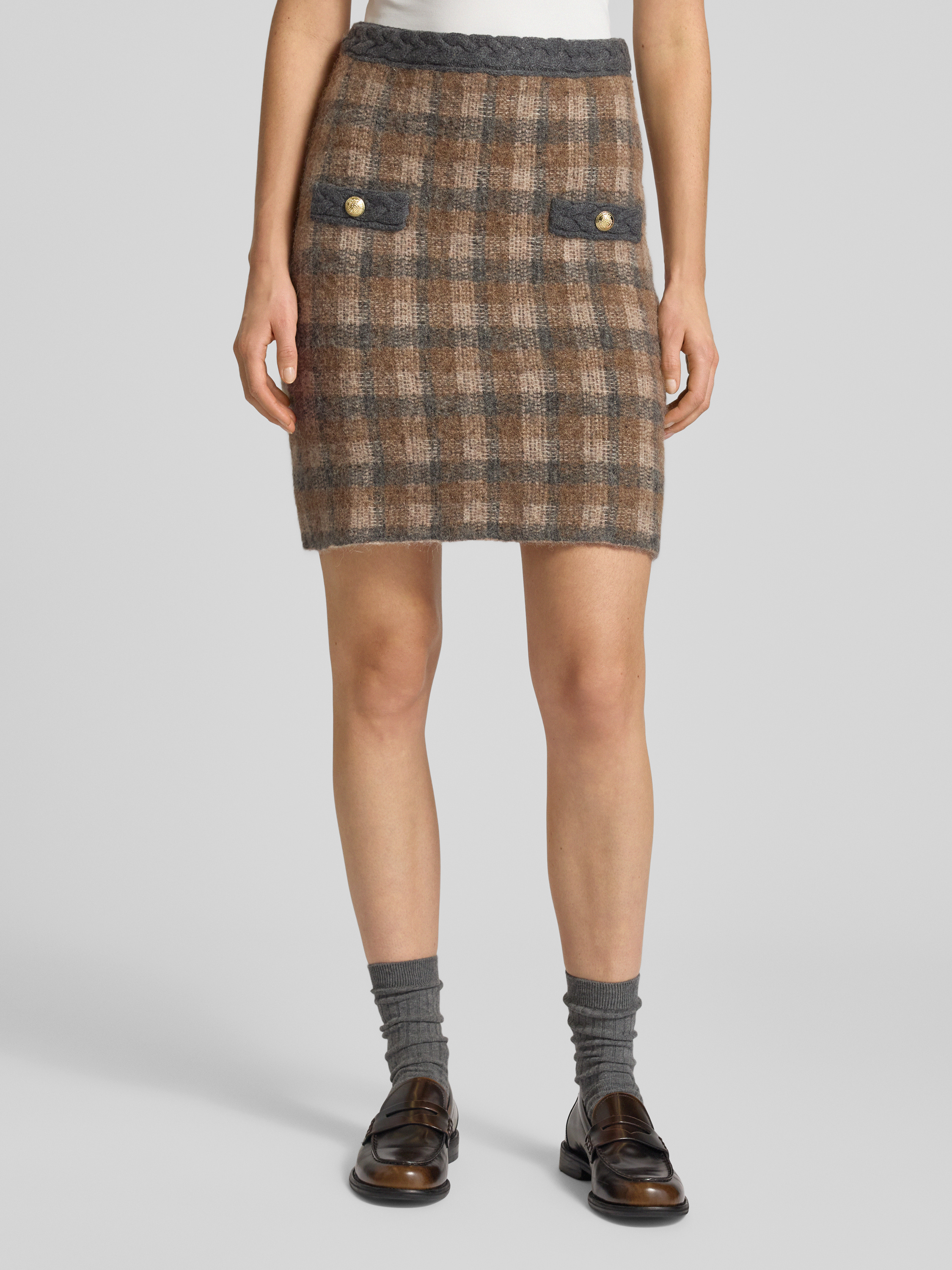 JOOP!Gebreide rok met knielengte in wolmix, model 'Kanda' in lichtgrijs