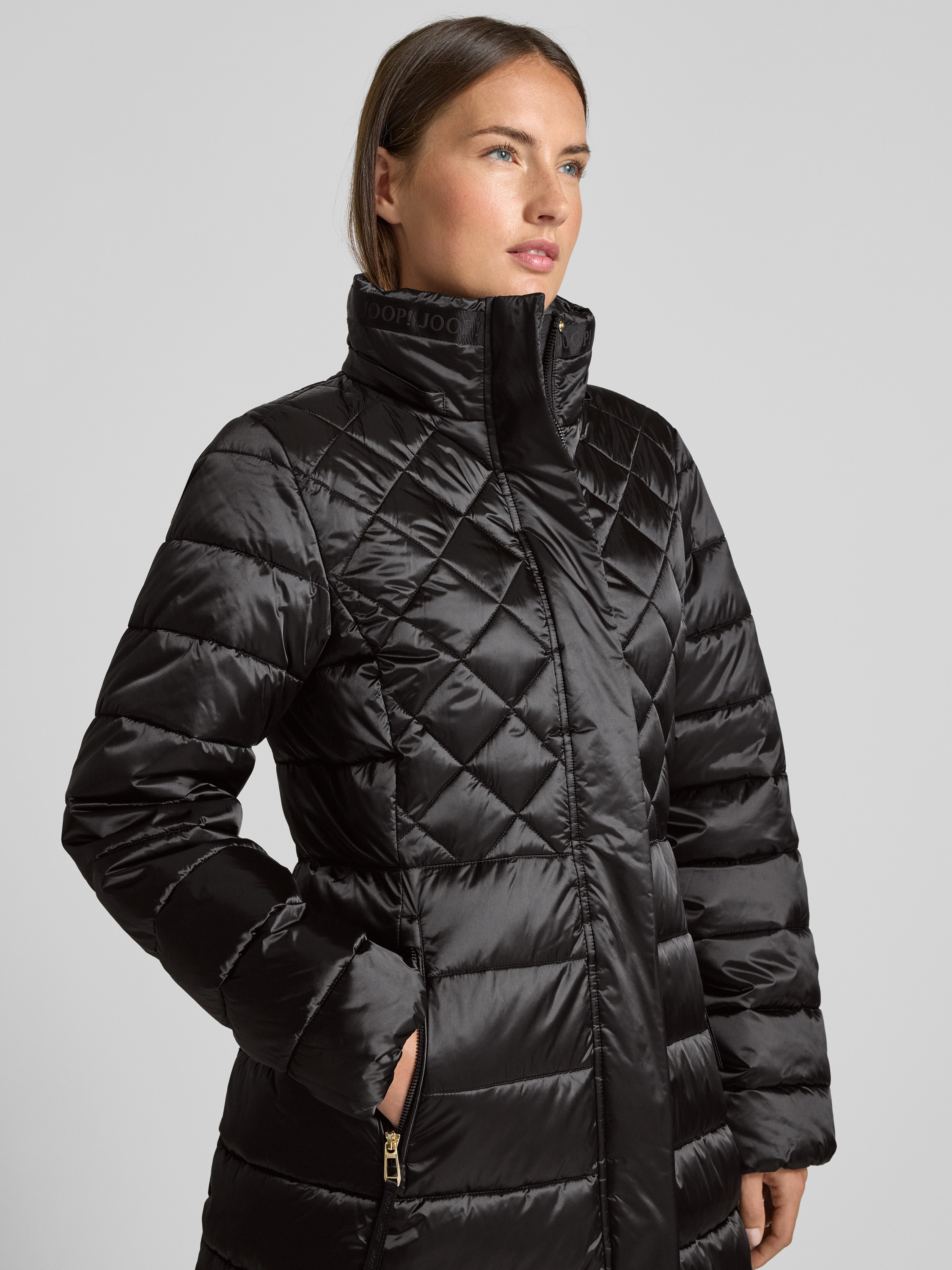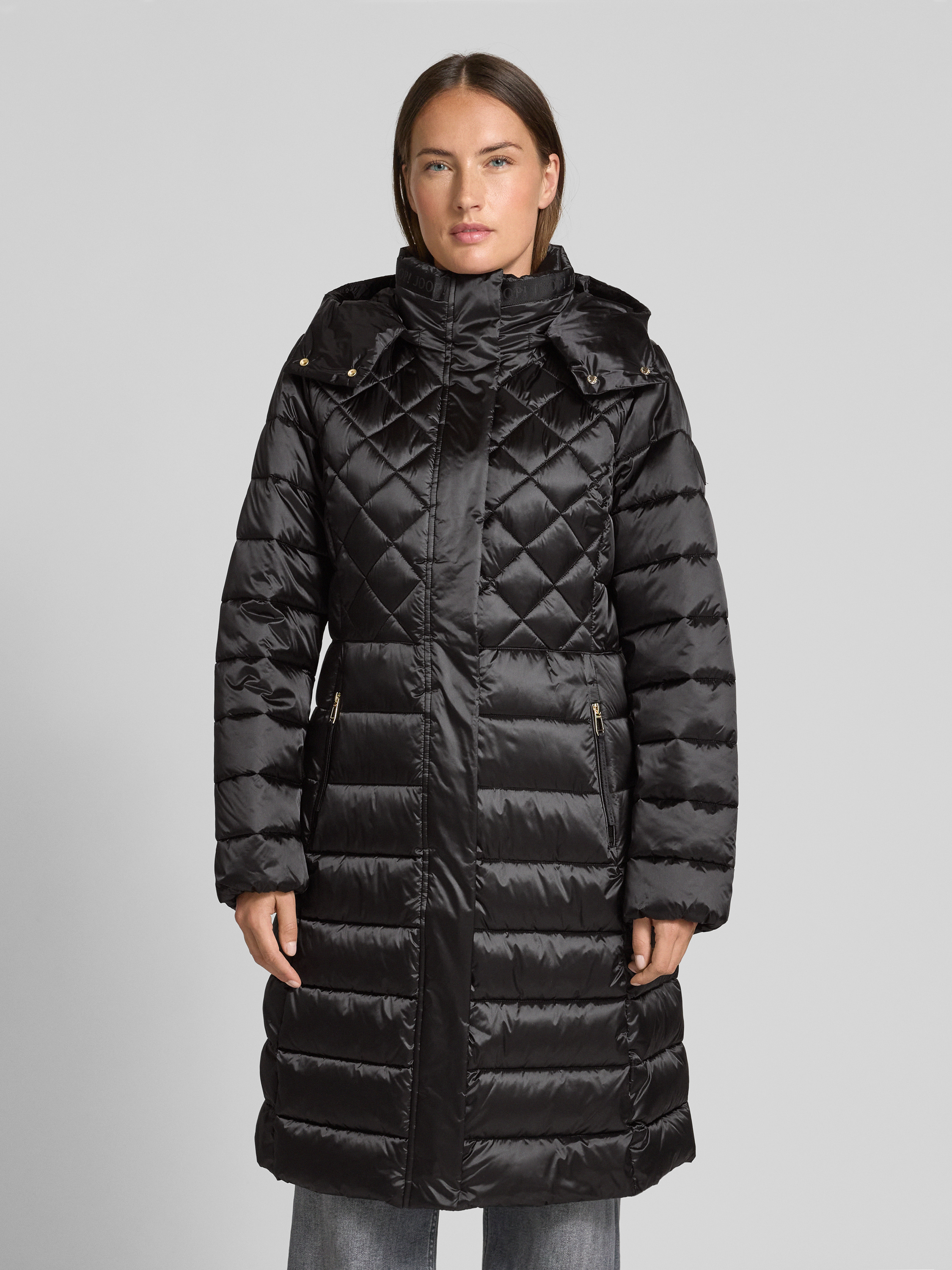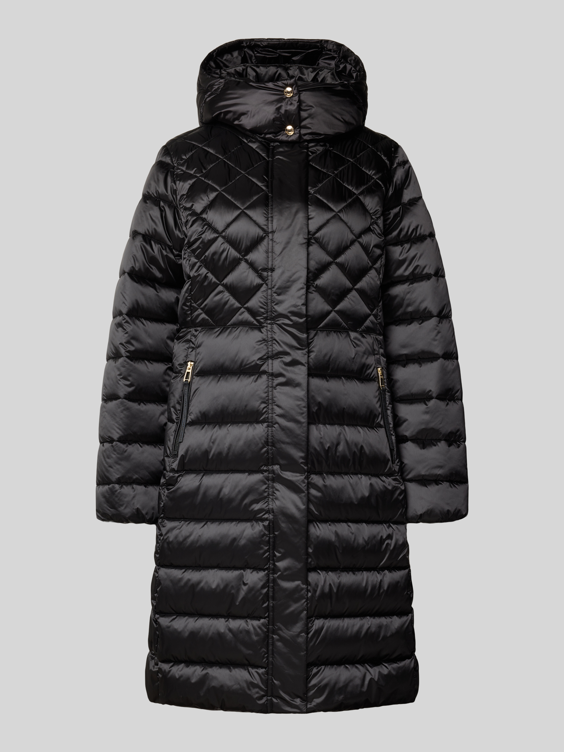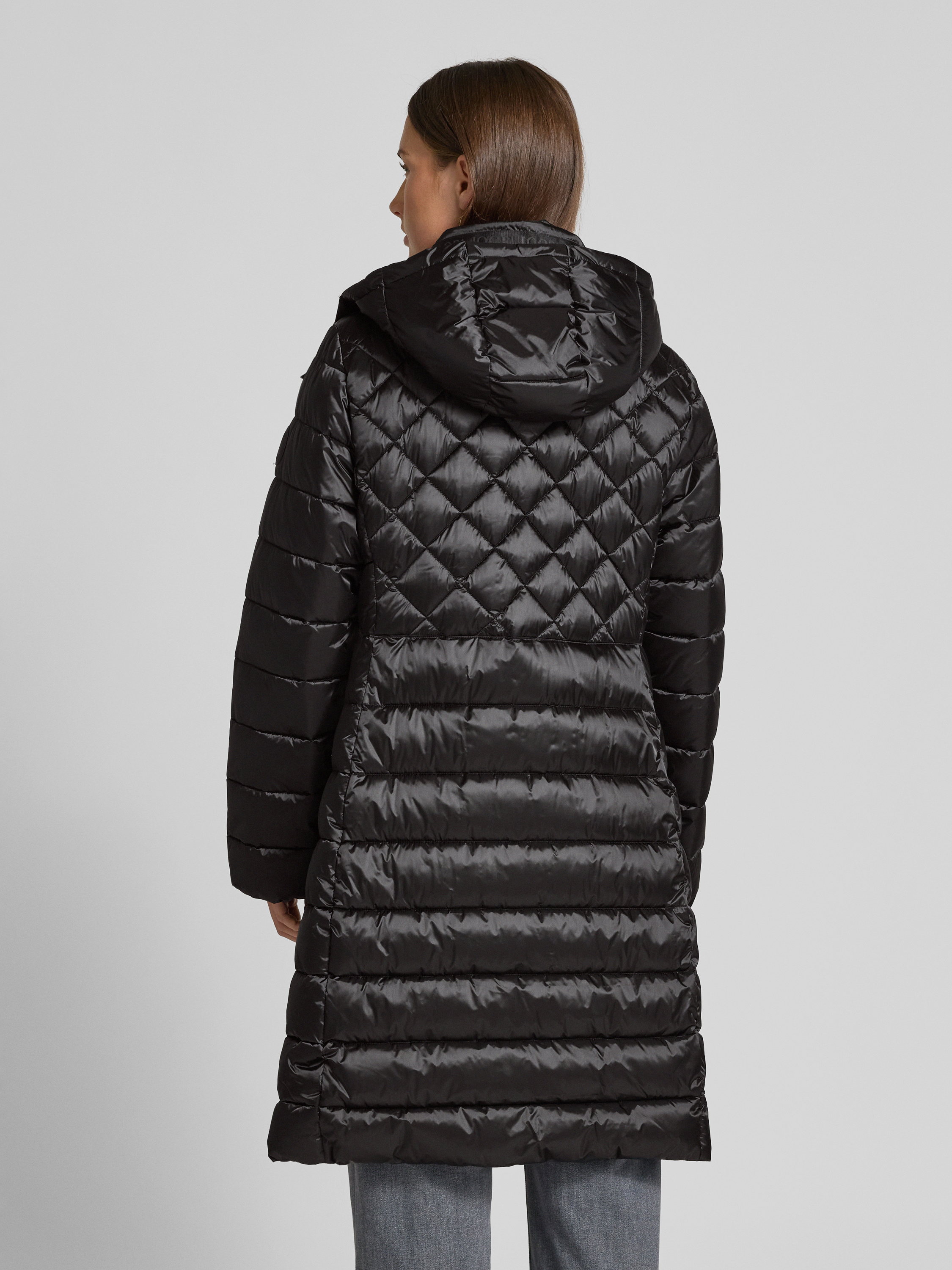 Gewatteerde lange jas met ritszakken, model 'CONSTANZE' in zwart