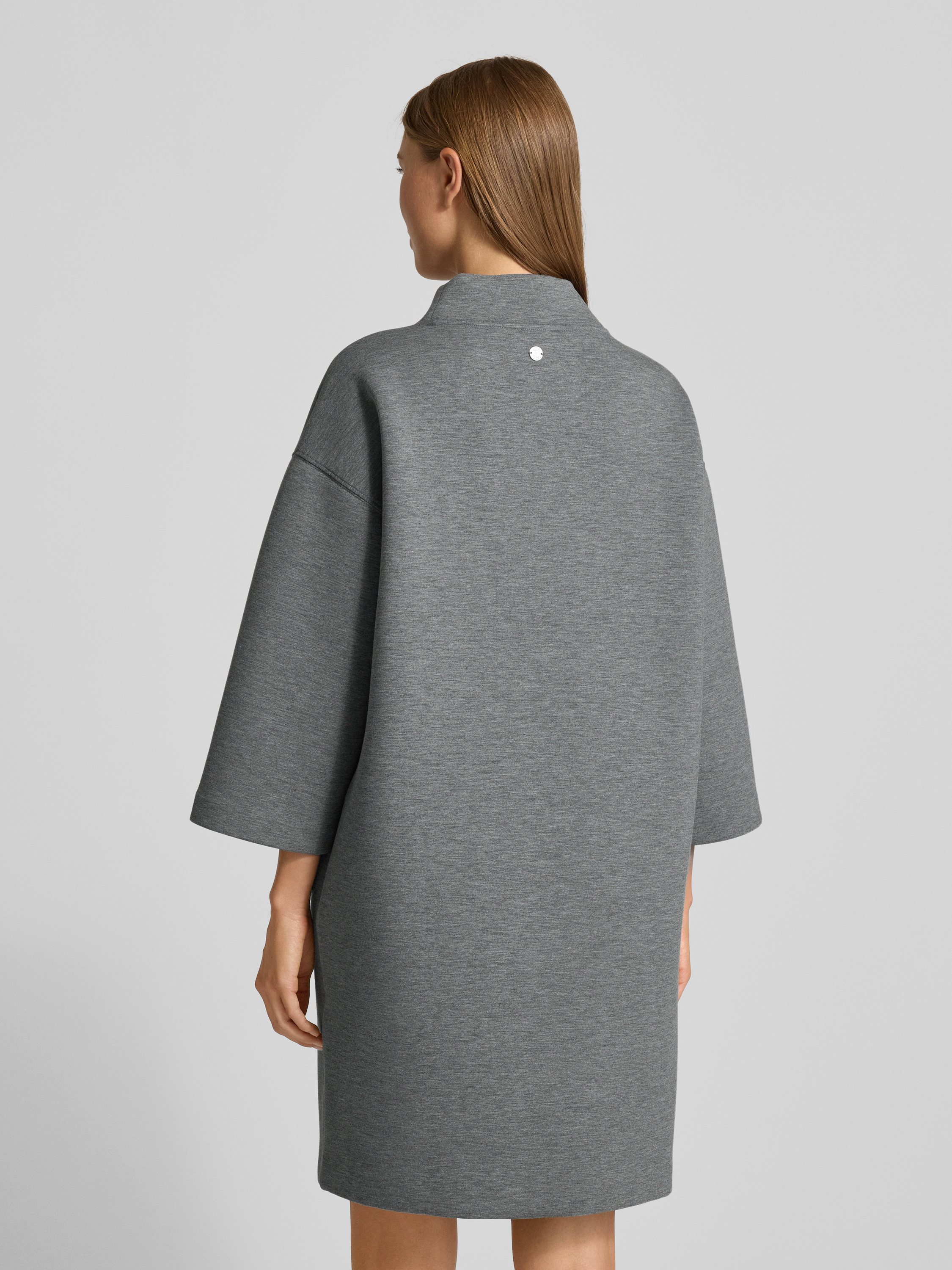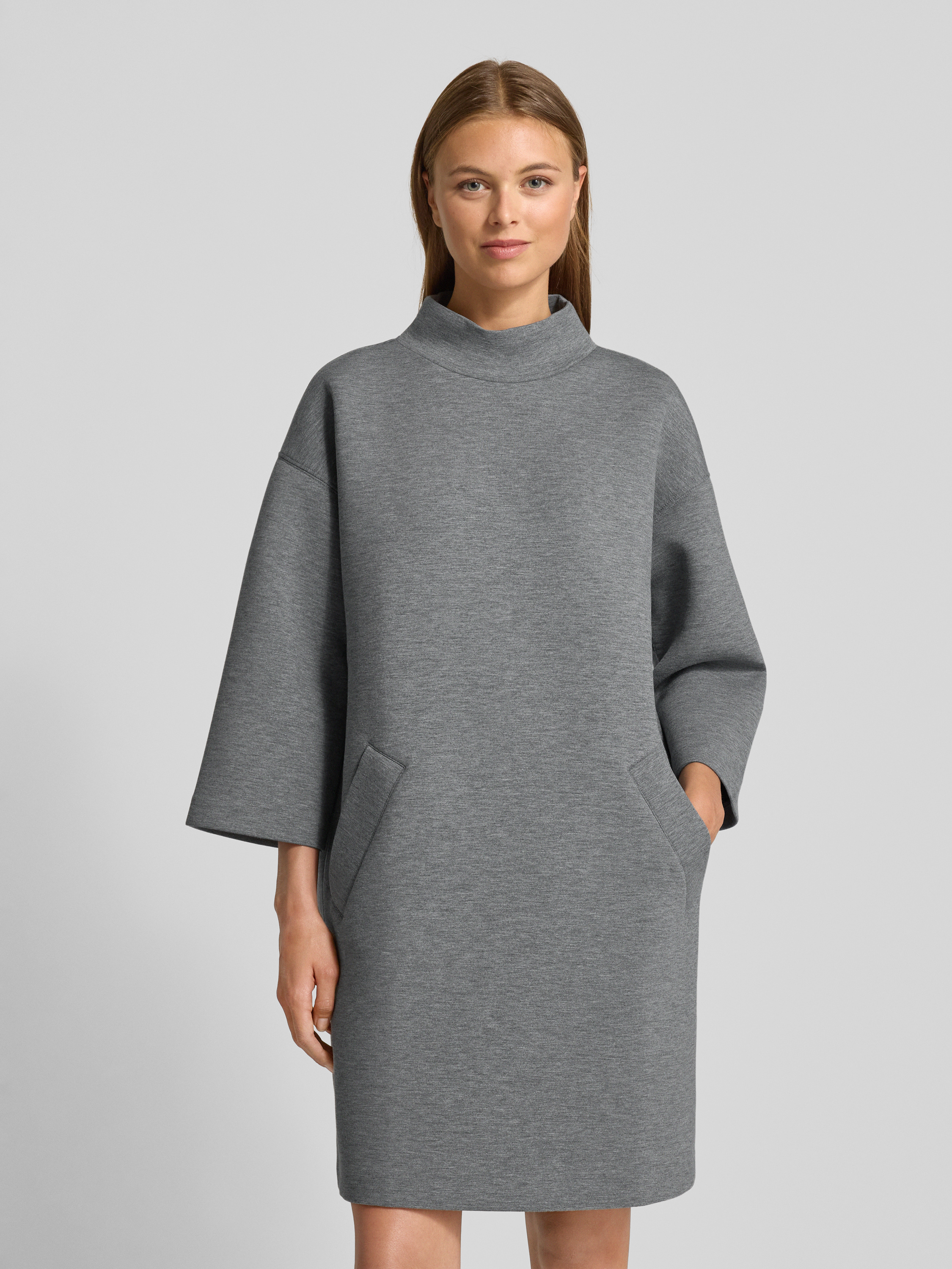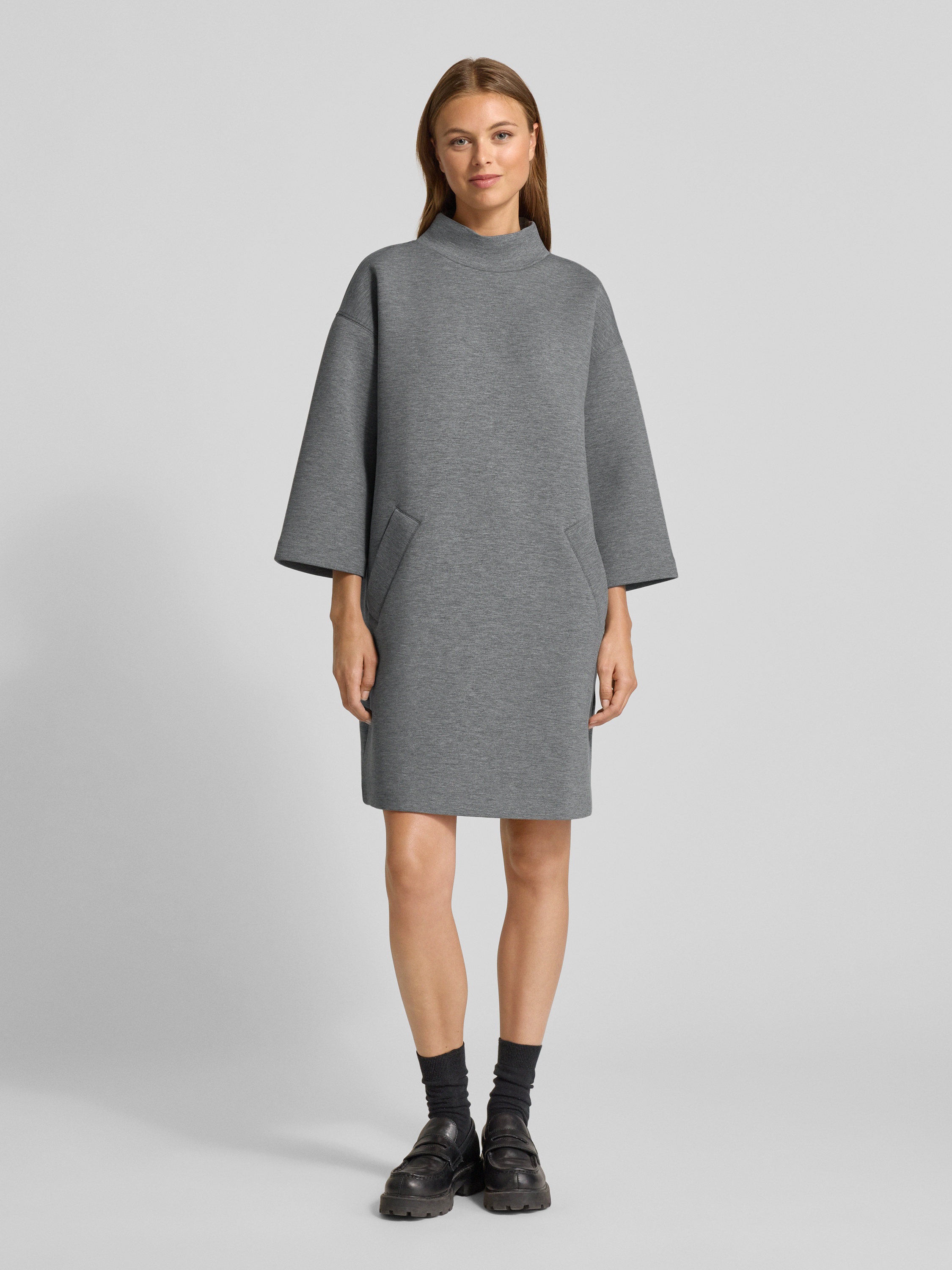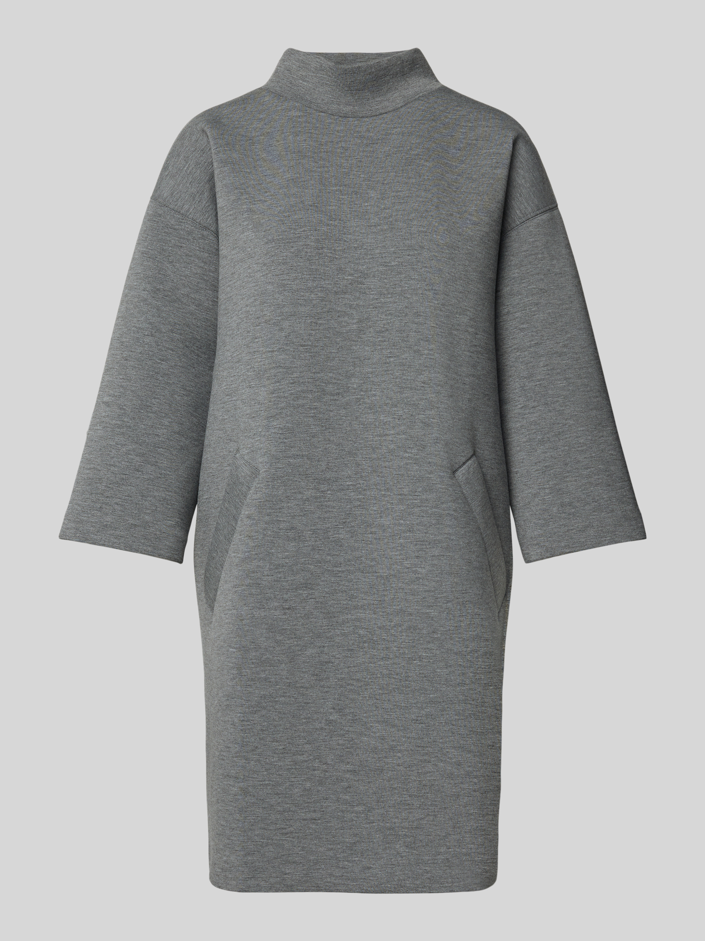 Knielange jurk met opstaande kraag en steekzakken in middengrijs