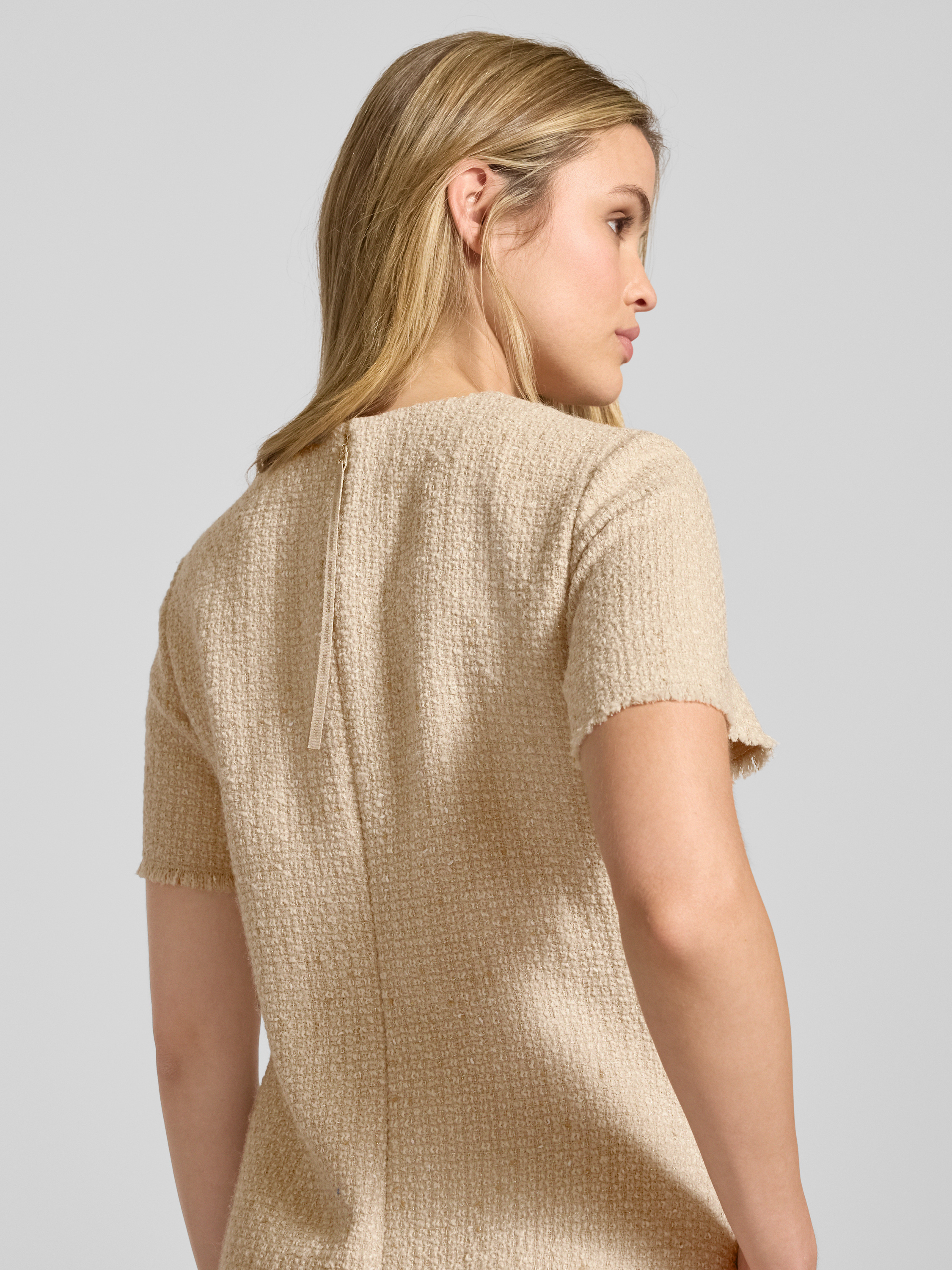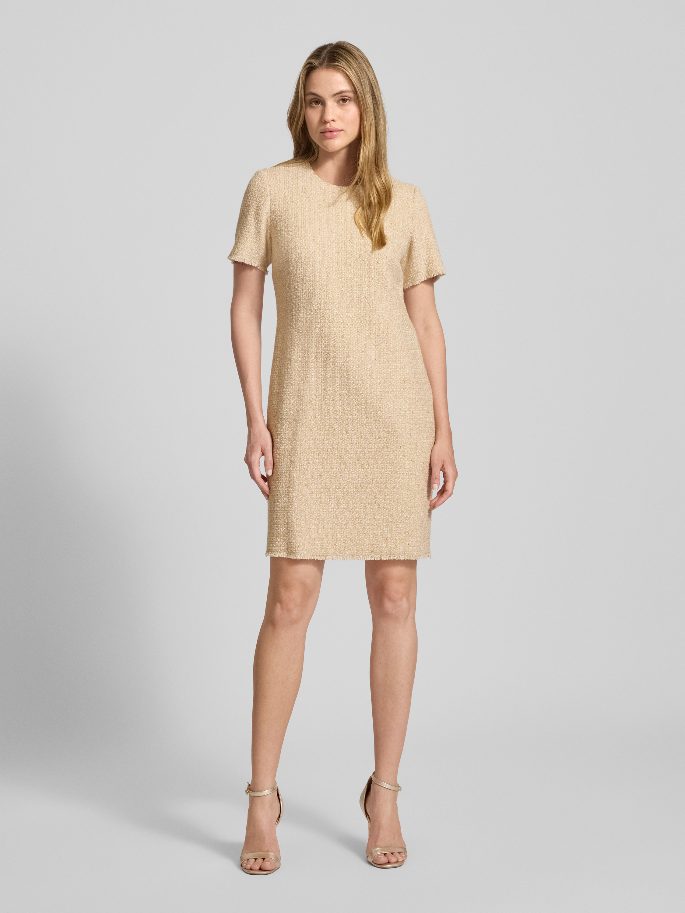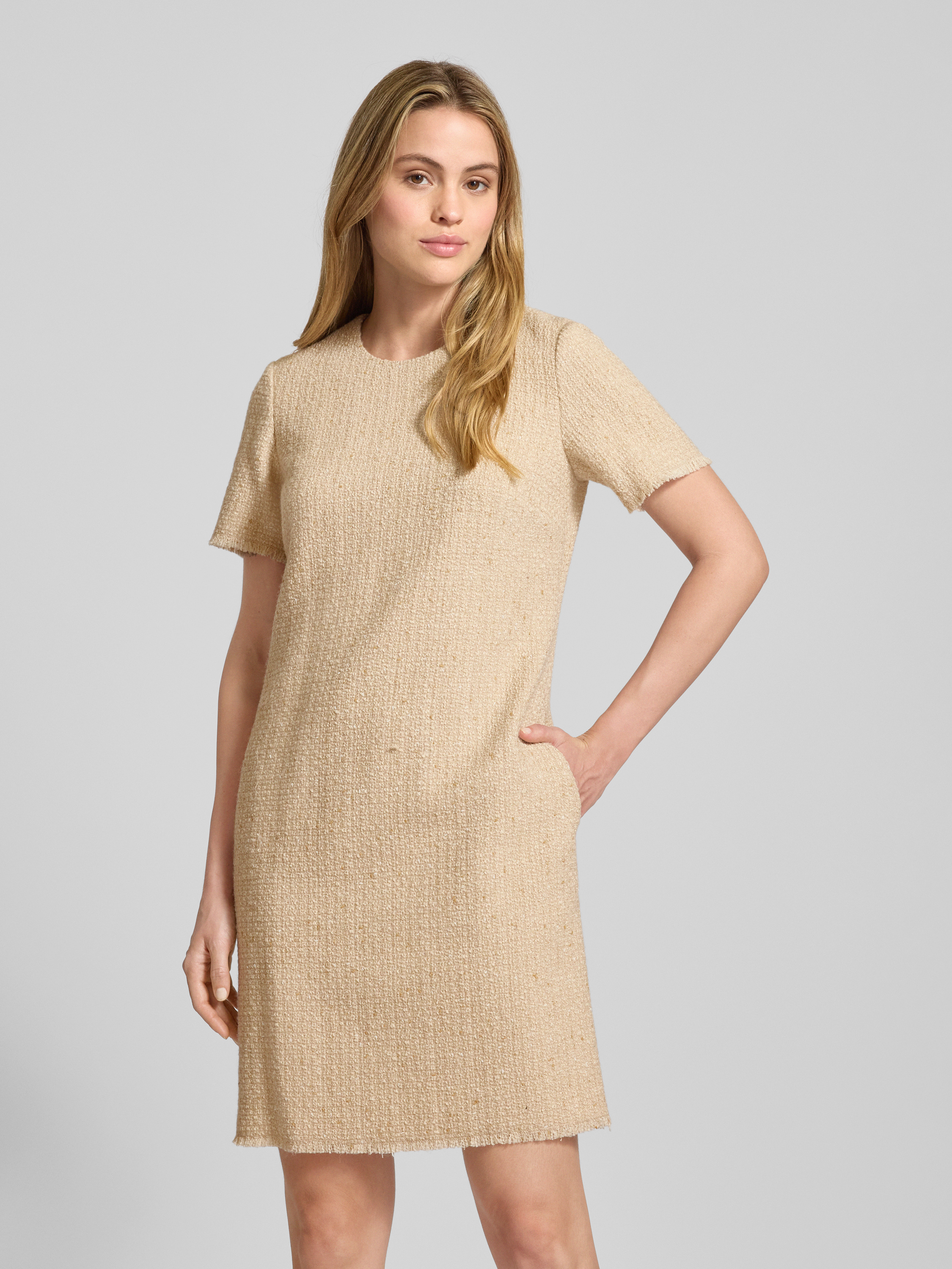 JOOP!Kokerjurk in bouclélook met ronde hals in zand