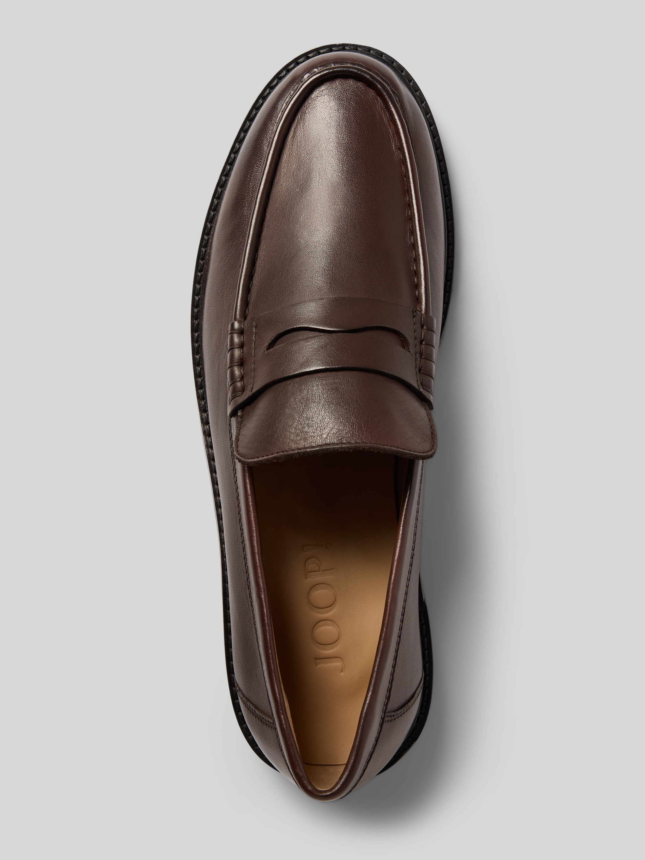 Leren loafers met schaftbrug, model 'pero archy' in donkerbruin