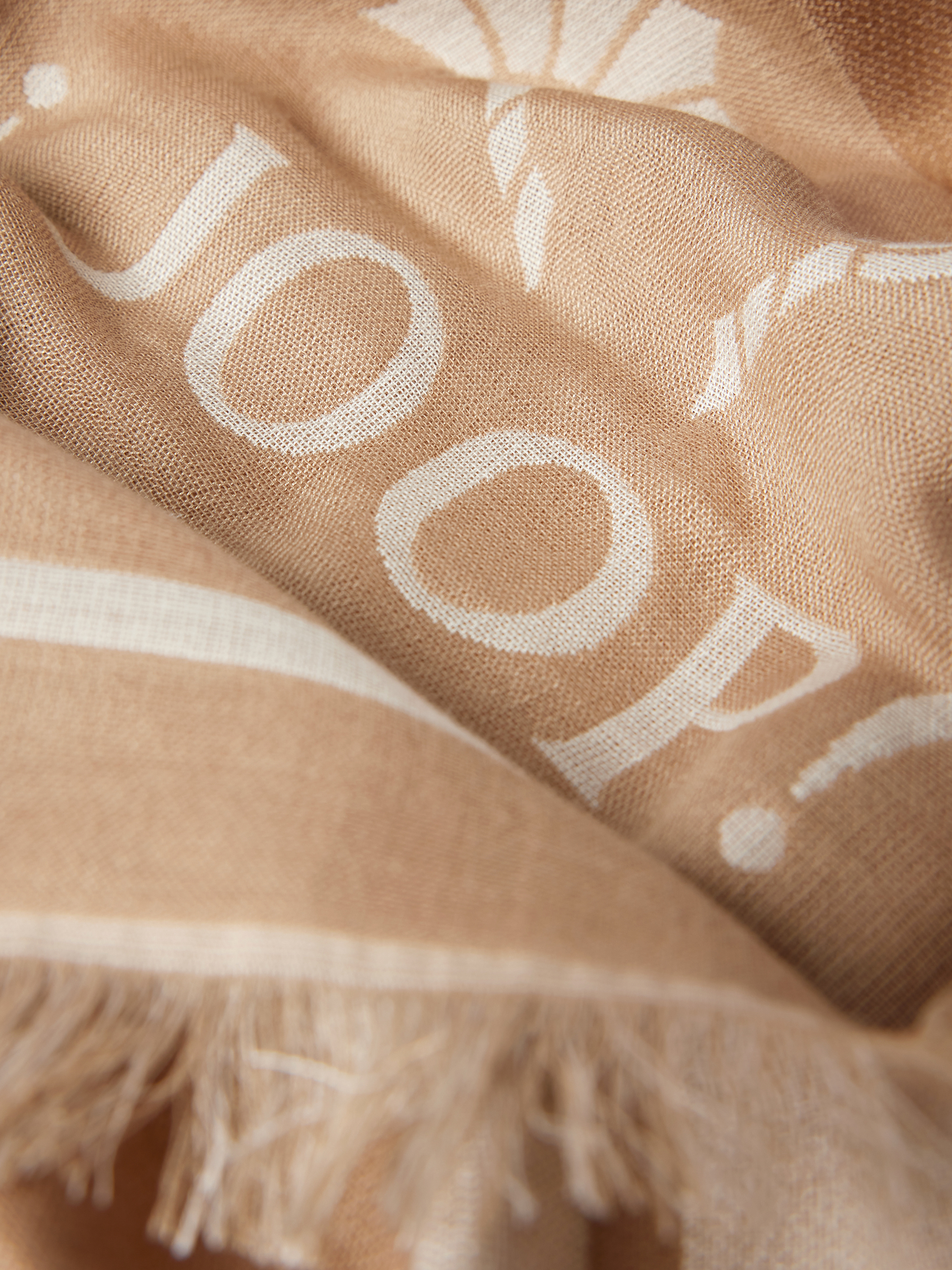 Sjaal met franjes, model 'Alessia' in zand