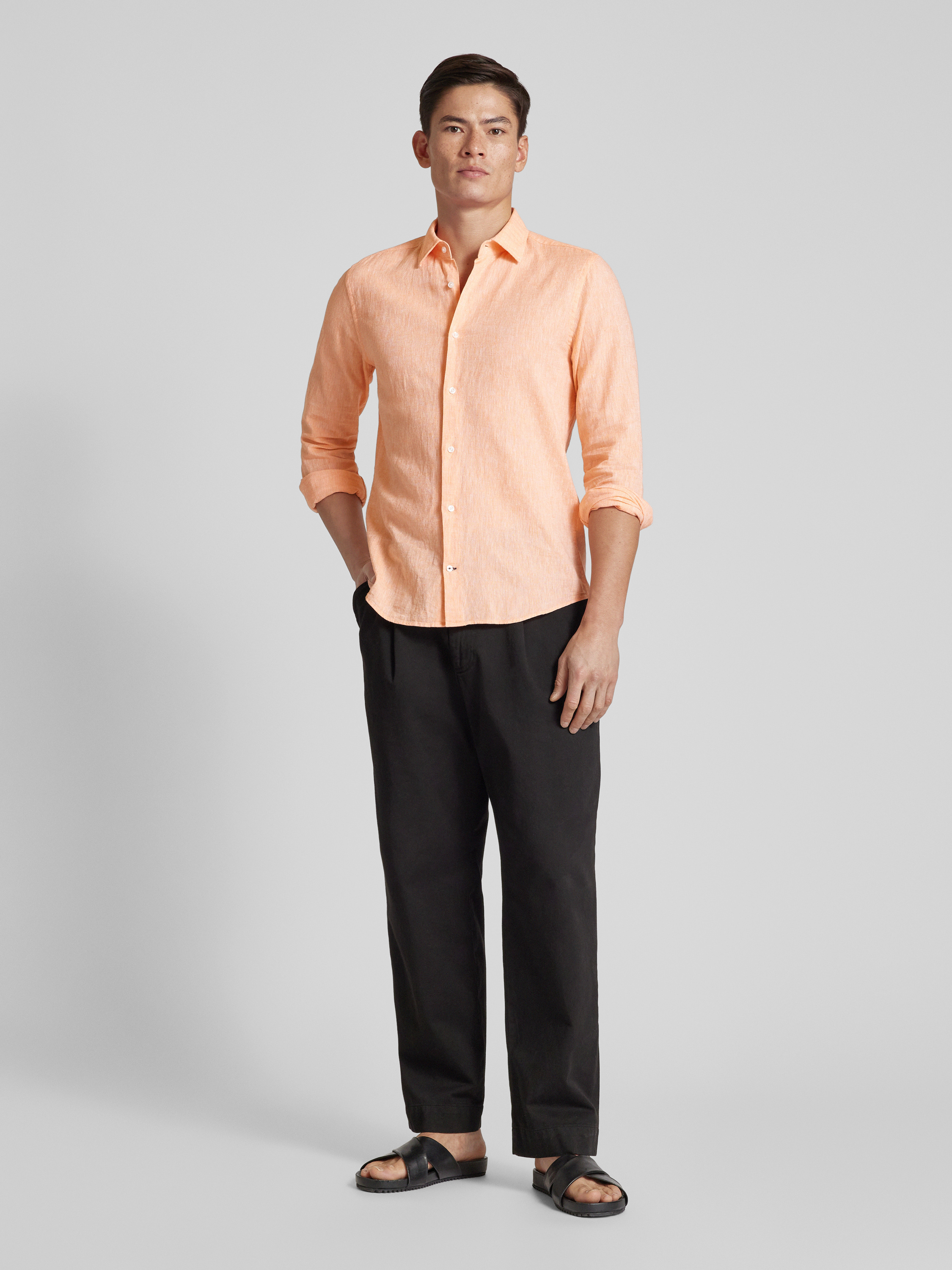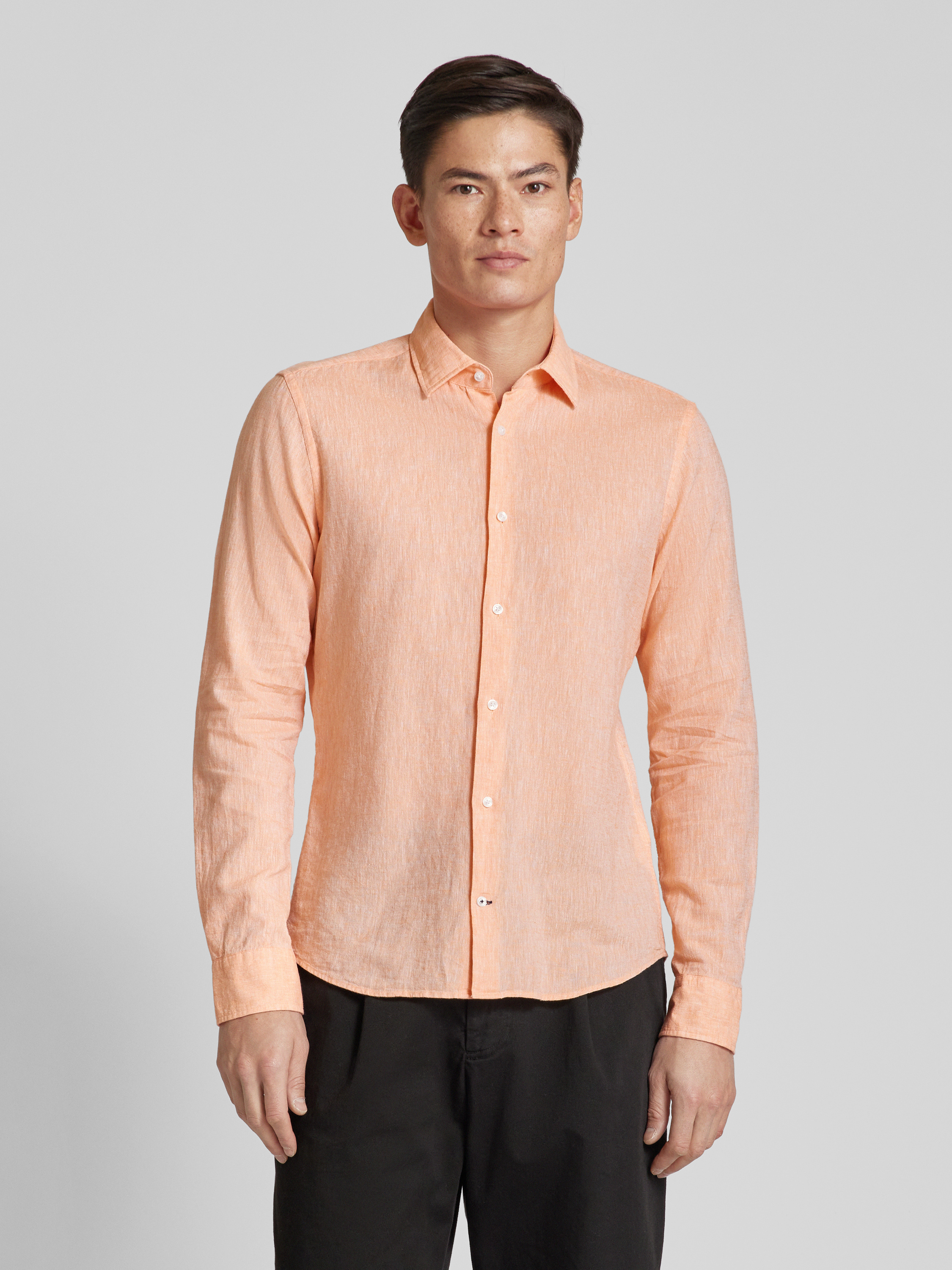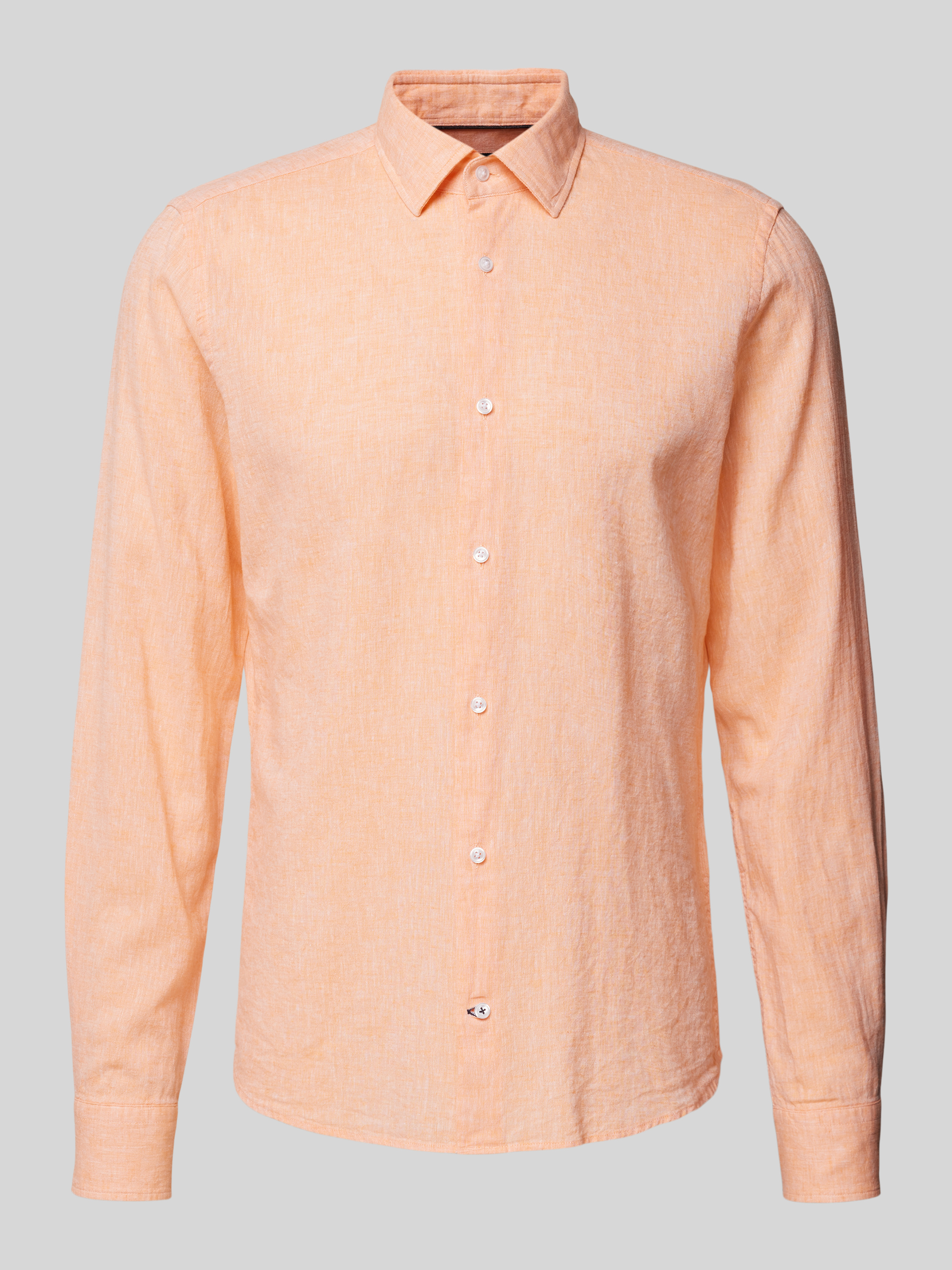 JOOP!Slim fit vrijetijdsoverhemd van een mix van linnen en katoen in abrikoos