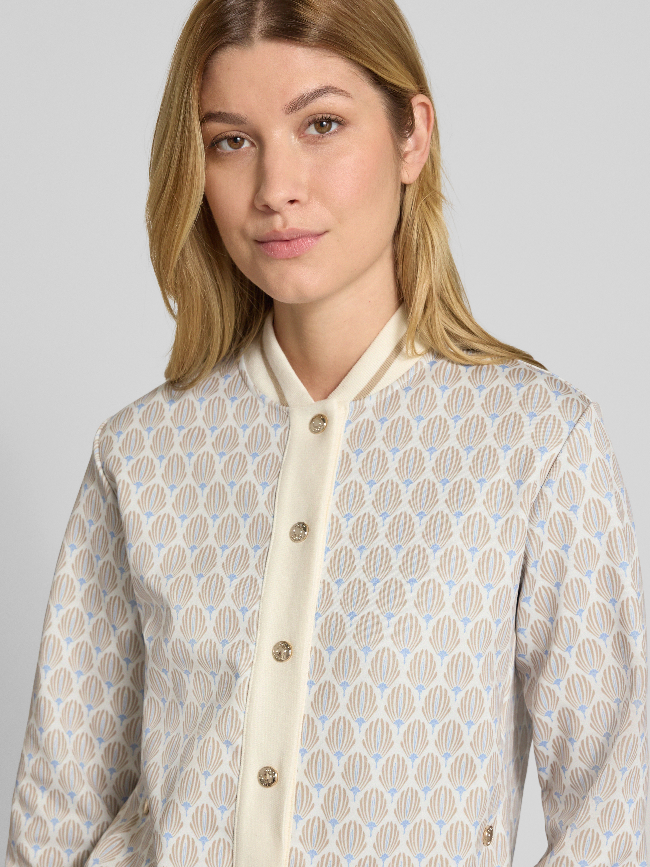 Sweatjack met opstaande kraag en knoopsluiting in offwhite