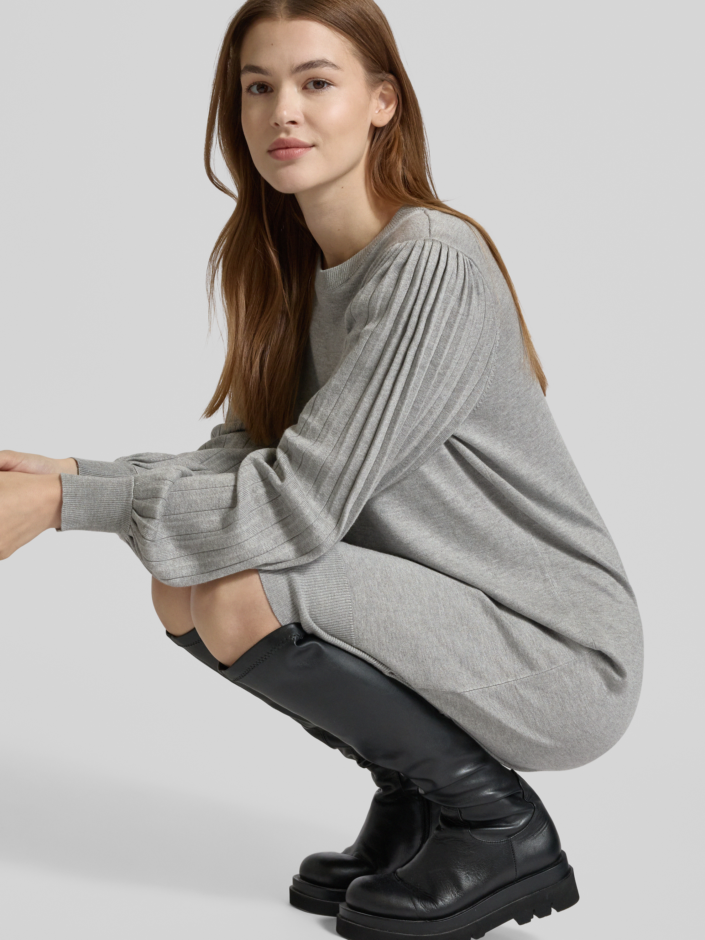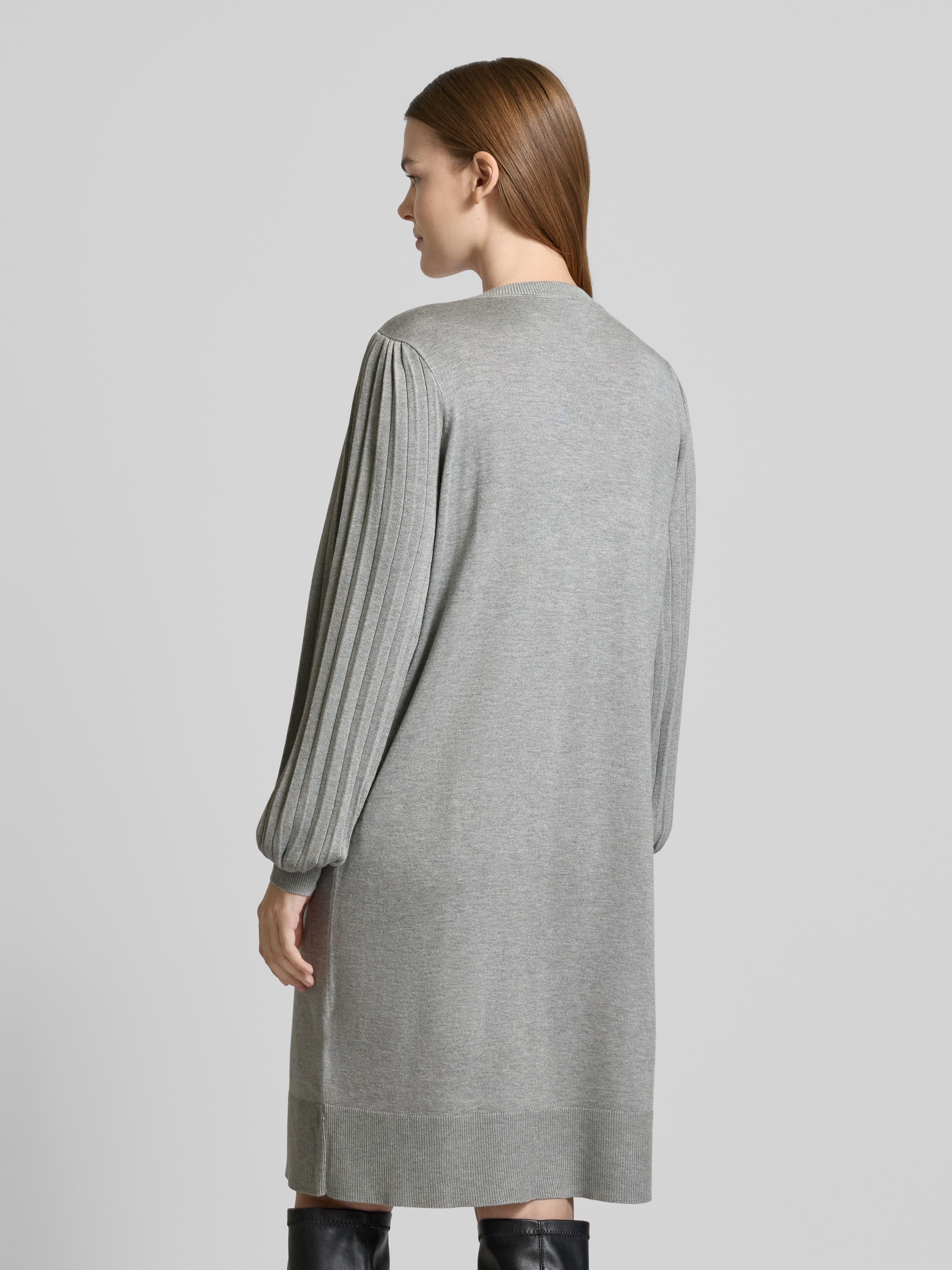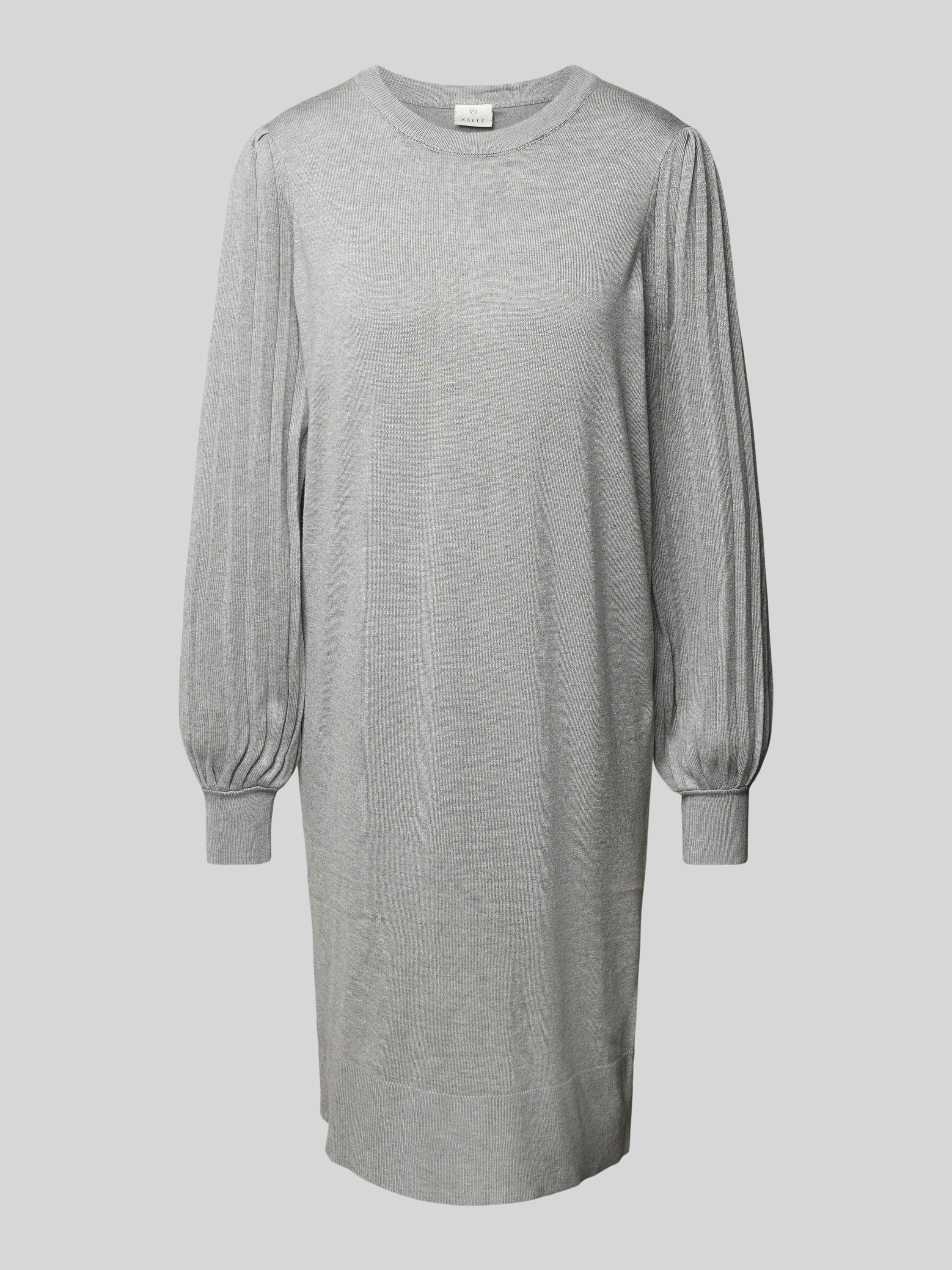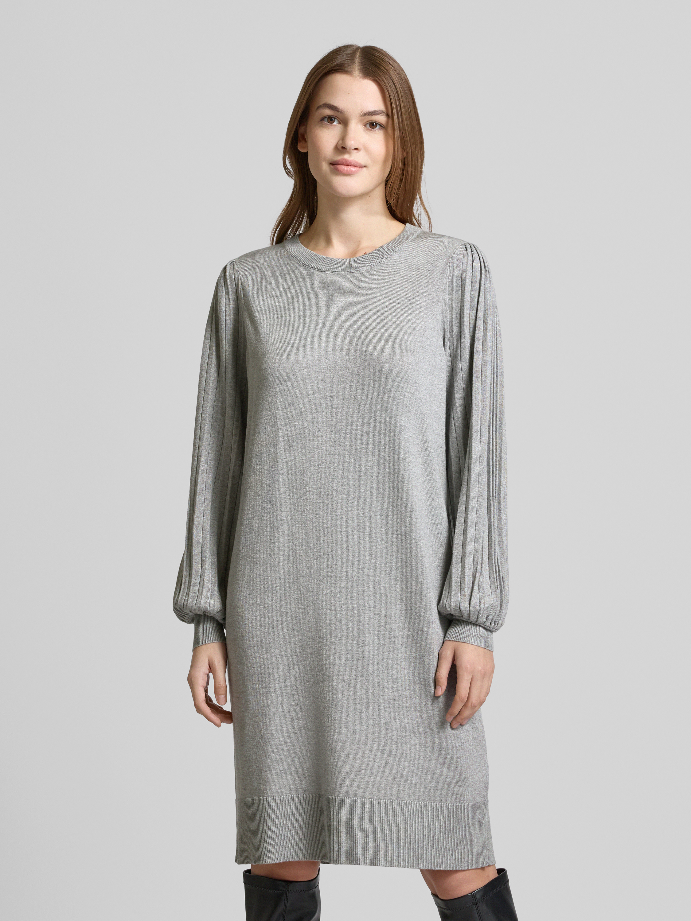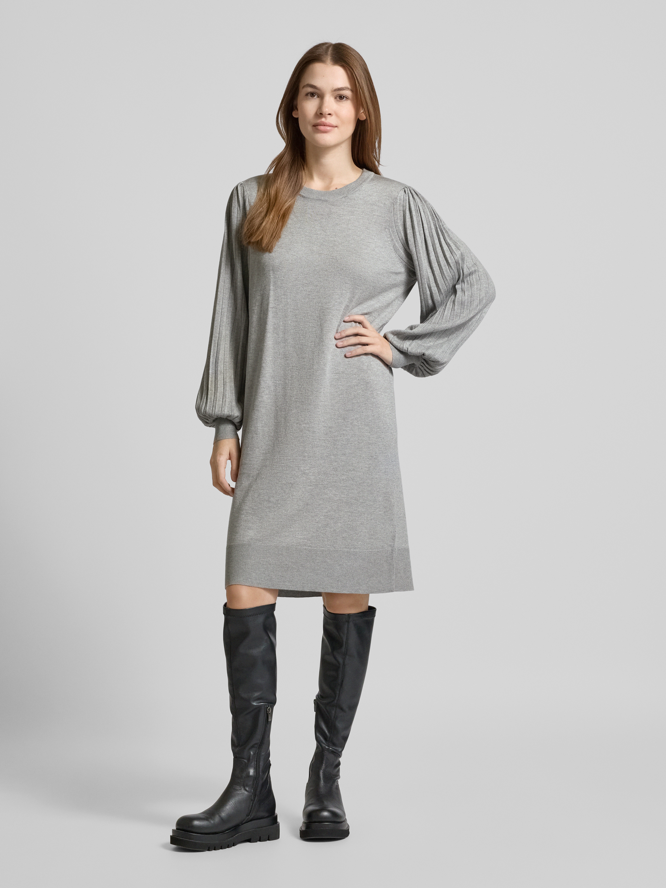 Knielange jurk met pofmouwen, model 'Alone' in lichtgrijs
