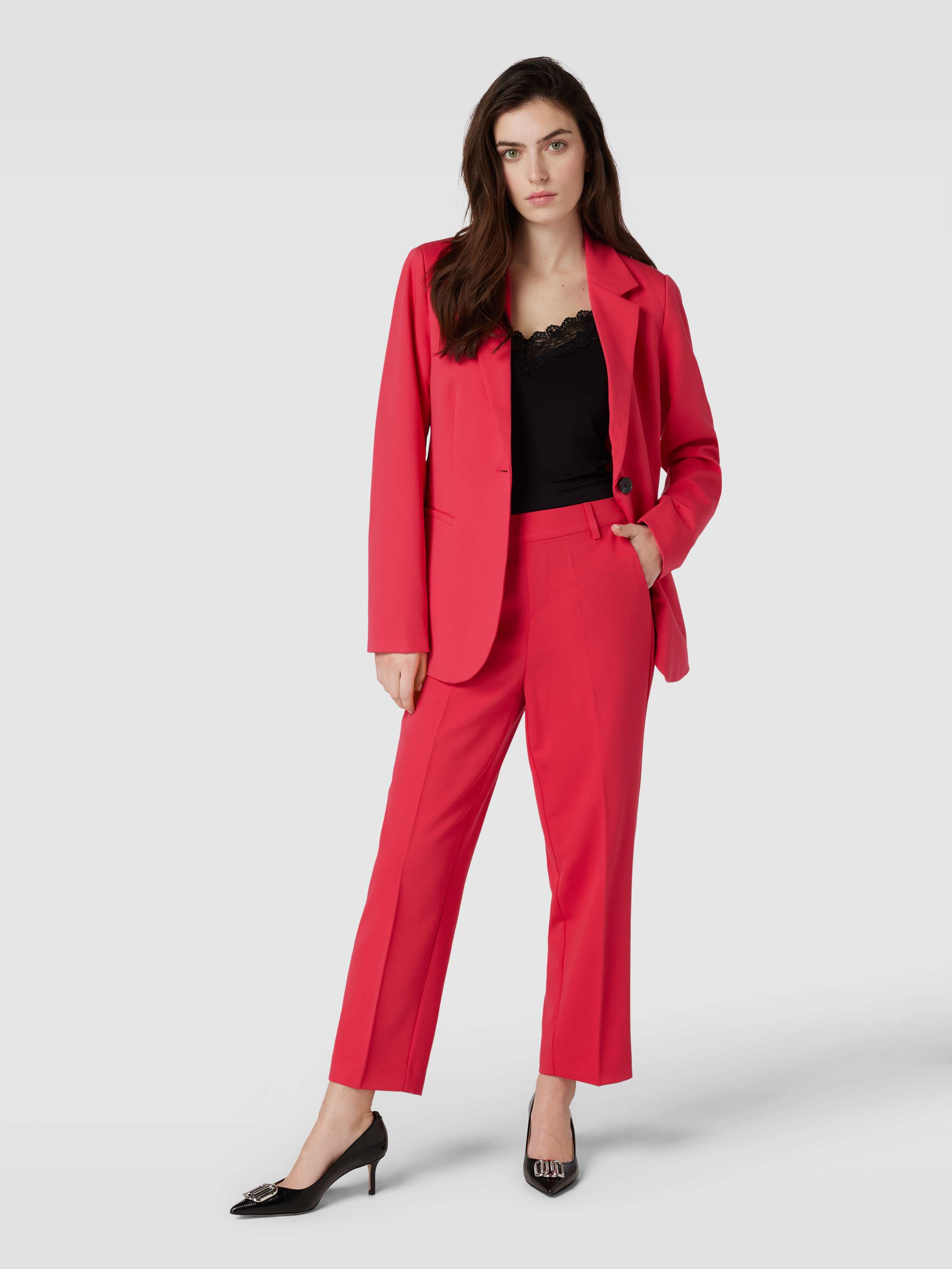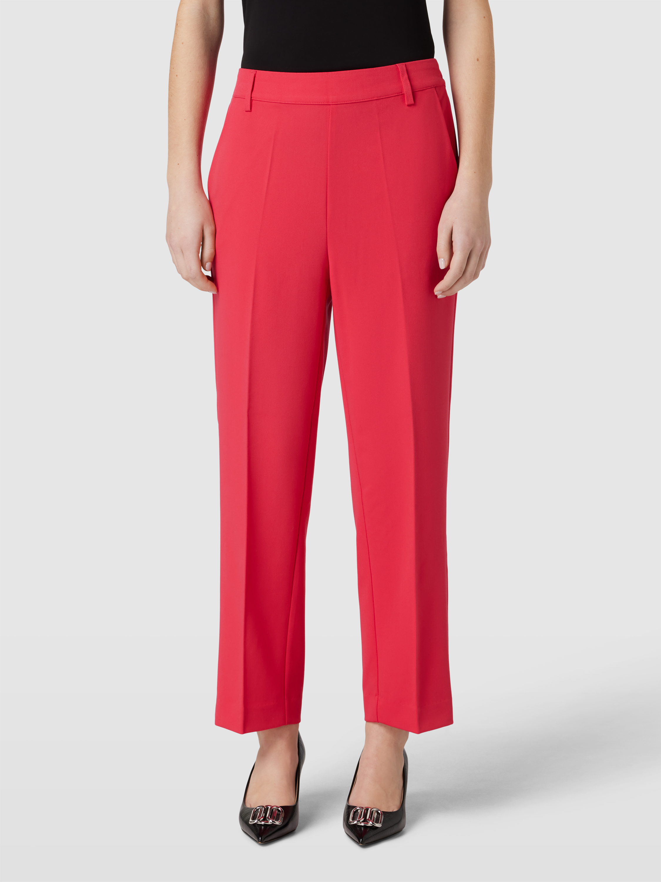 Regular fit broek met persplooien, model 'SAKURA' in kersenrood