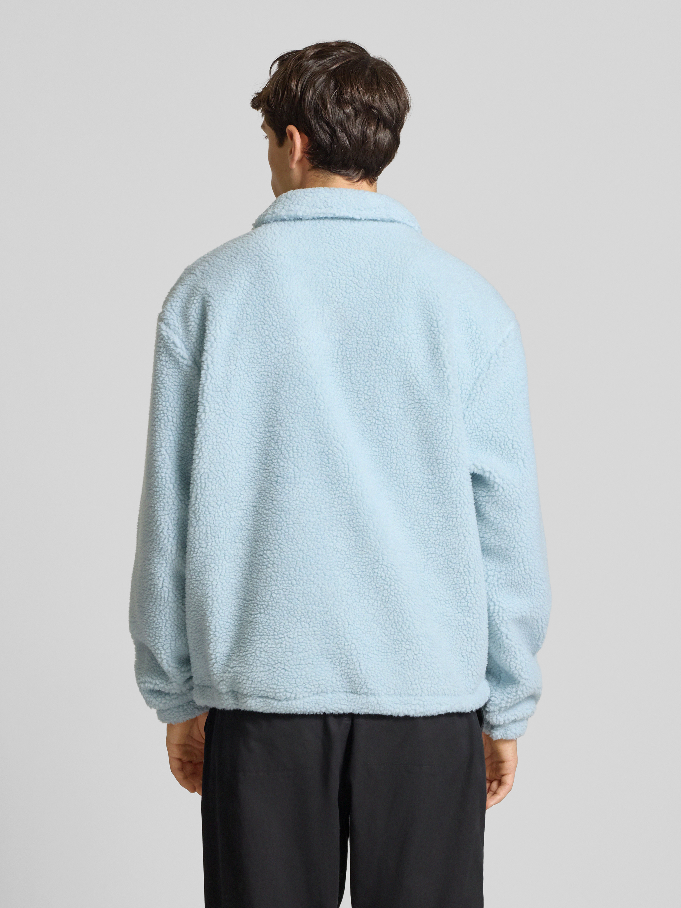 Fleecepullover met platte kraag en knoopsluiting in lichtblauw