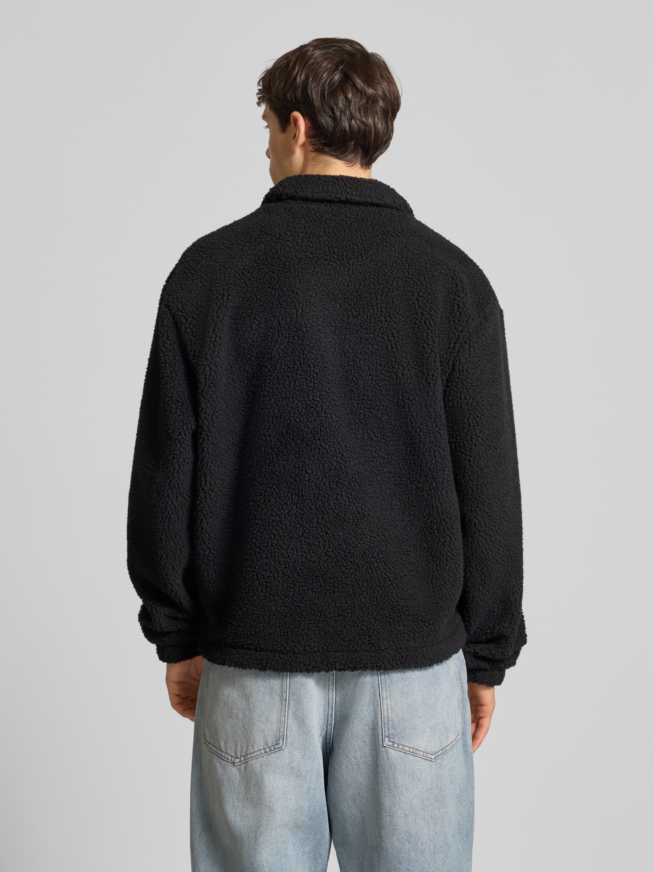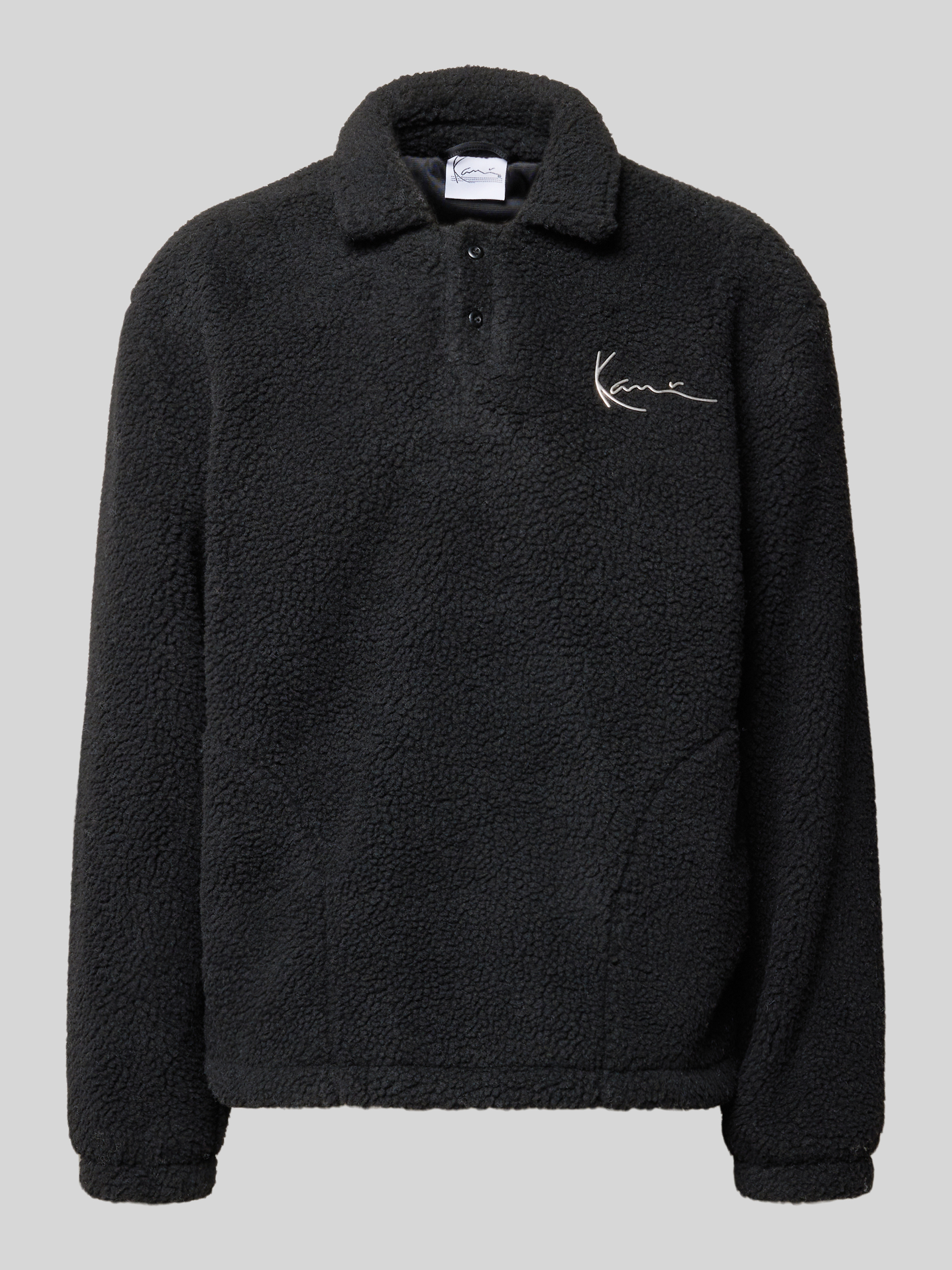 Fleecepullover met platte kraag en knoopsluiting in zwart