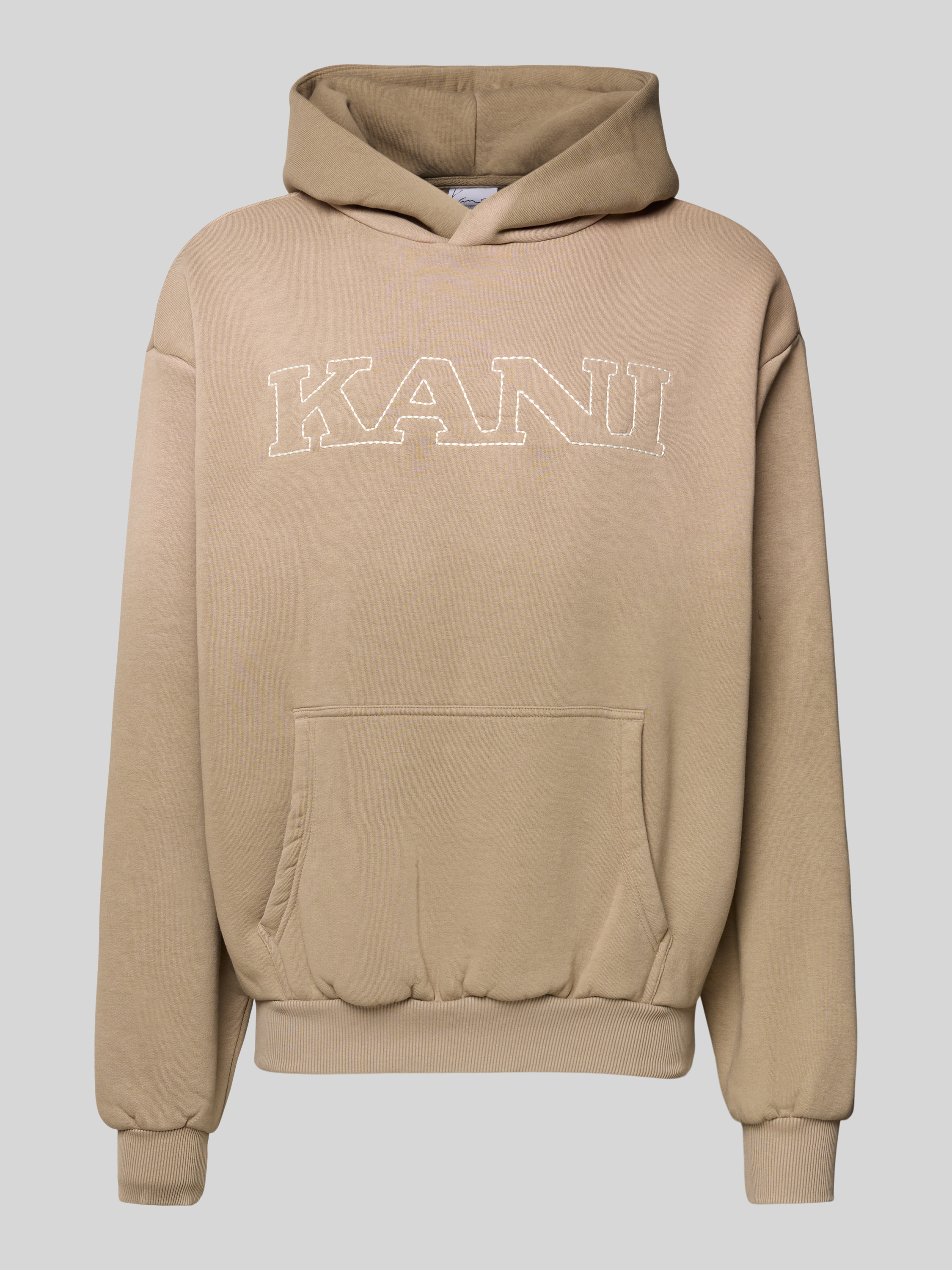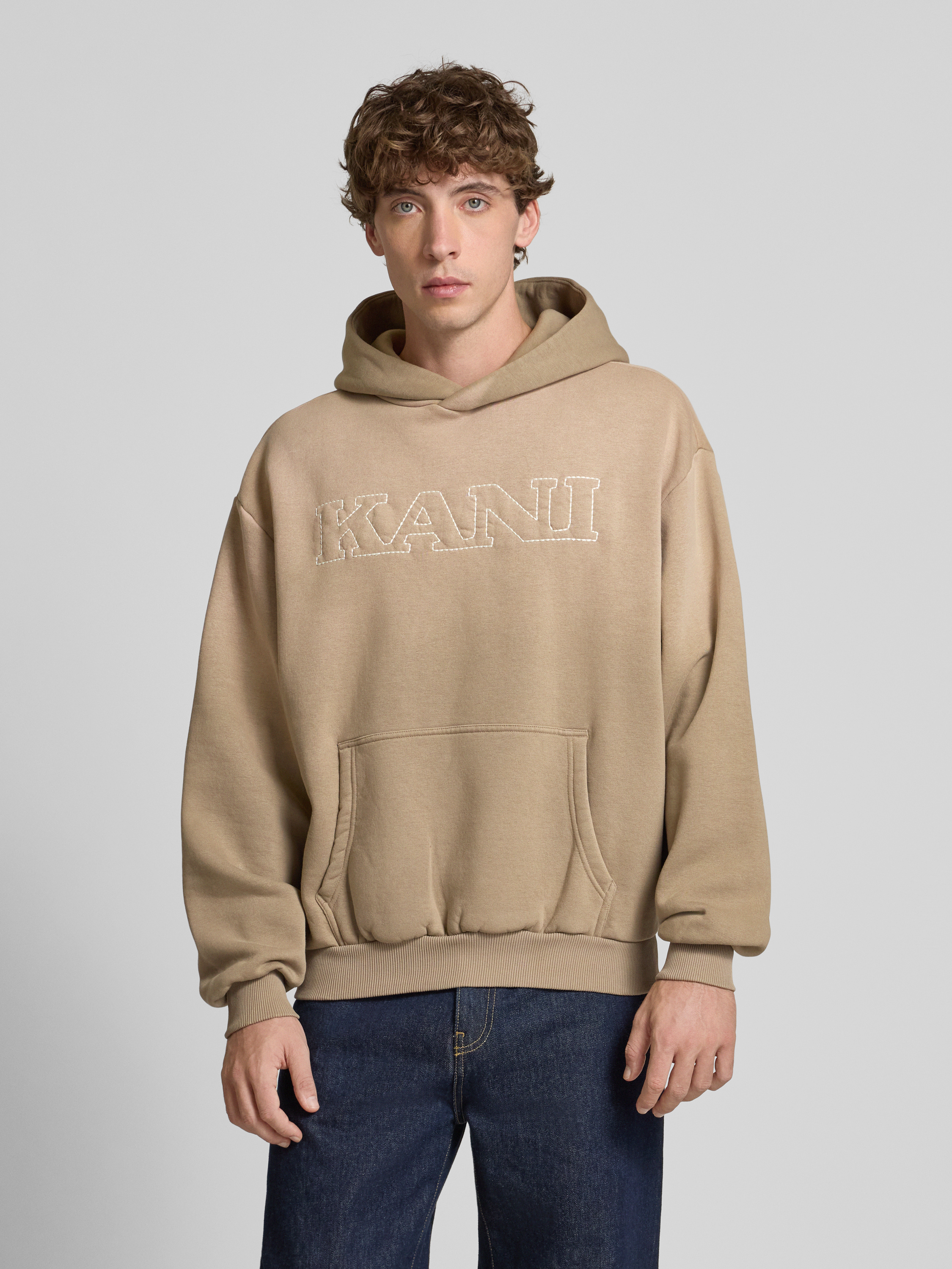 Regular fit hoodie met logostitching, model 'Retro' in middenbruin
