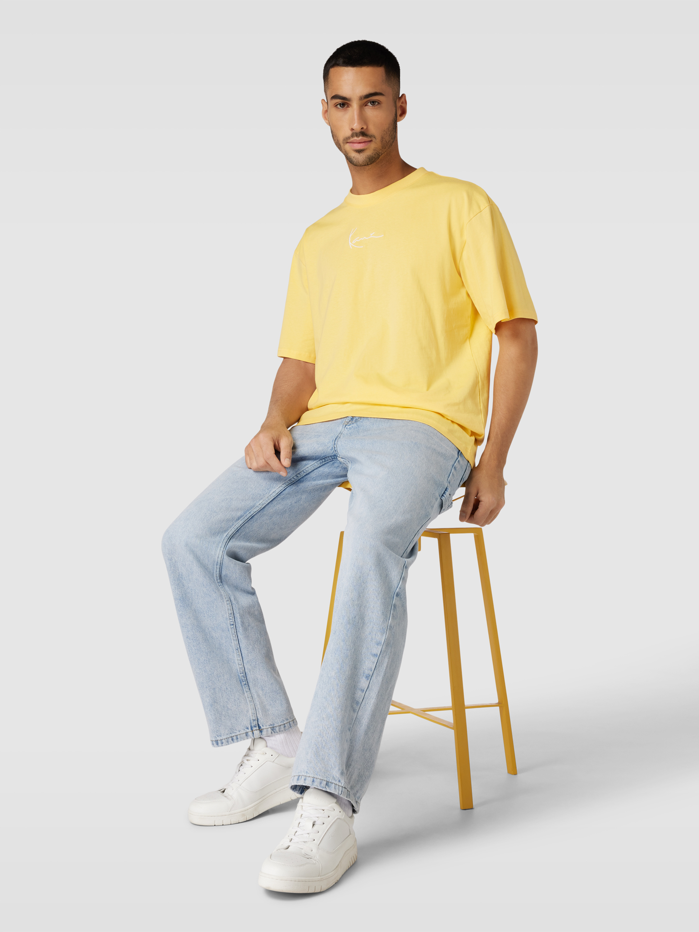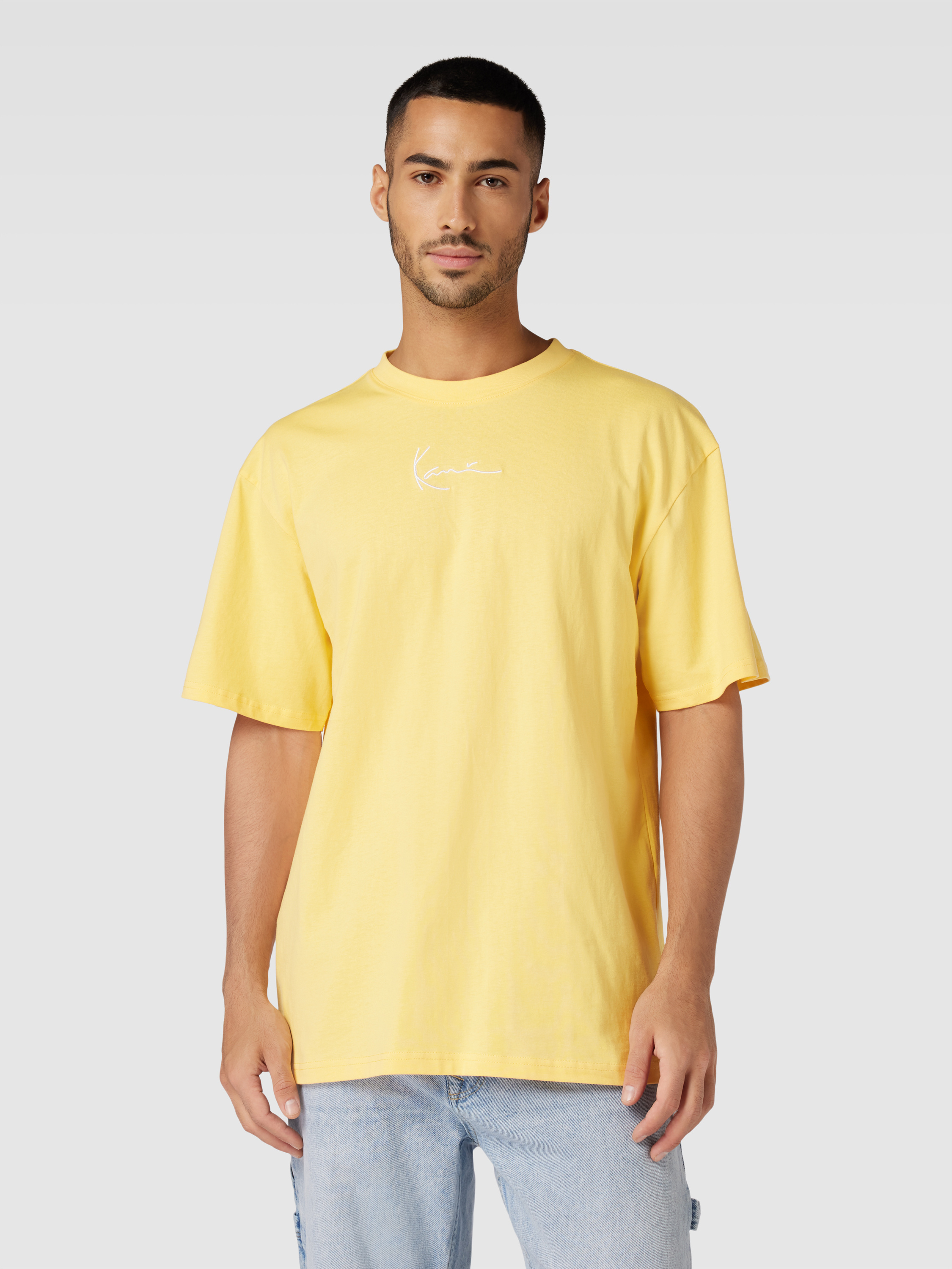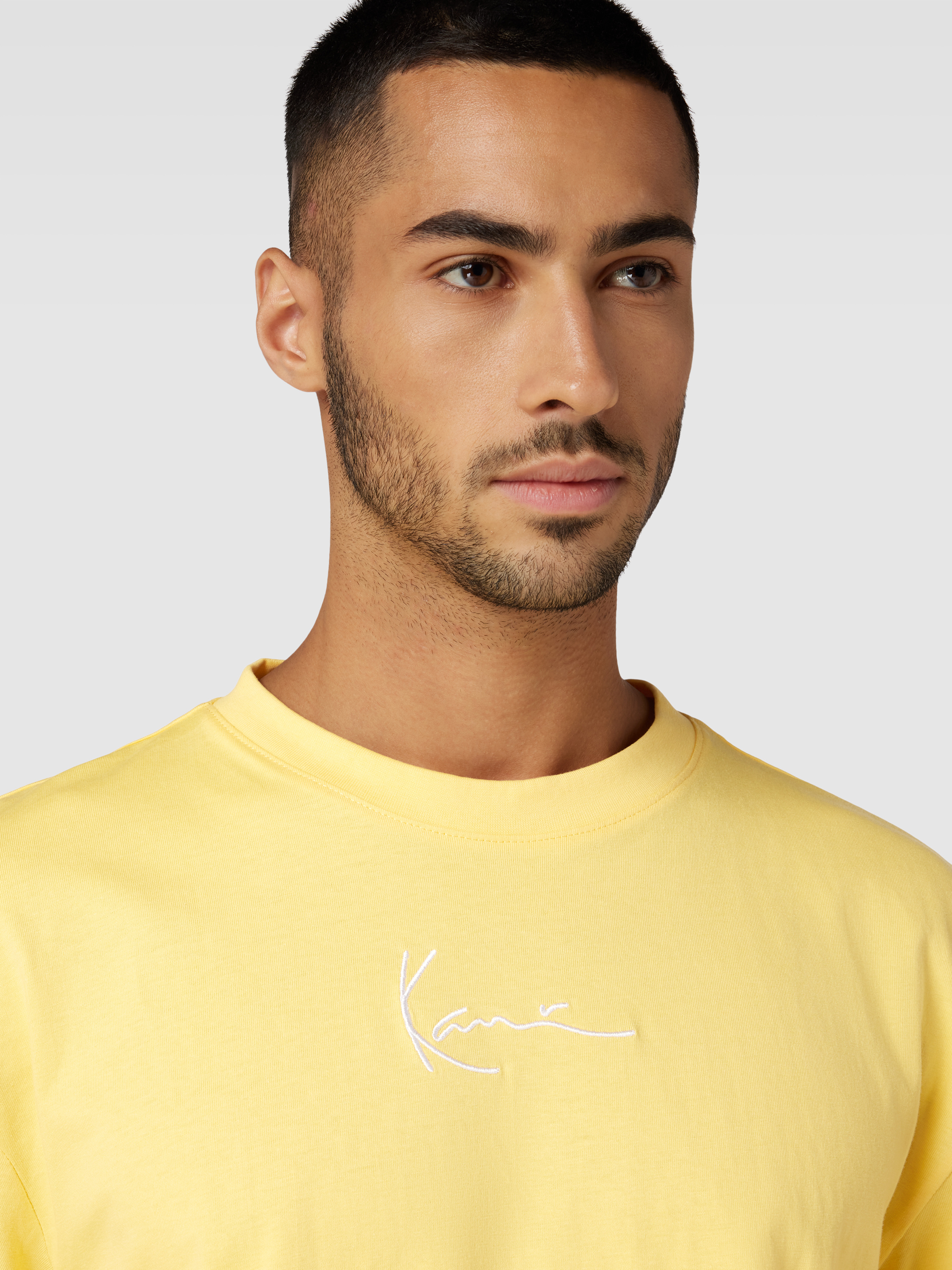 T-shirt met labelstitching, model 'Small Signature' in geel