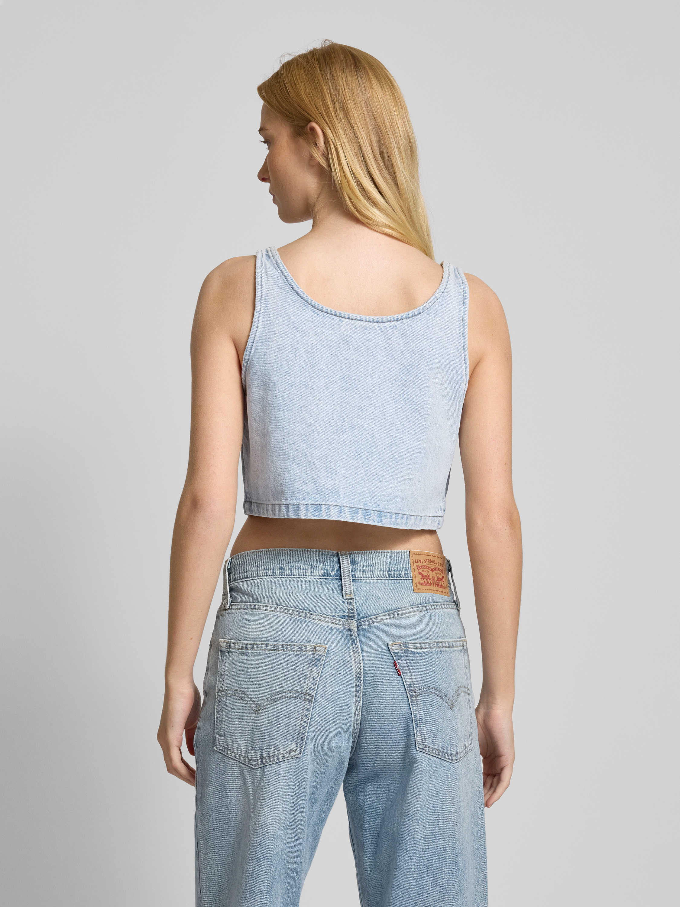 Korte top in denimlook in jeansblauw