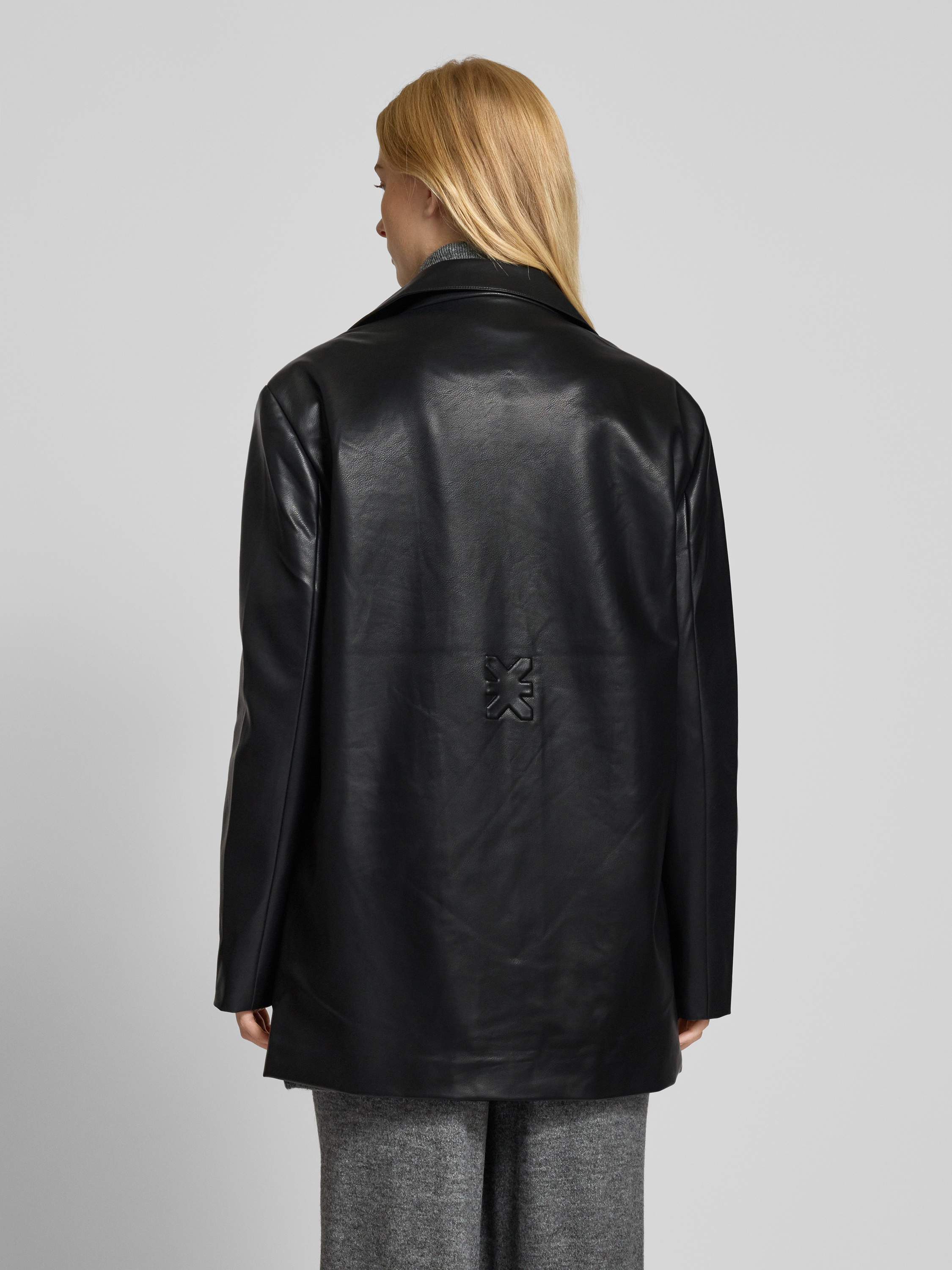 Leren blazer met reverskraag in zwart