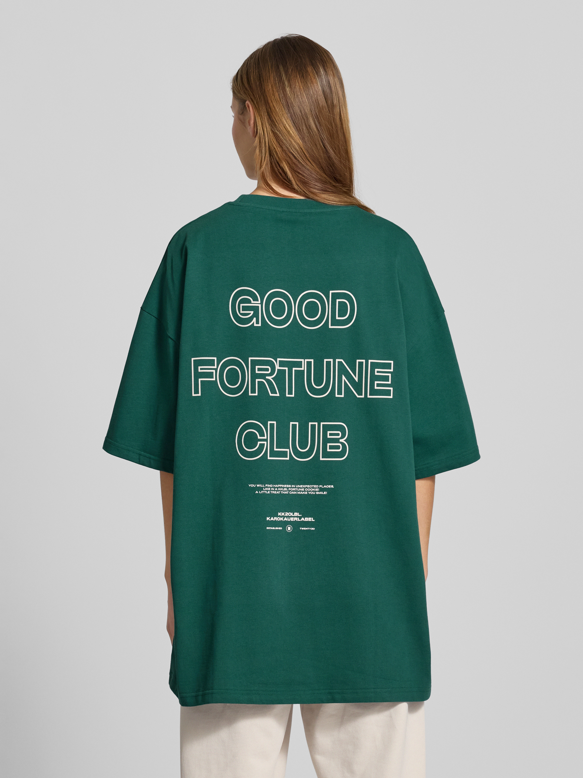 Oversized T-shirt met motief- en statementprint in donkergroen