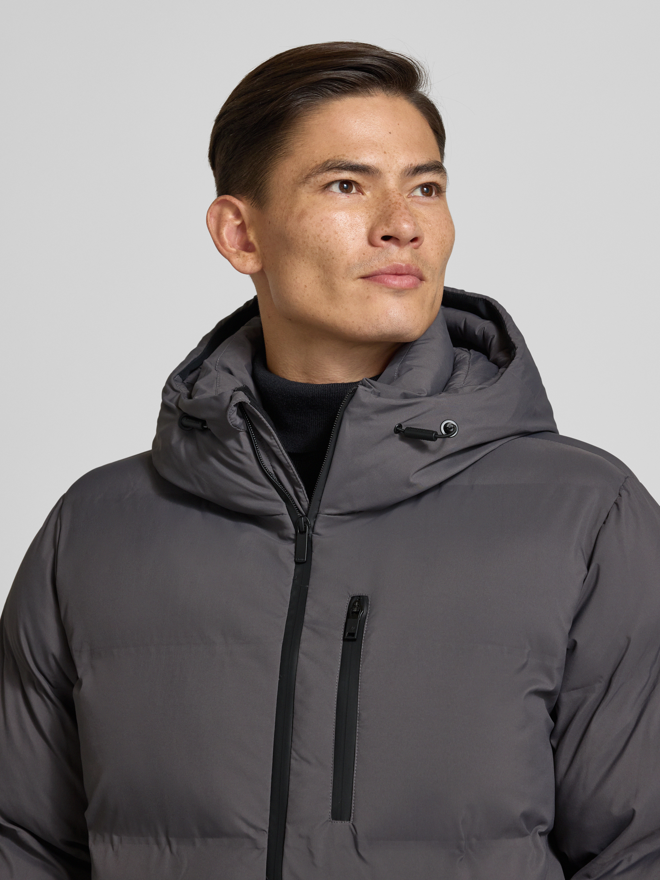 Gewatteerd jack met capuchon, model 'Silas' in antraciet