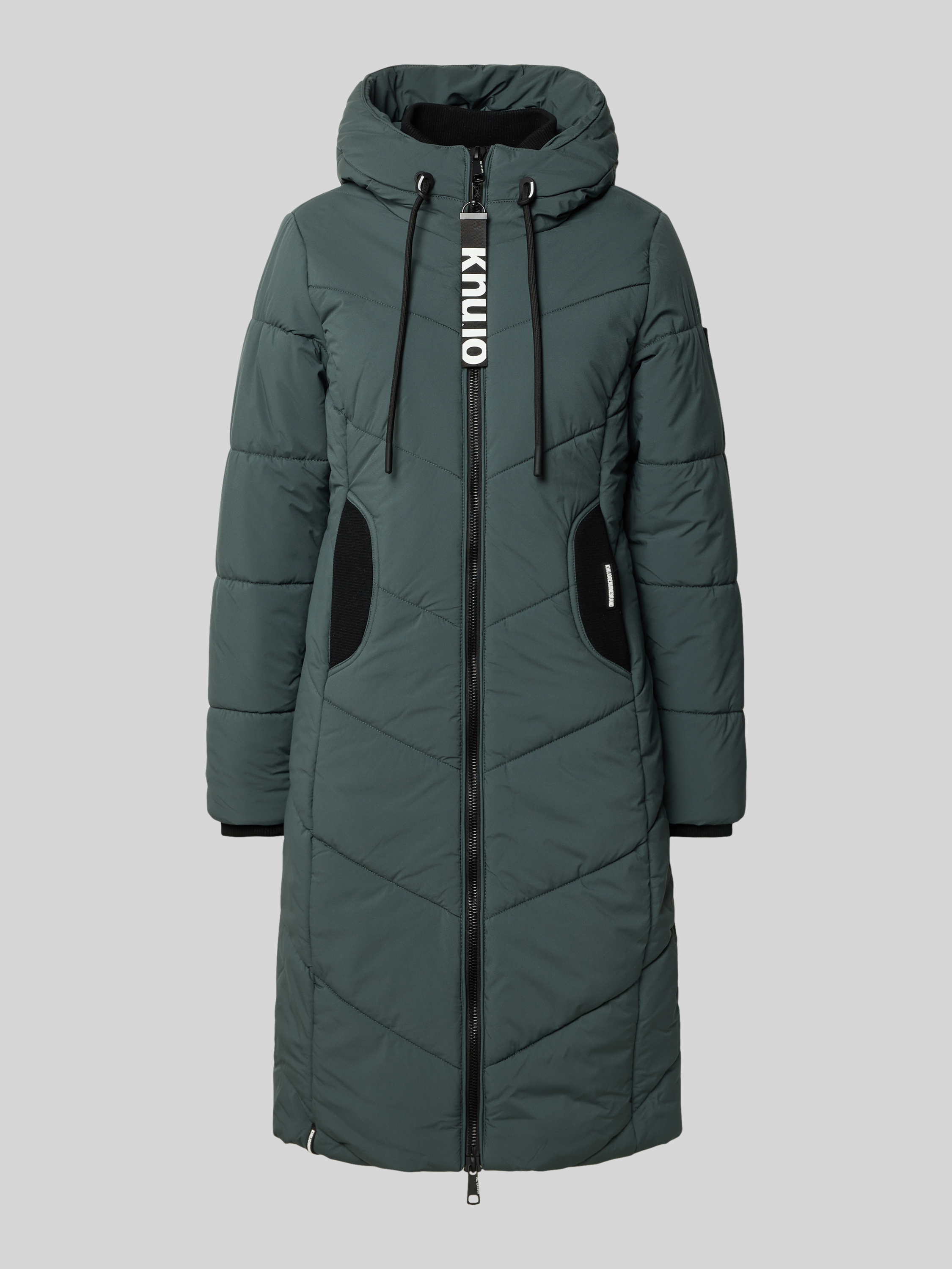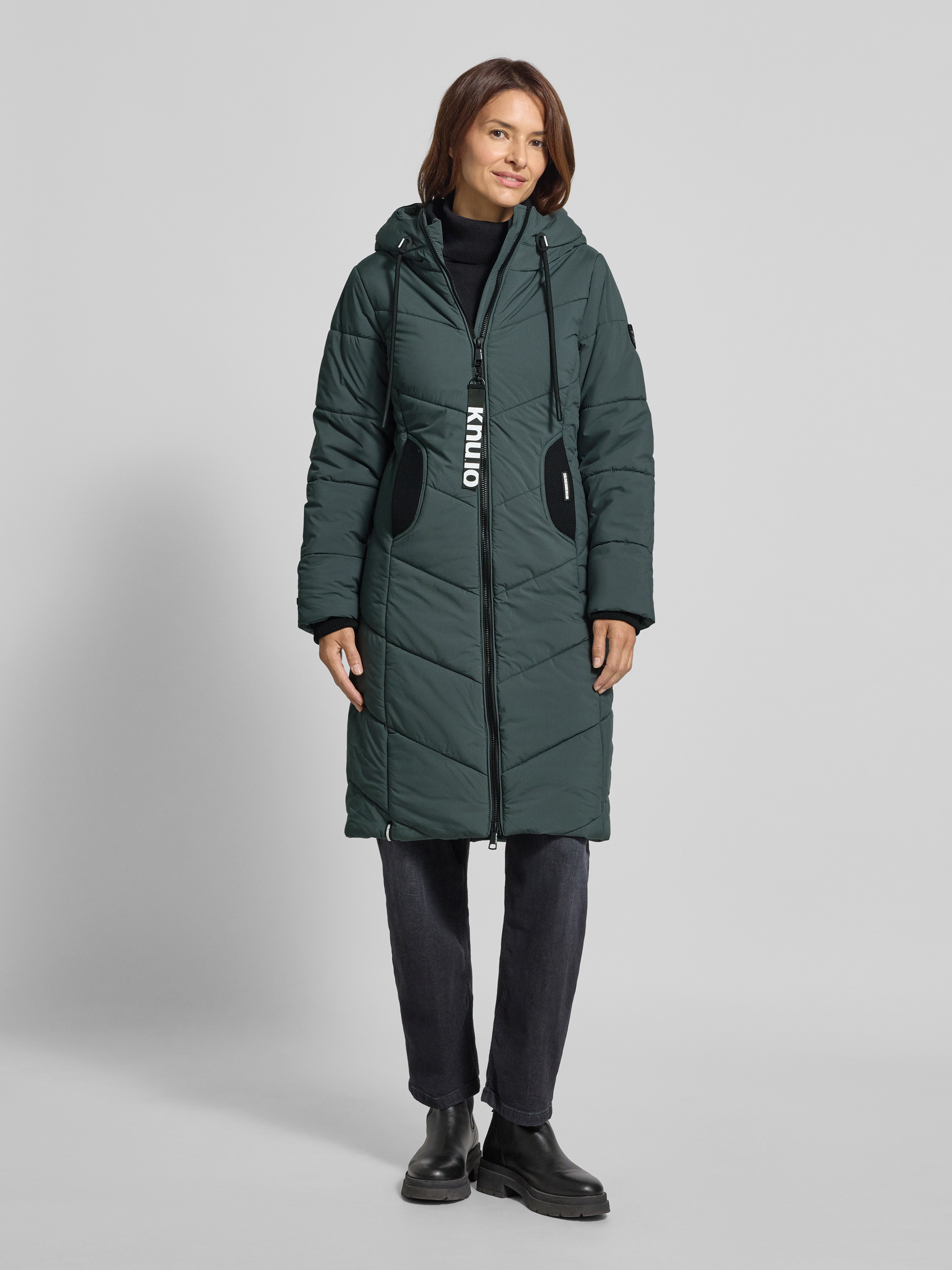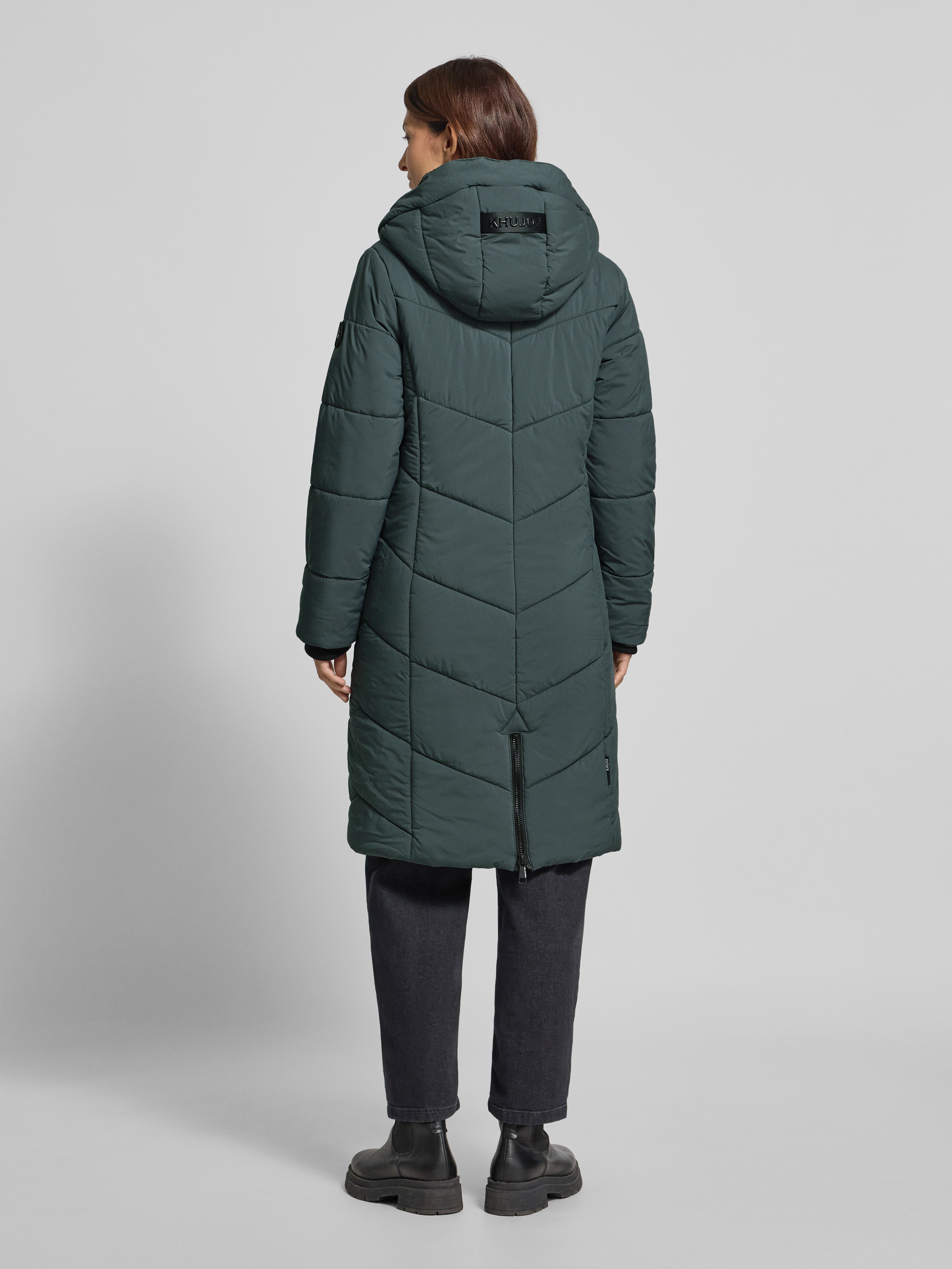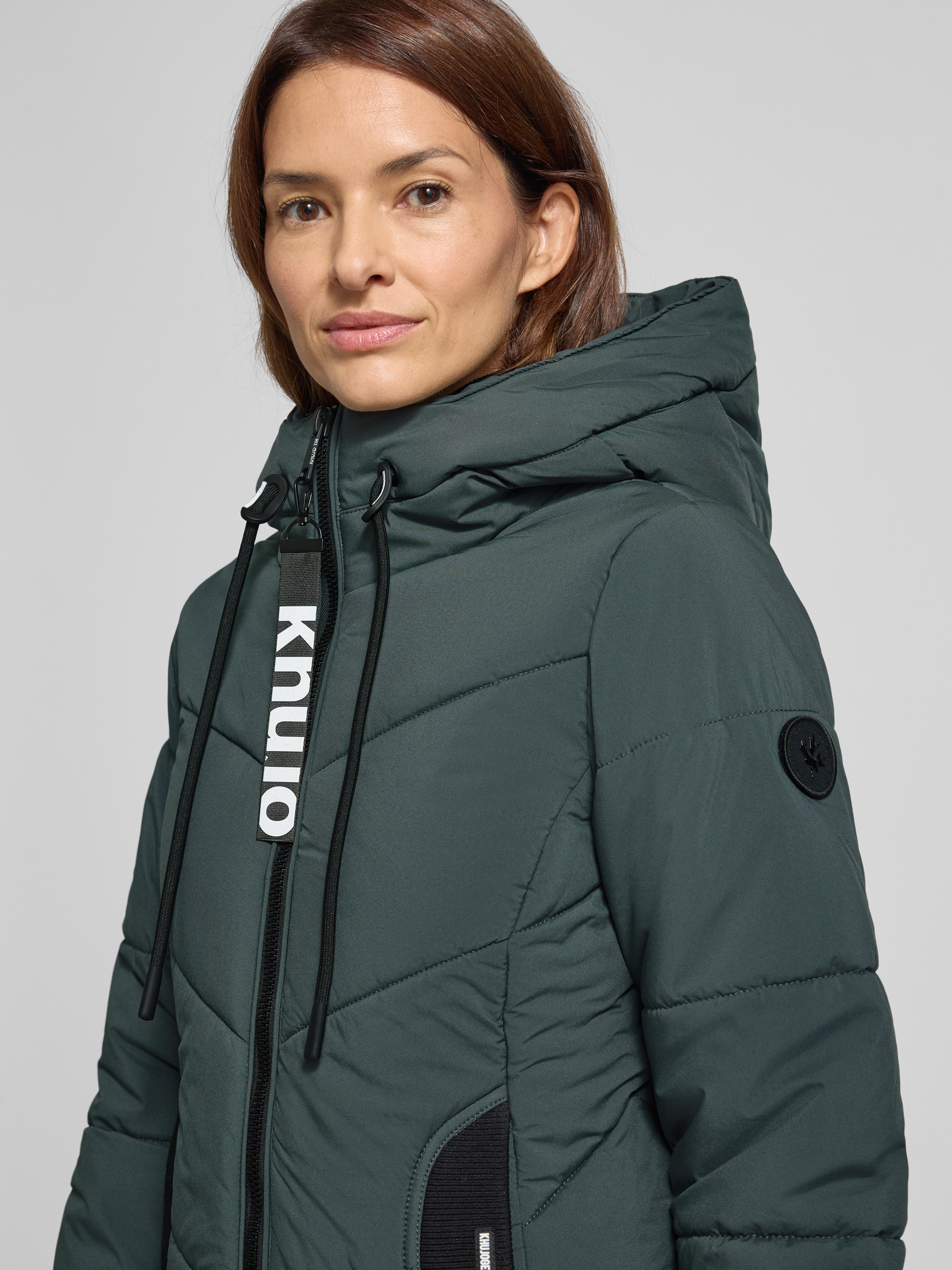 Gewatteerde lange jas met capuchon, model 'ARIBAY' in donkergroen