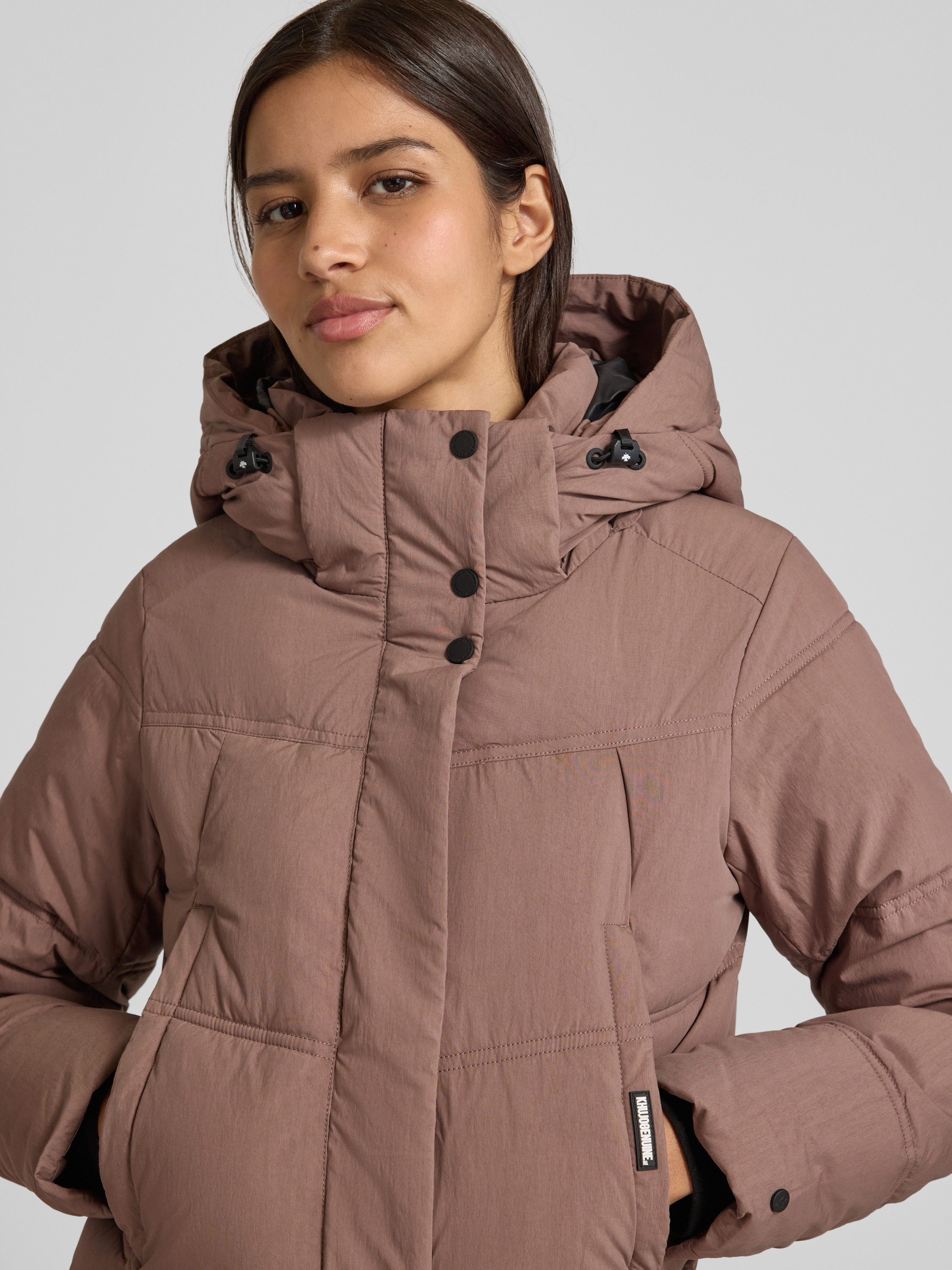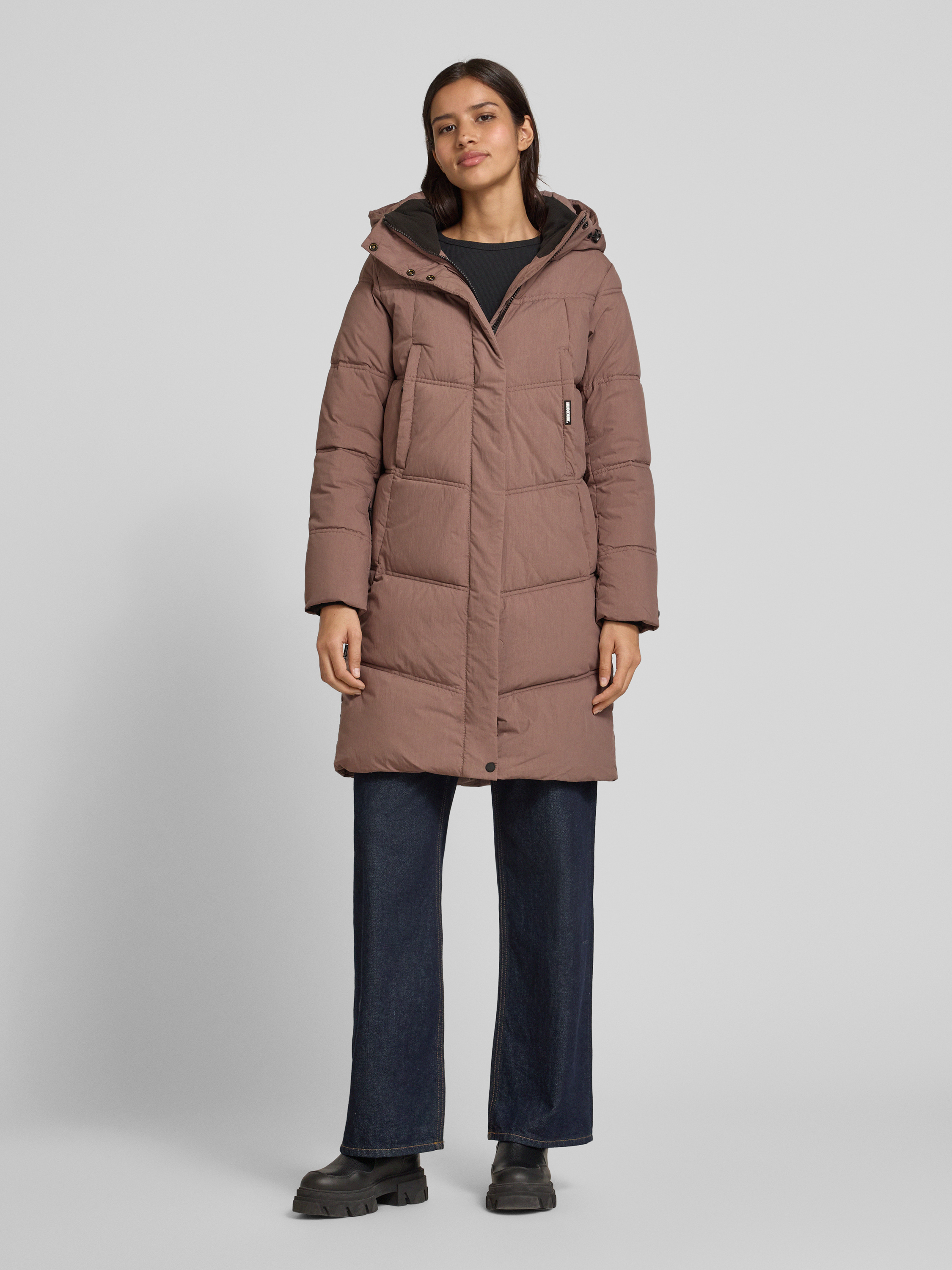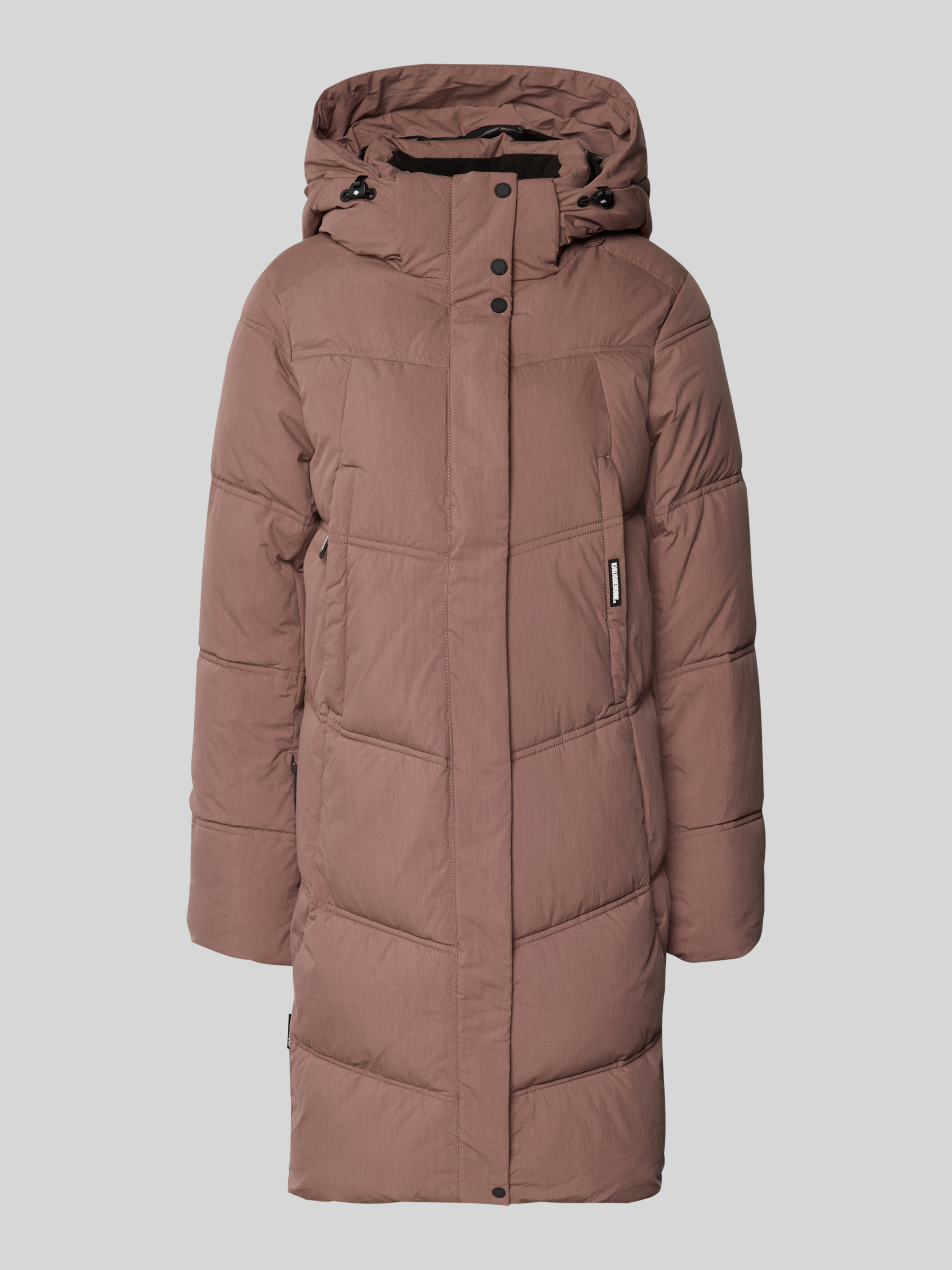 Gewatteerde lange jas met capuchon, model 'Graya' in beige