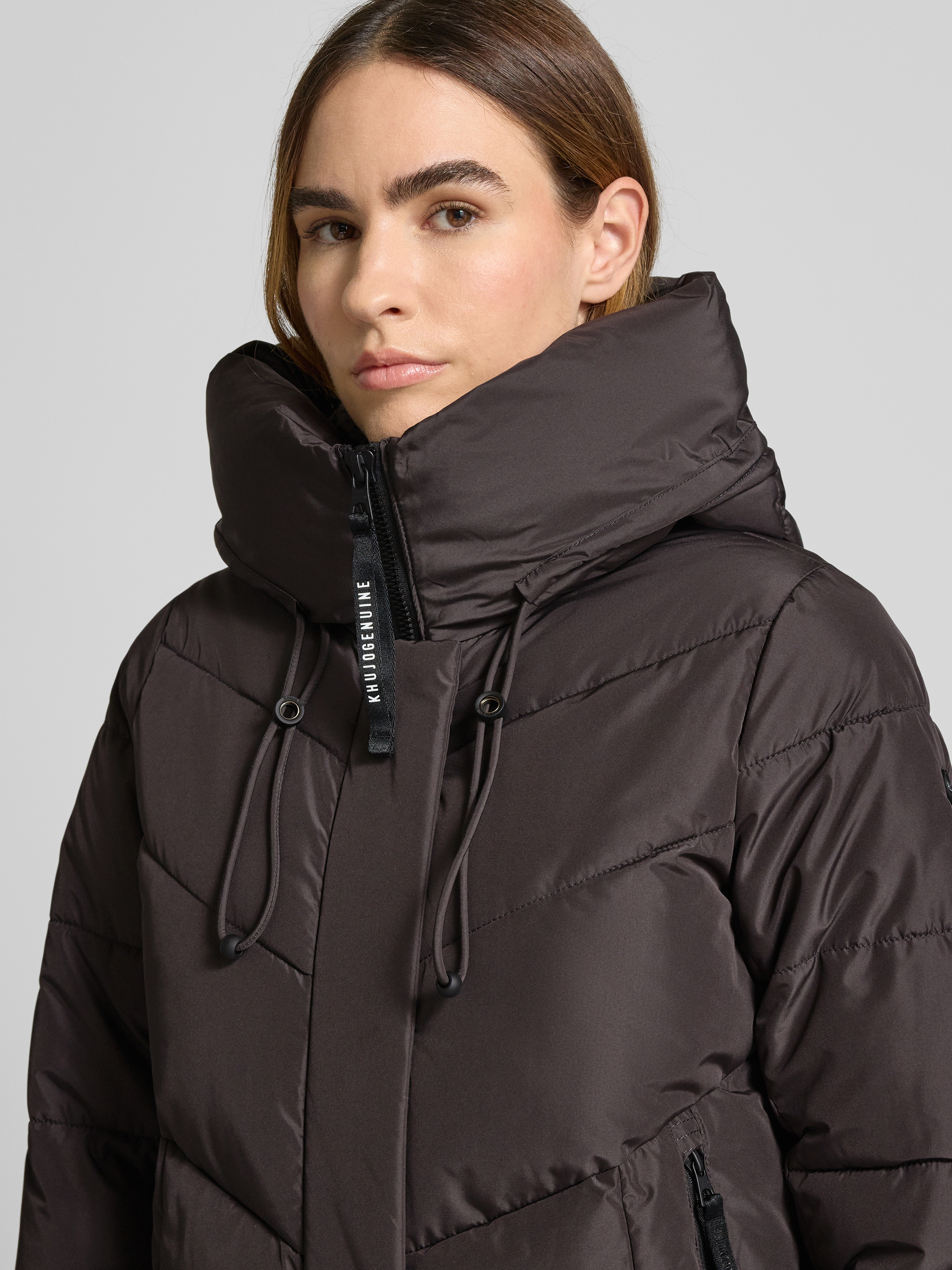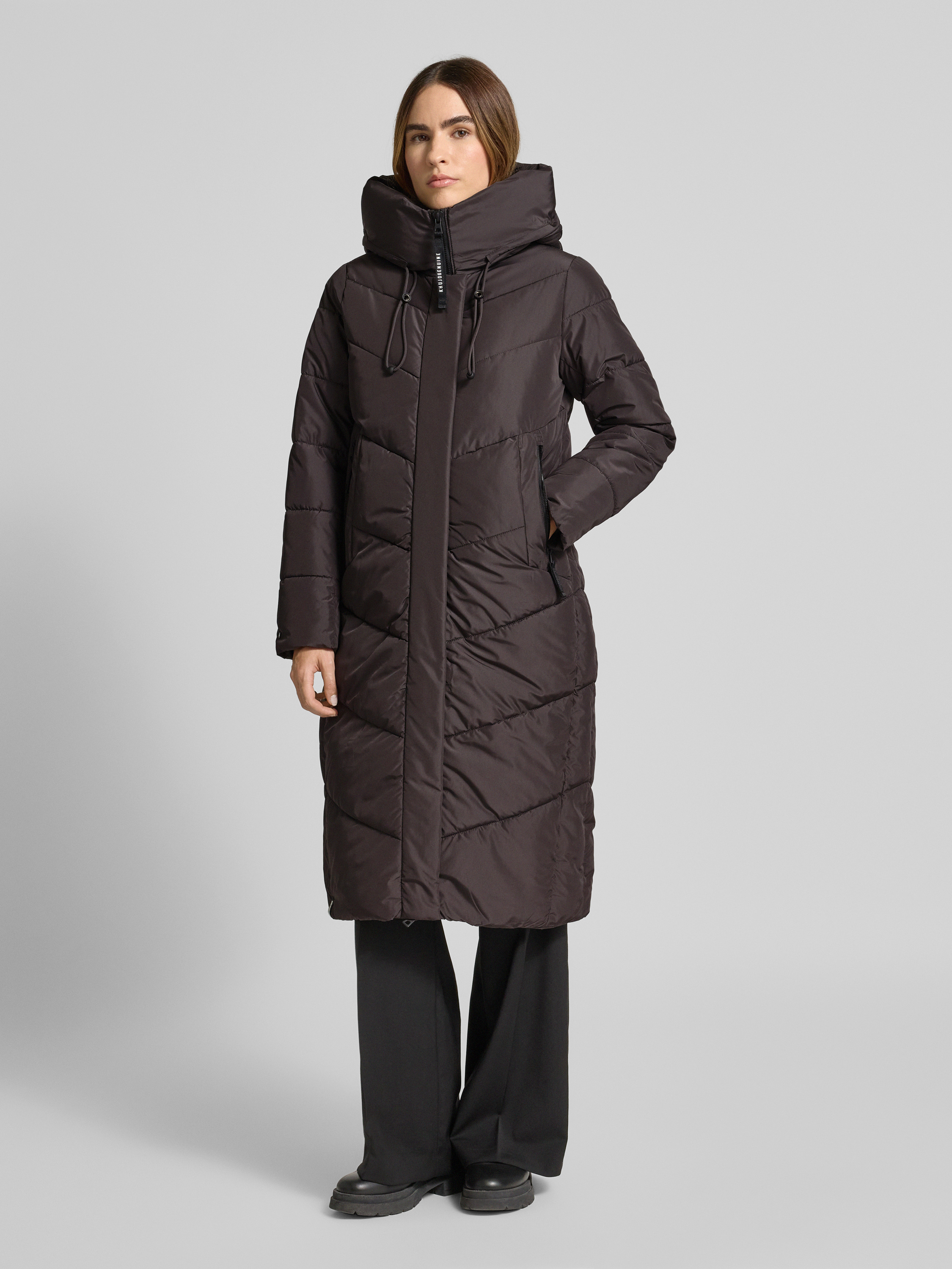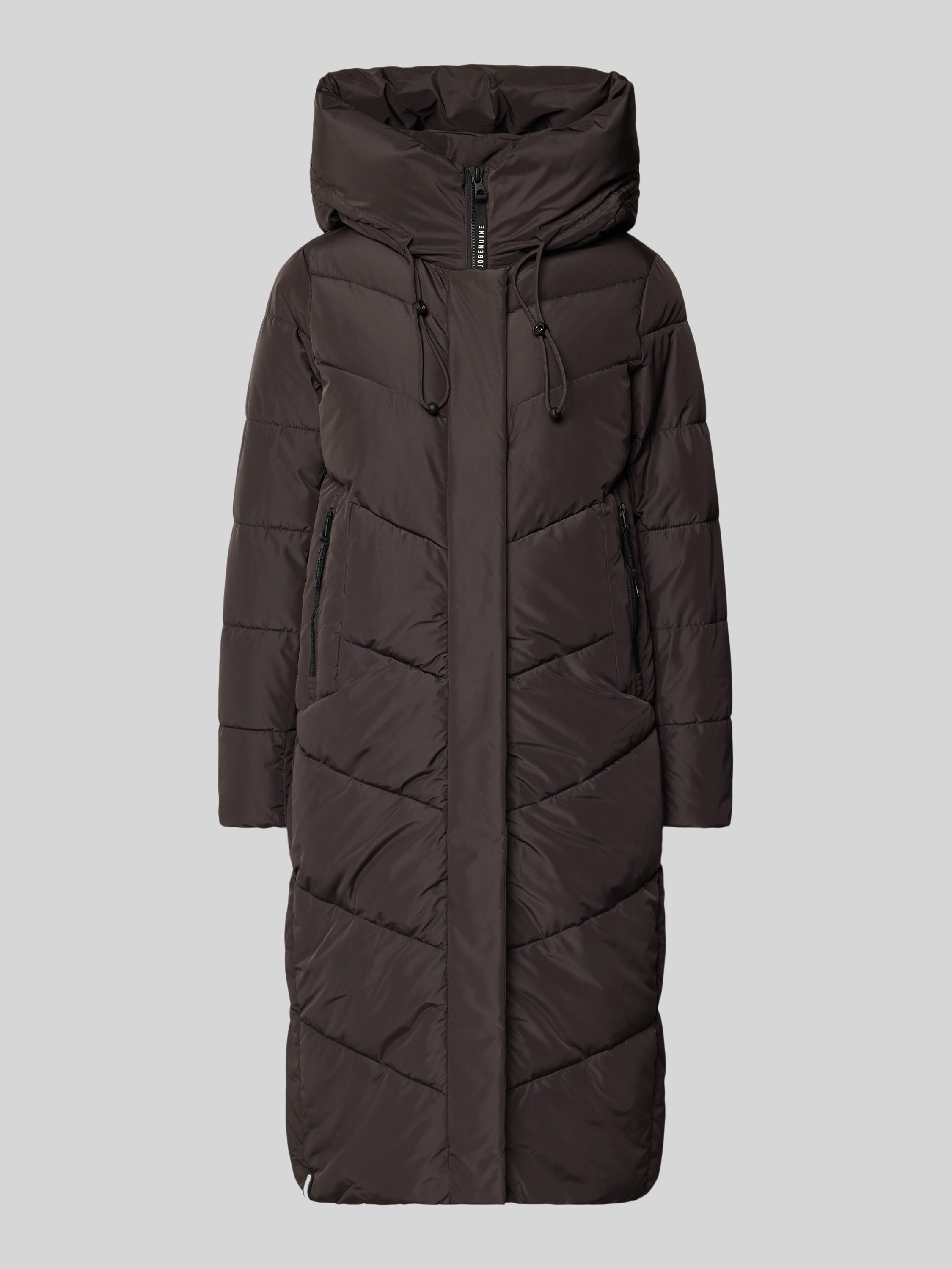 Gewatteerde lange jas met capuchon, model 'TEPLE' in prune