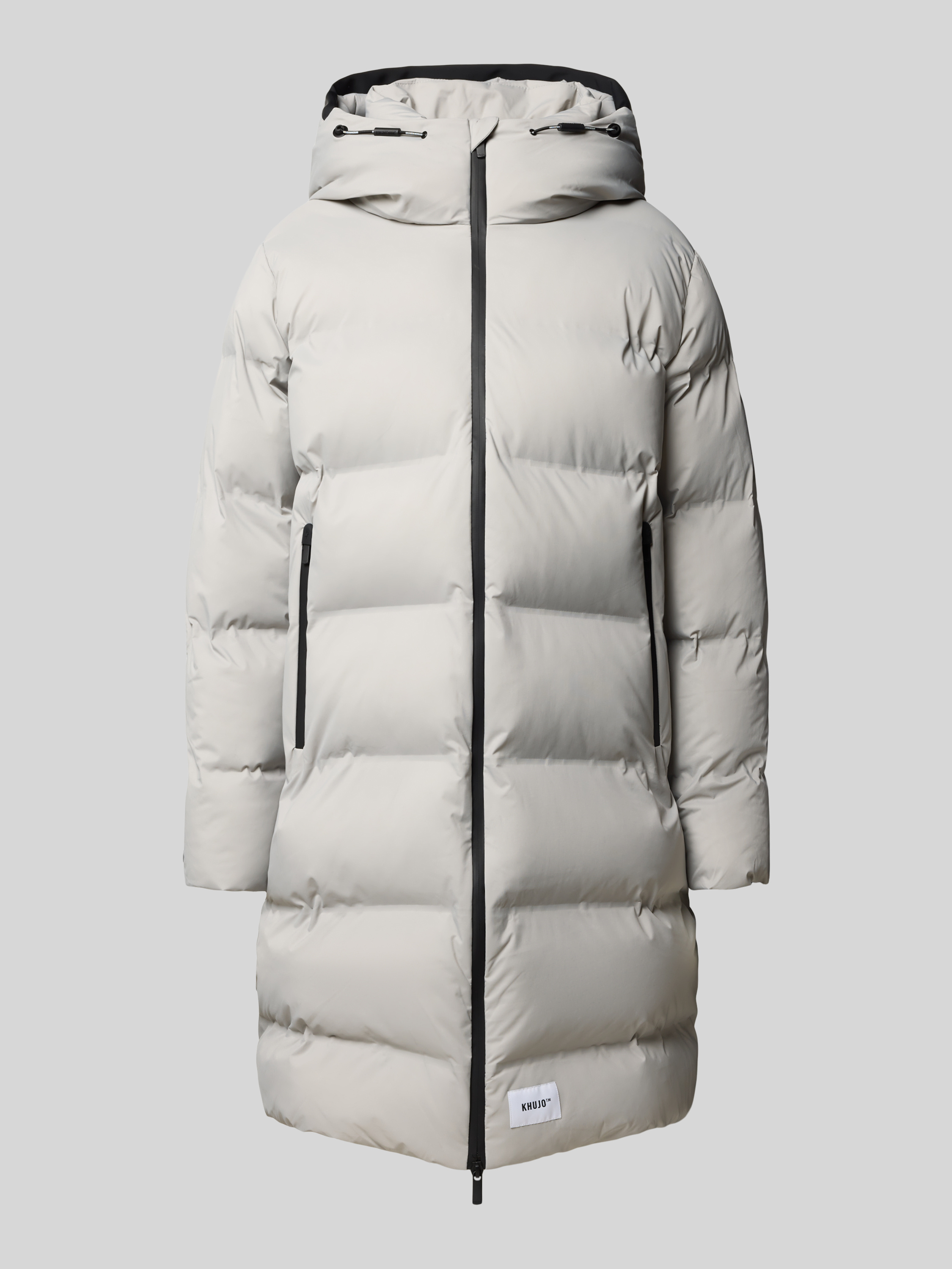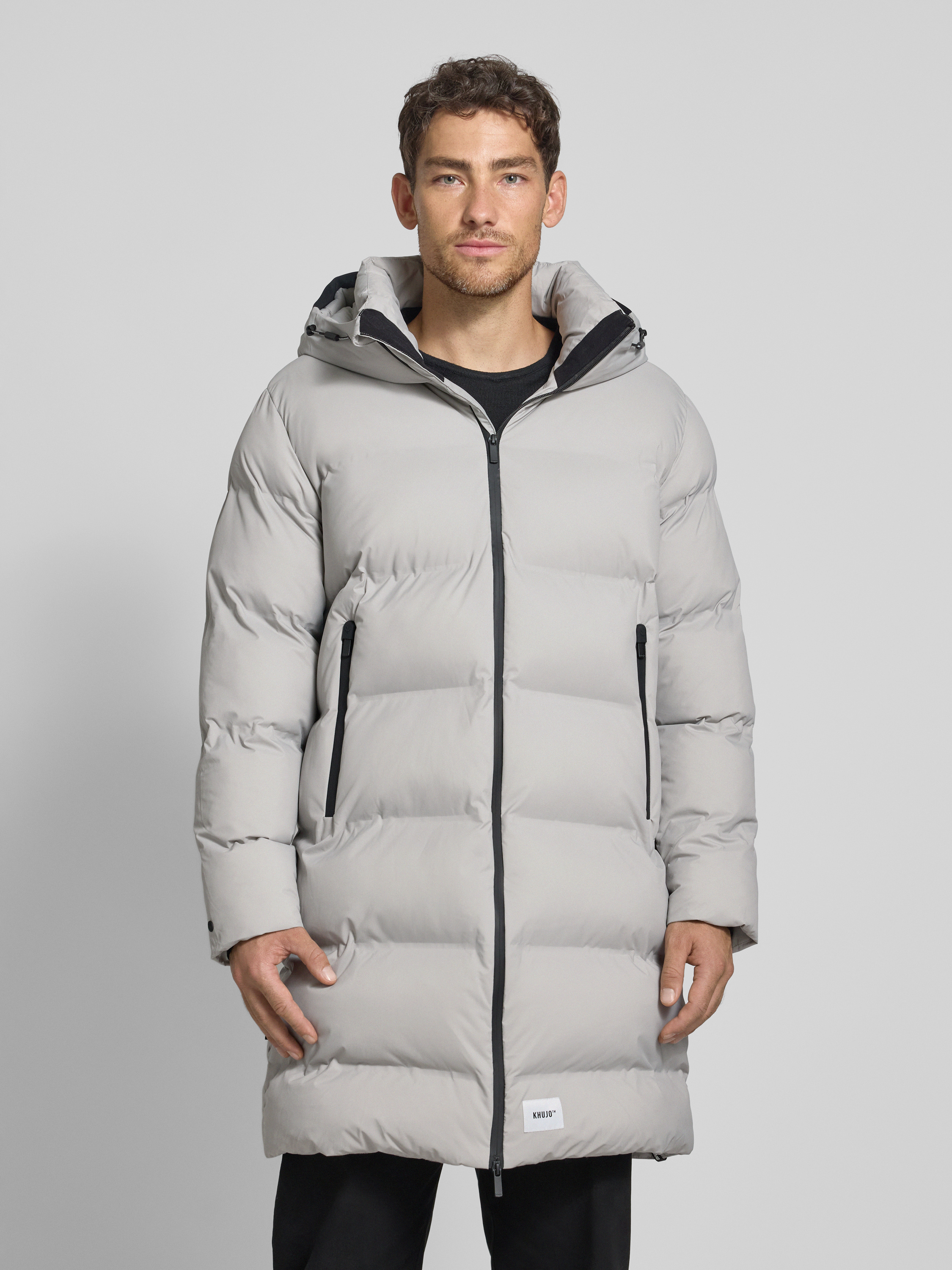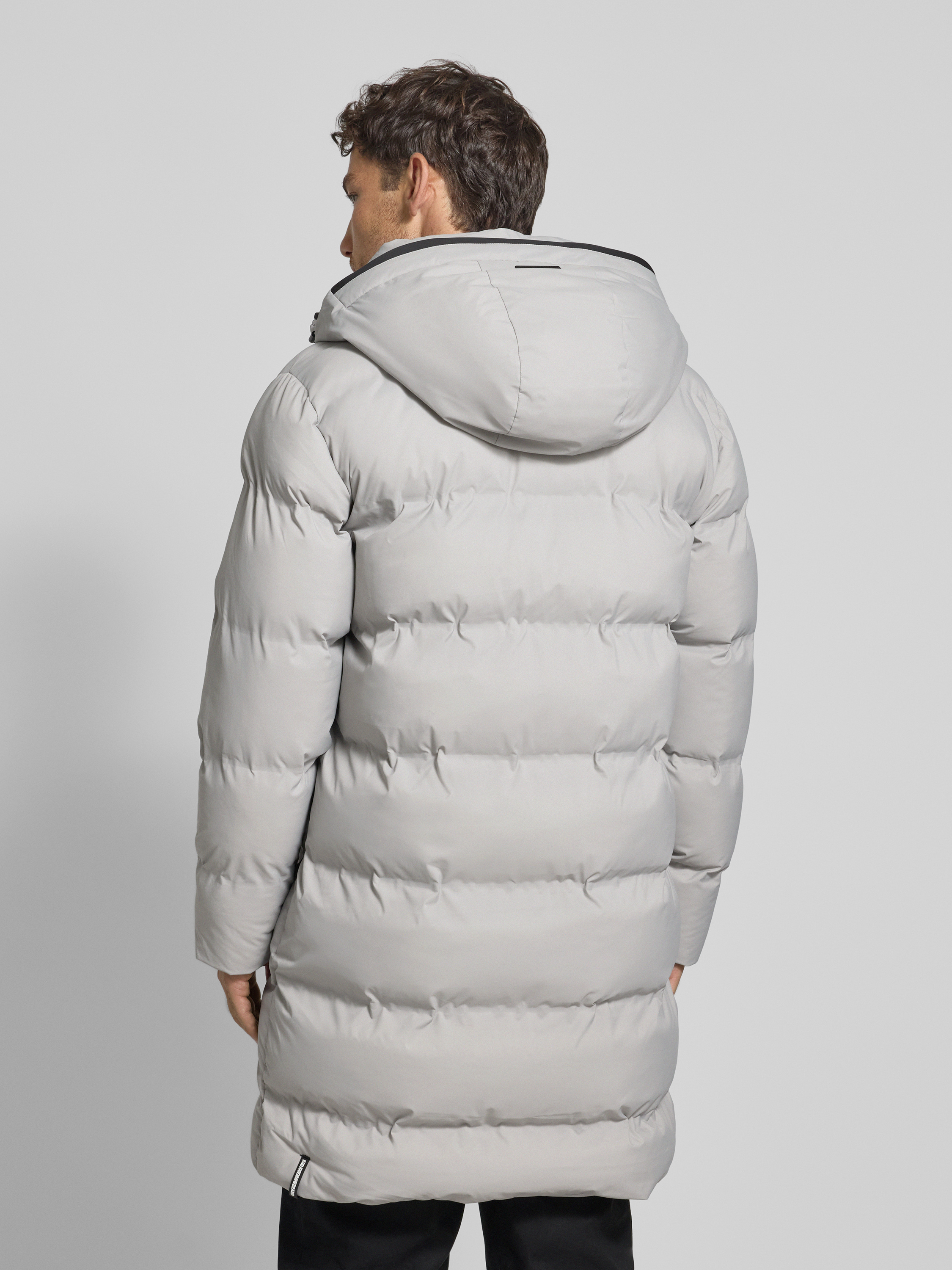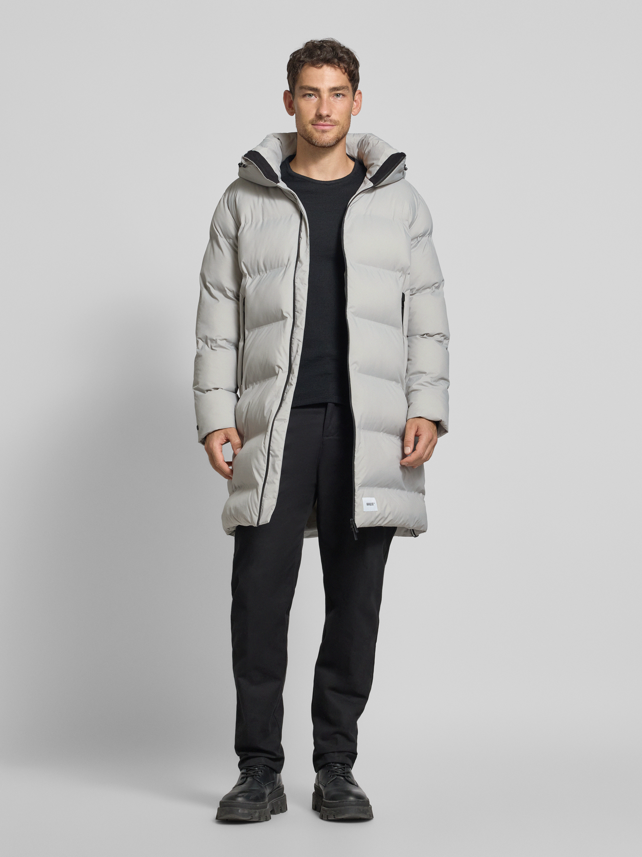 Gewatteerde lange jas met labelpatch, model 'Caius' in lichtgrijs