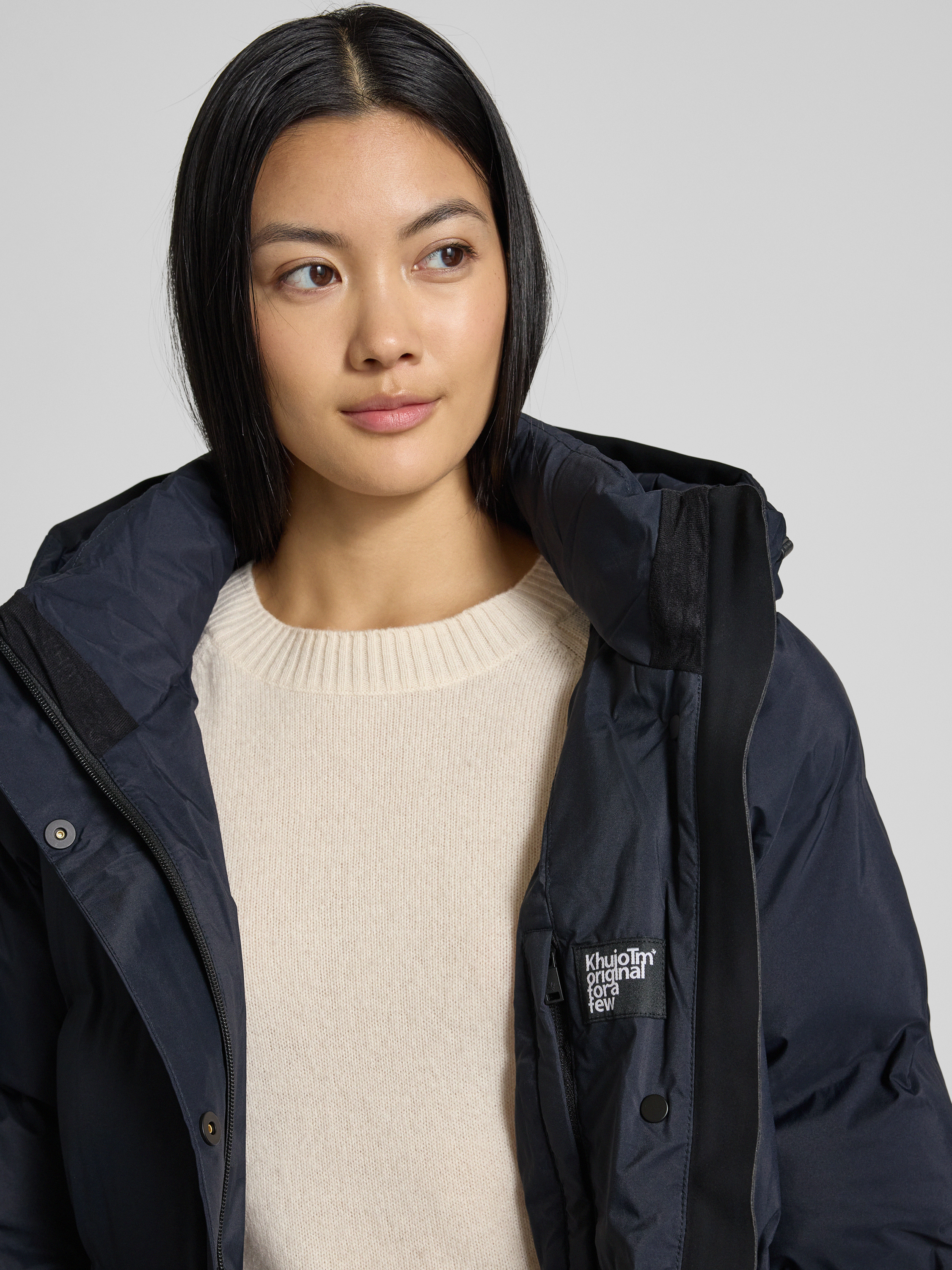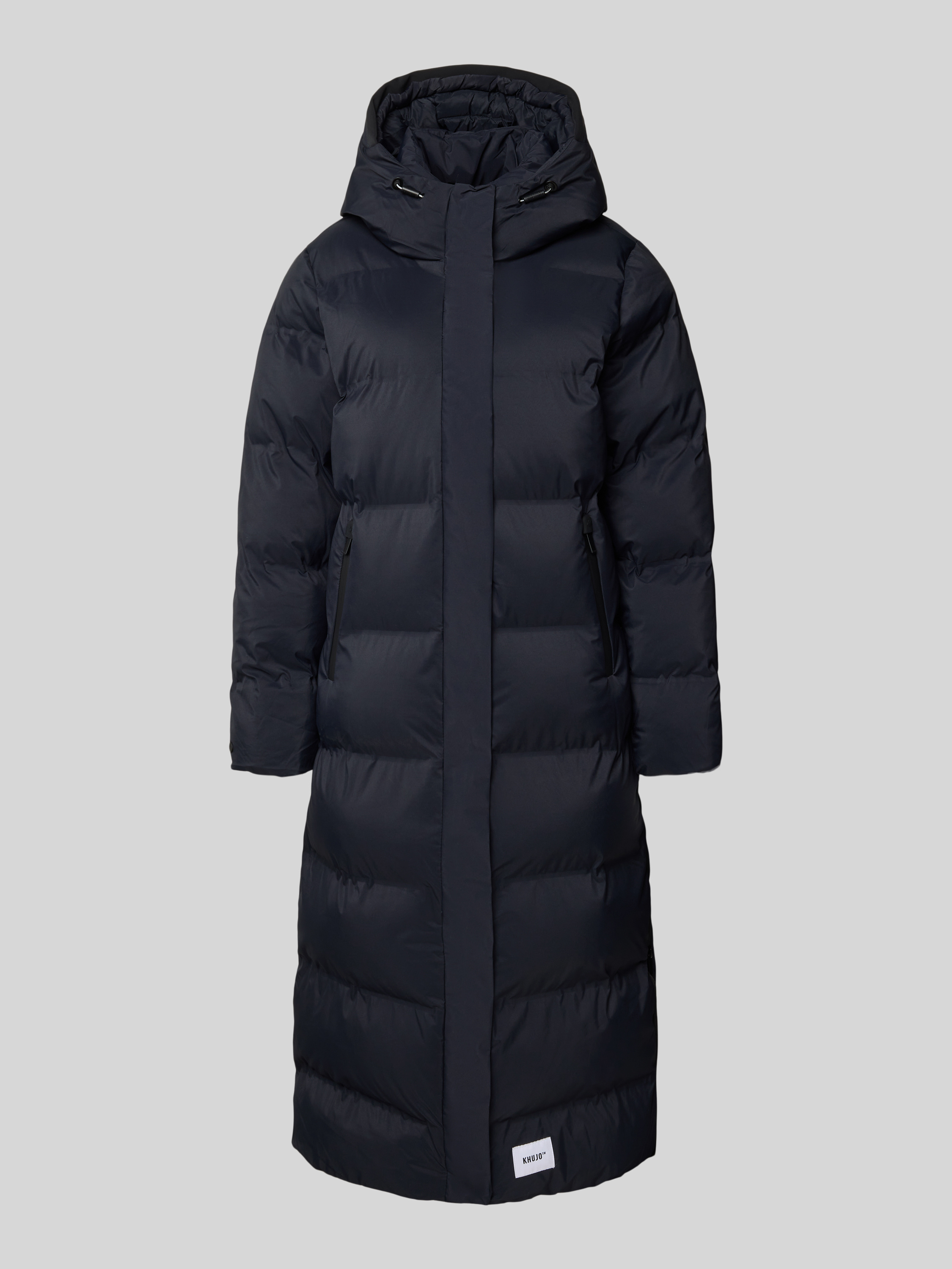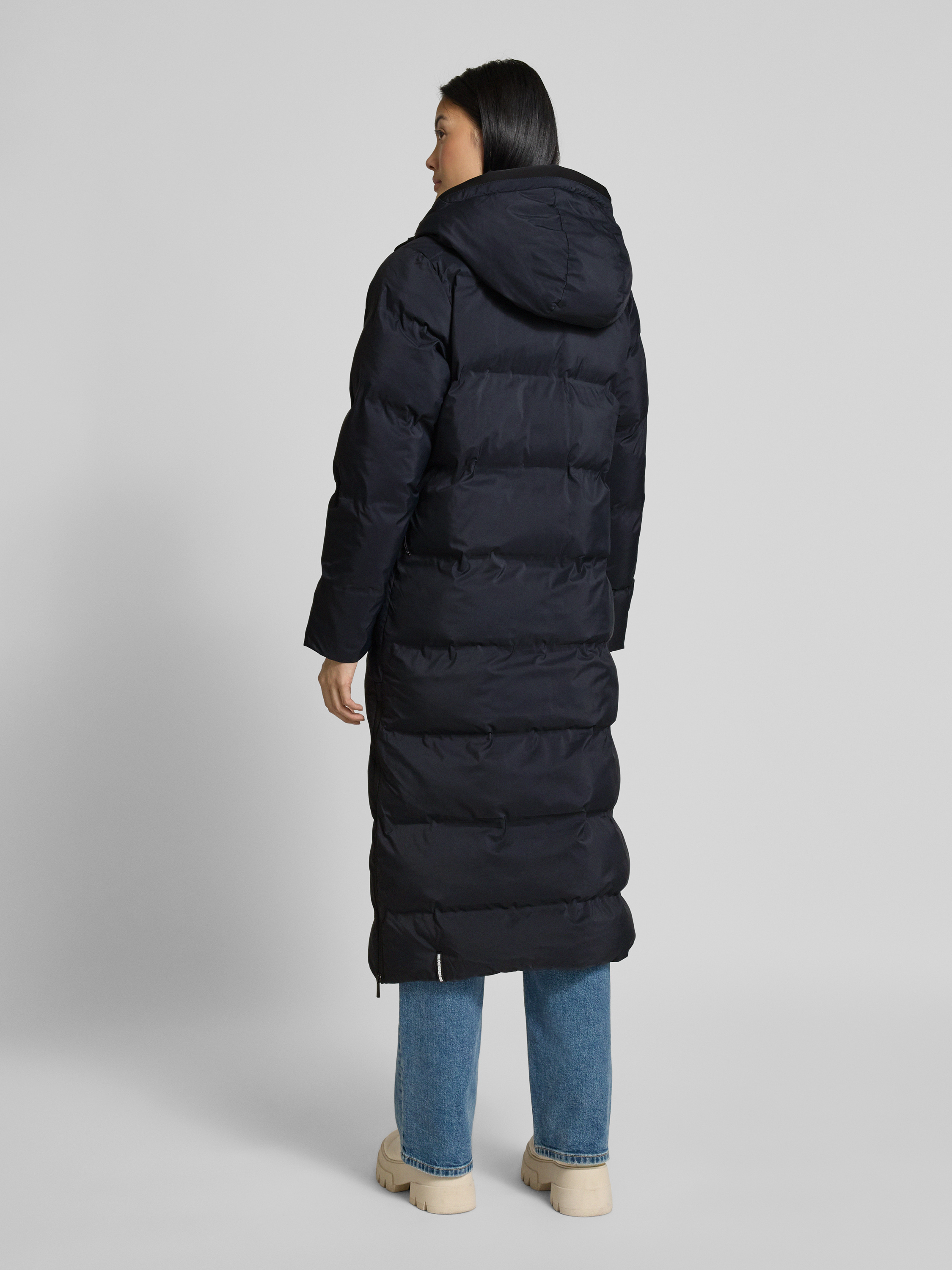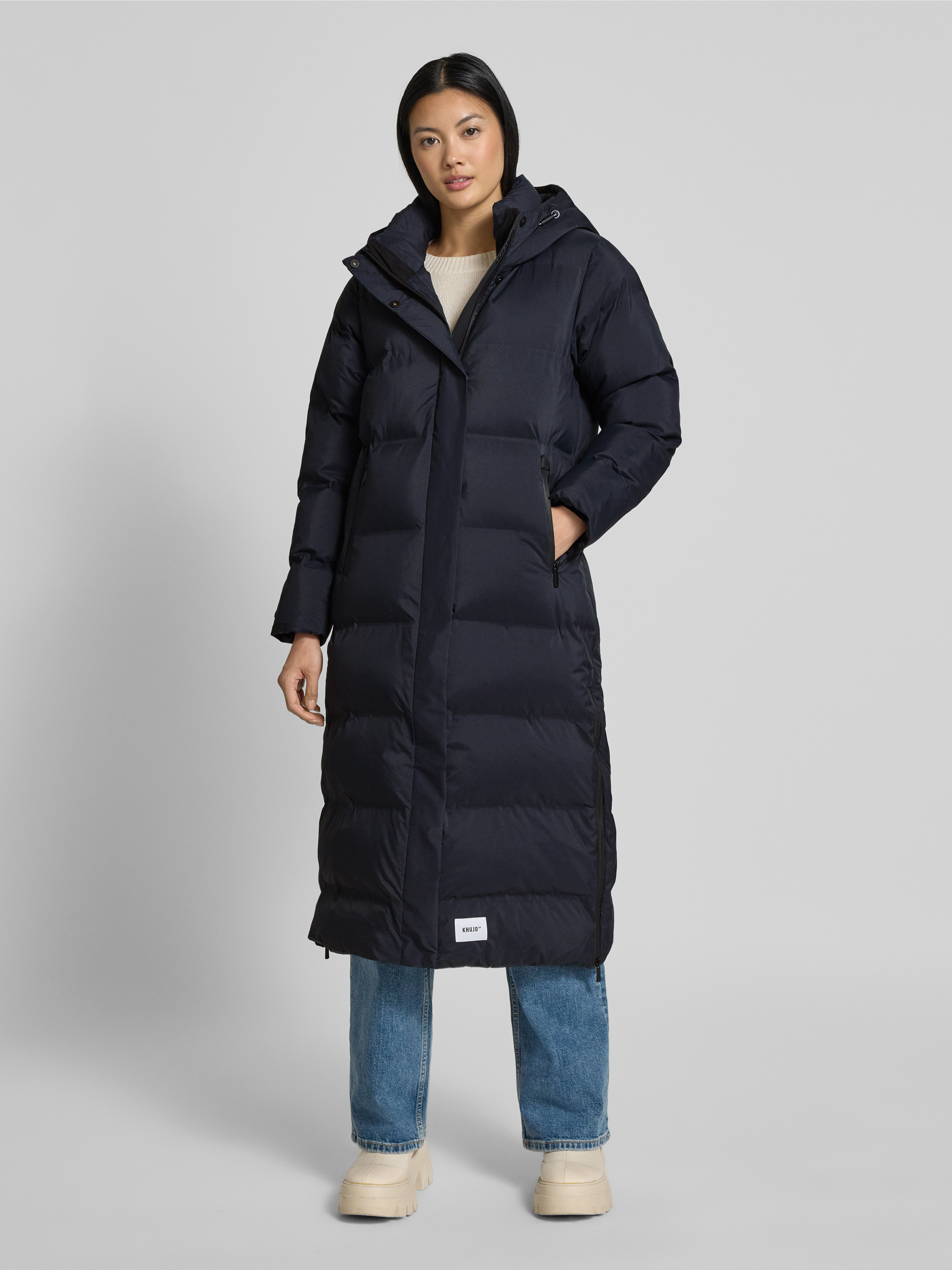 Gewatteerde lange jas met ritszakken, model 'MAYLA3' in donkerblauw