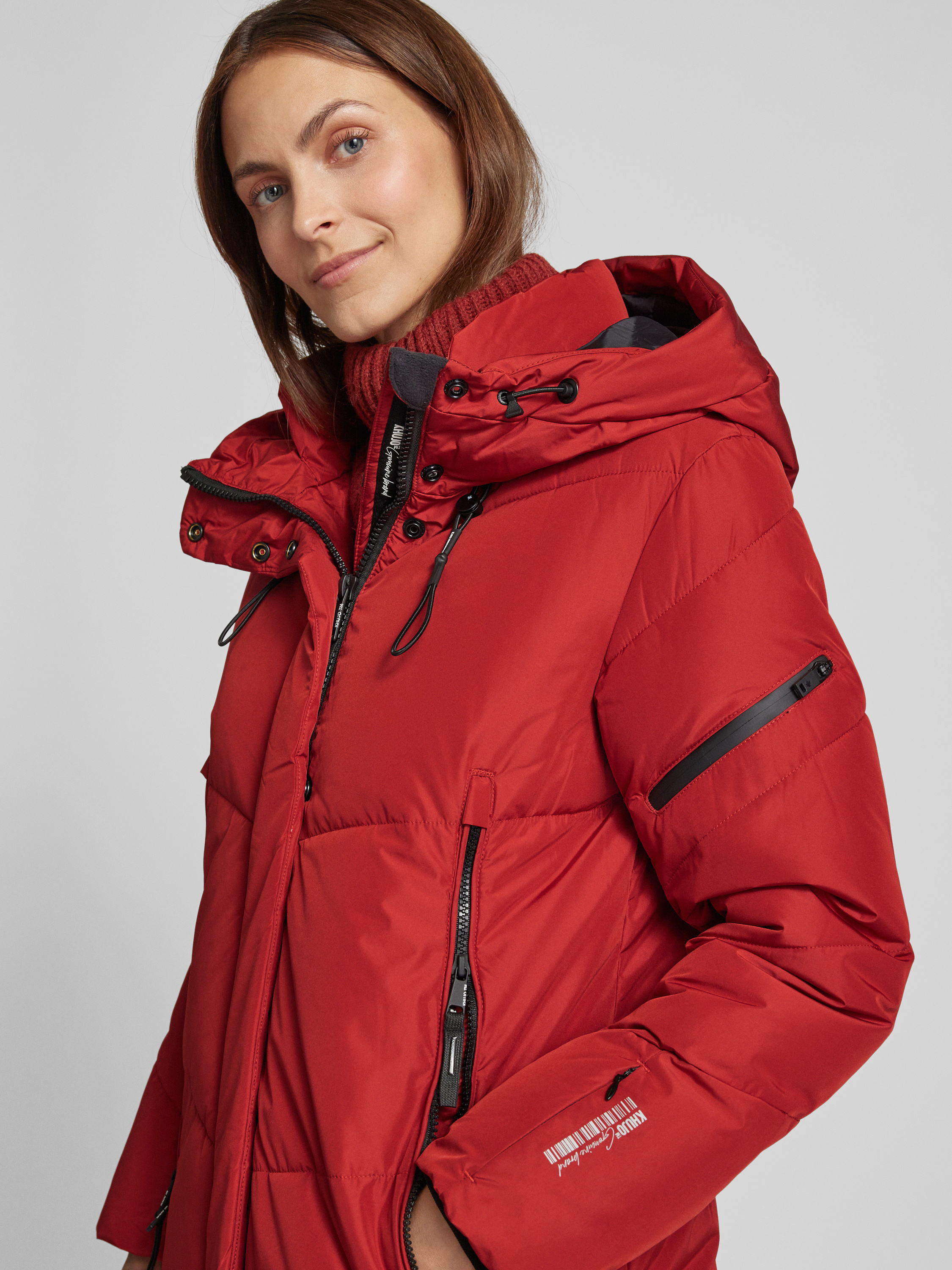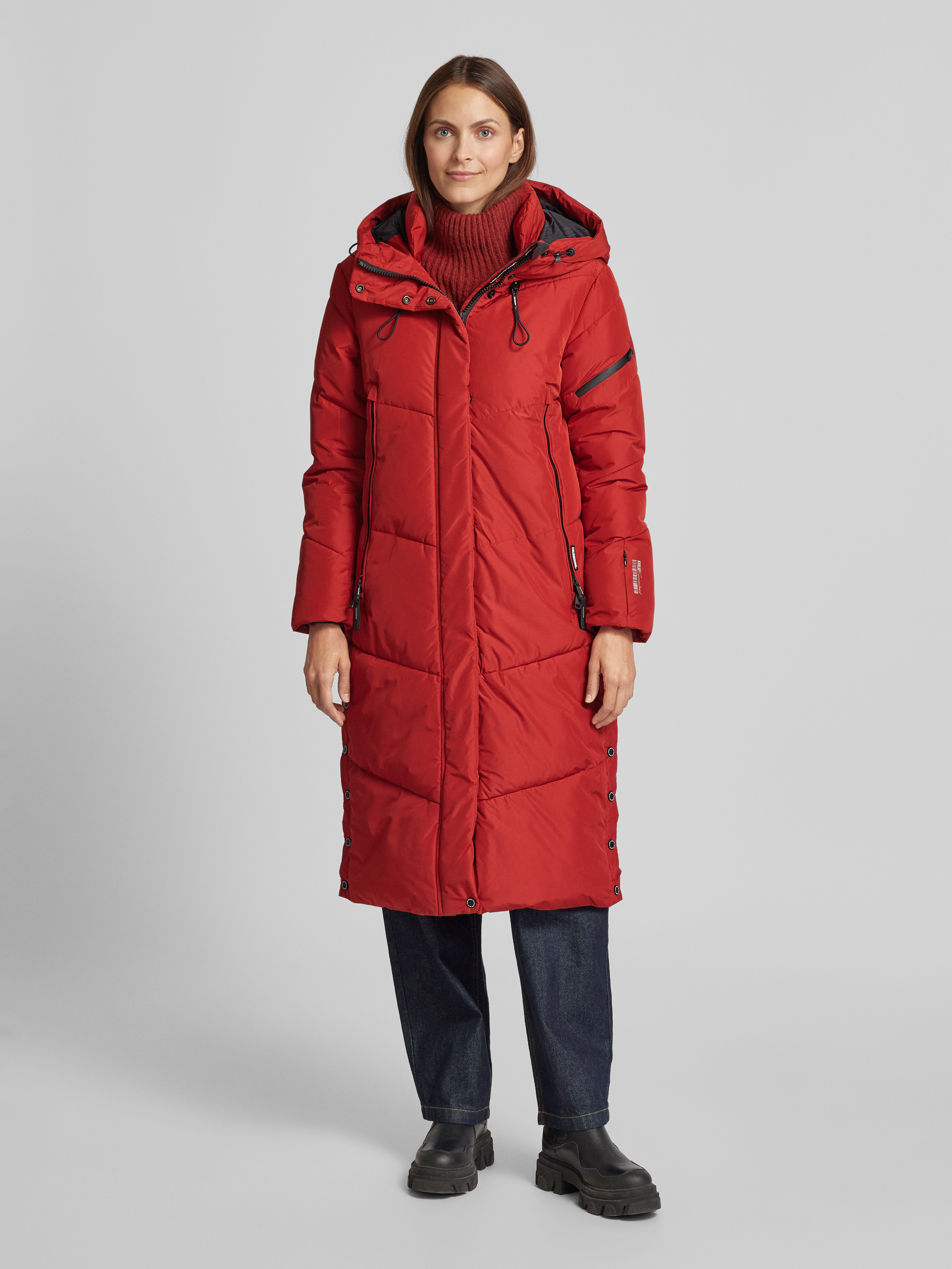 Gewatteerde lange jas met tweewegsritssluiting, model 'SONJE5' in rood