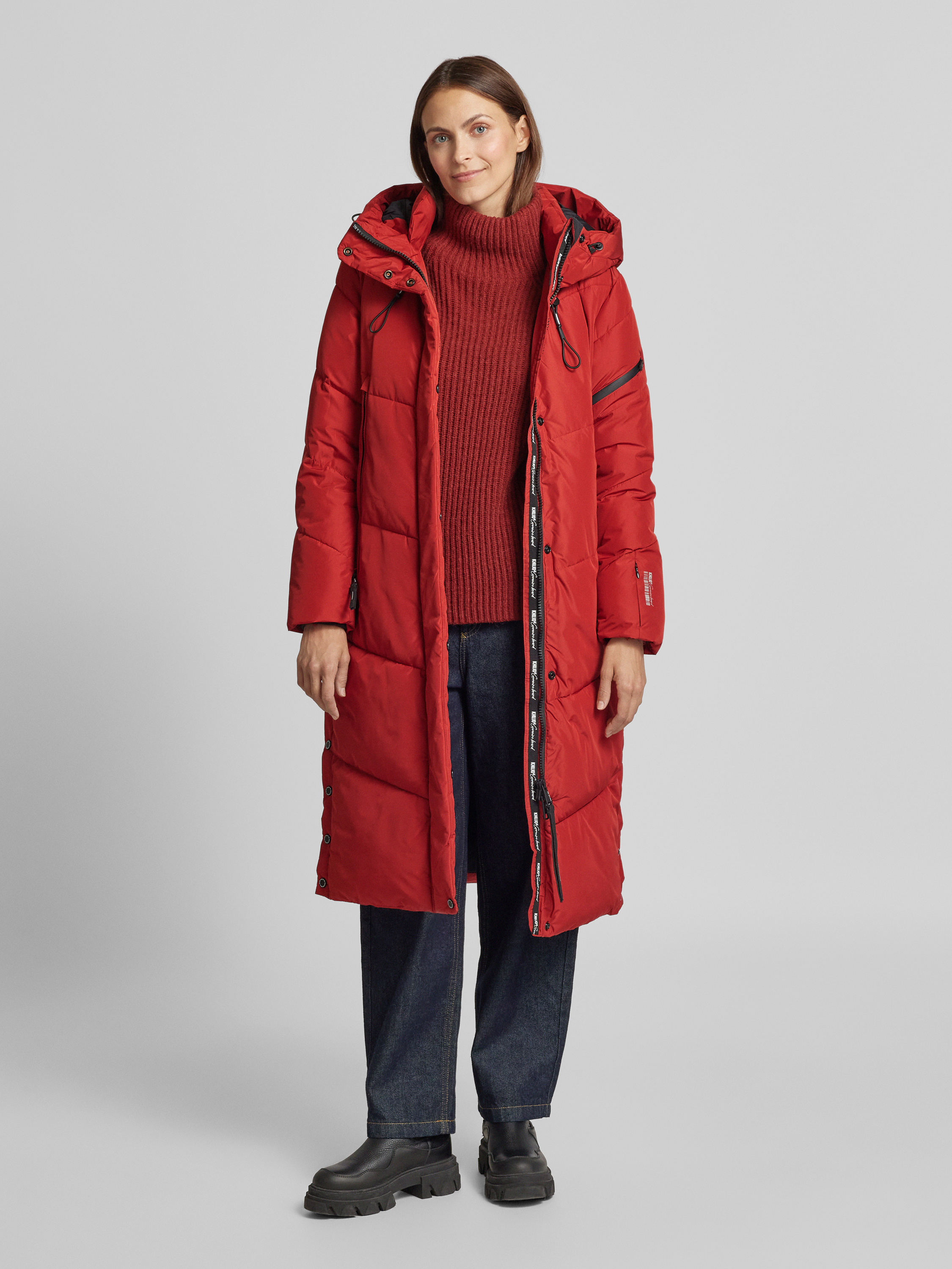 Lange gewatteerde jassen Rood