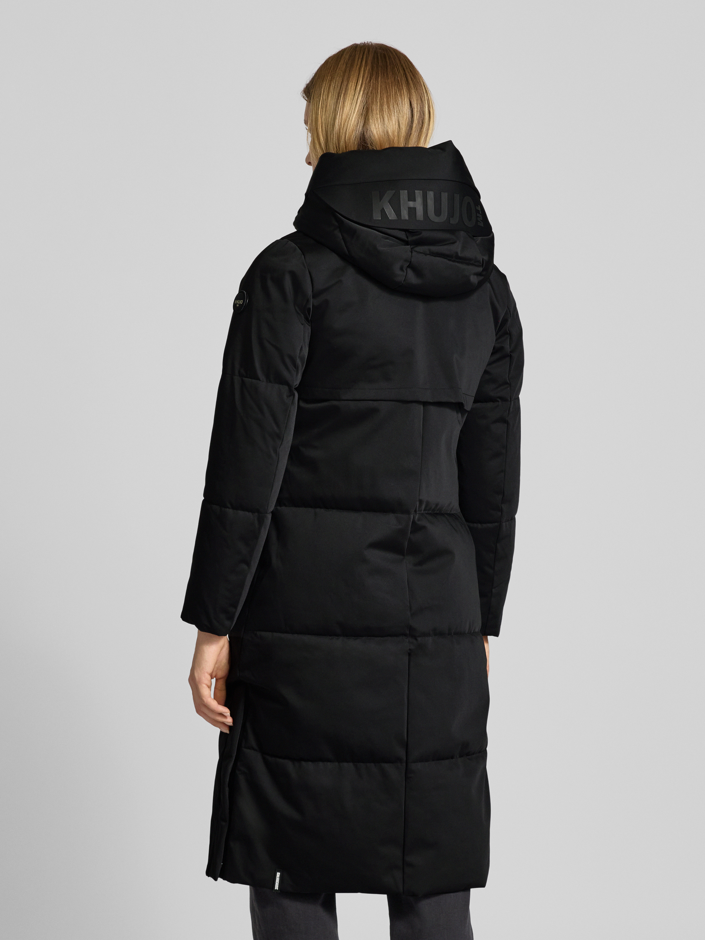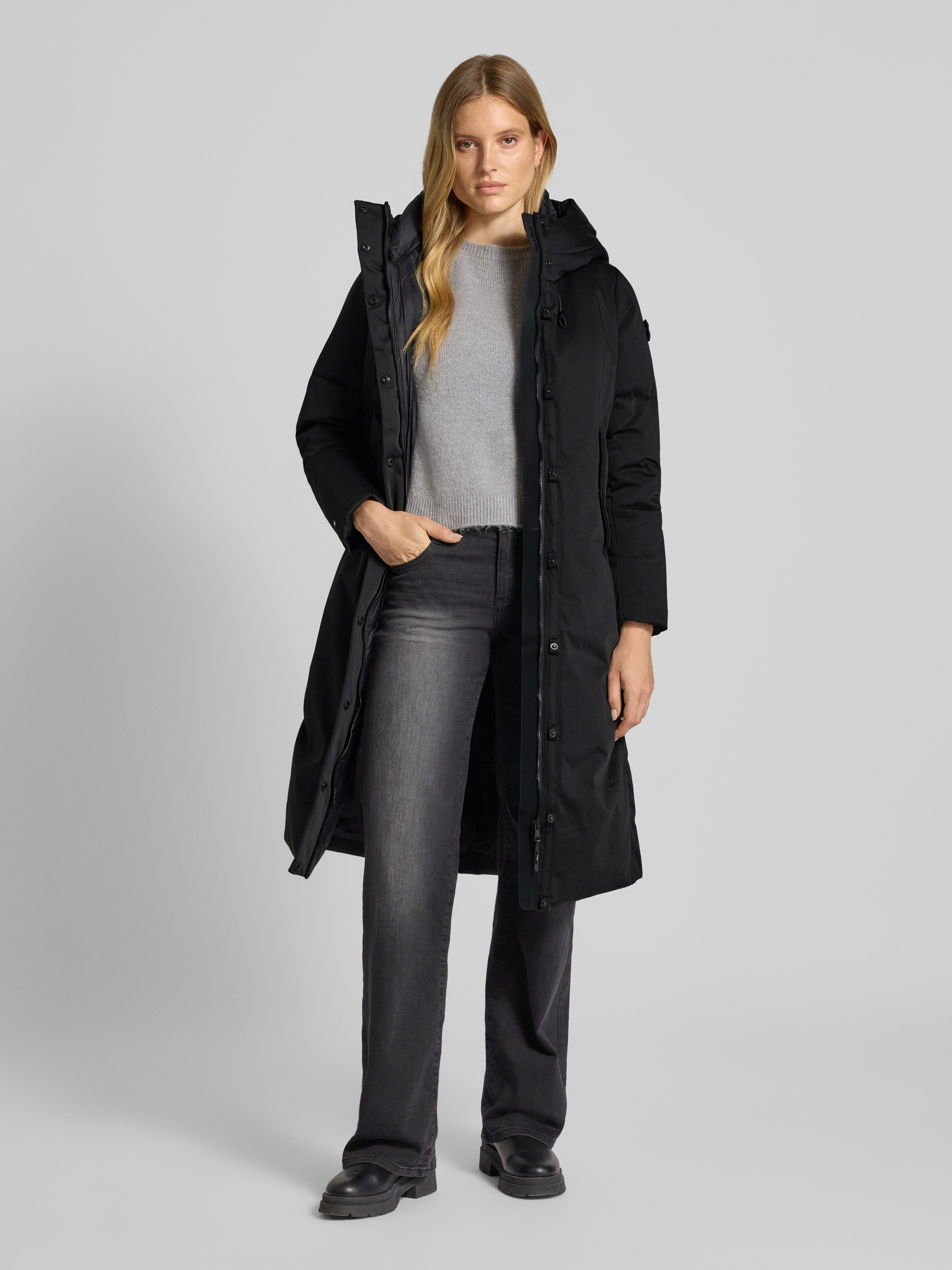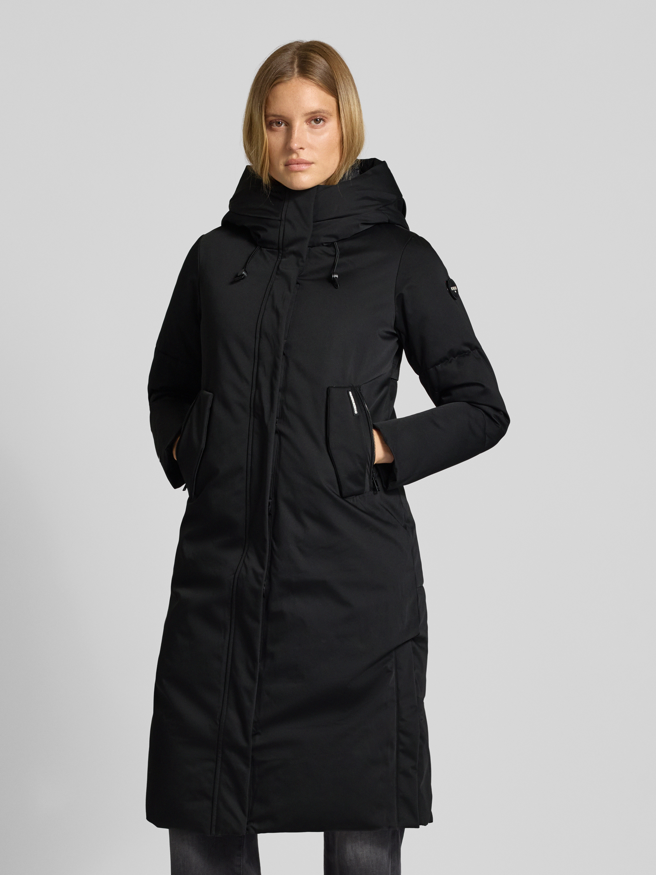 Lange jas met capuchon, model 'LUGGS' in zwart