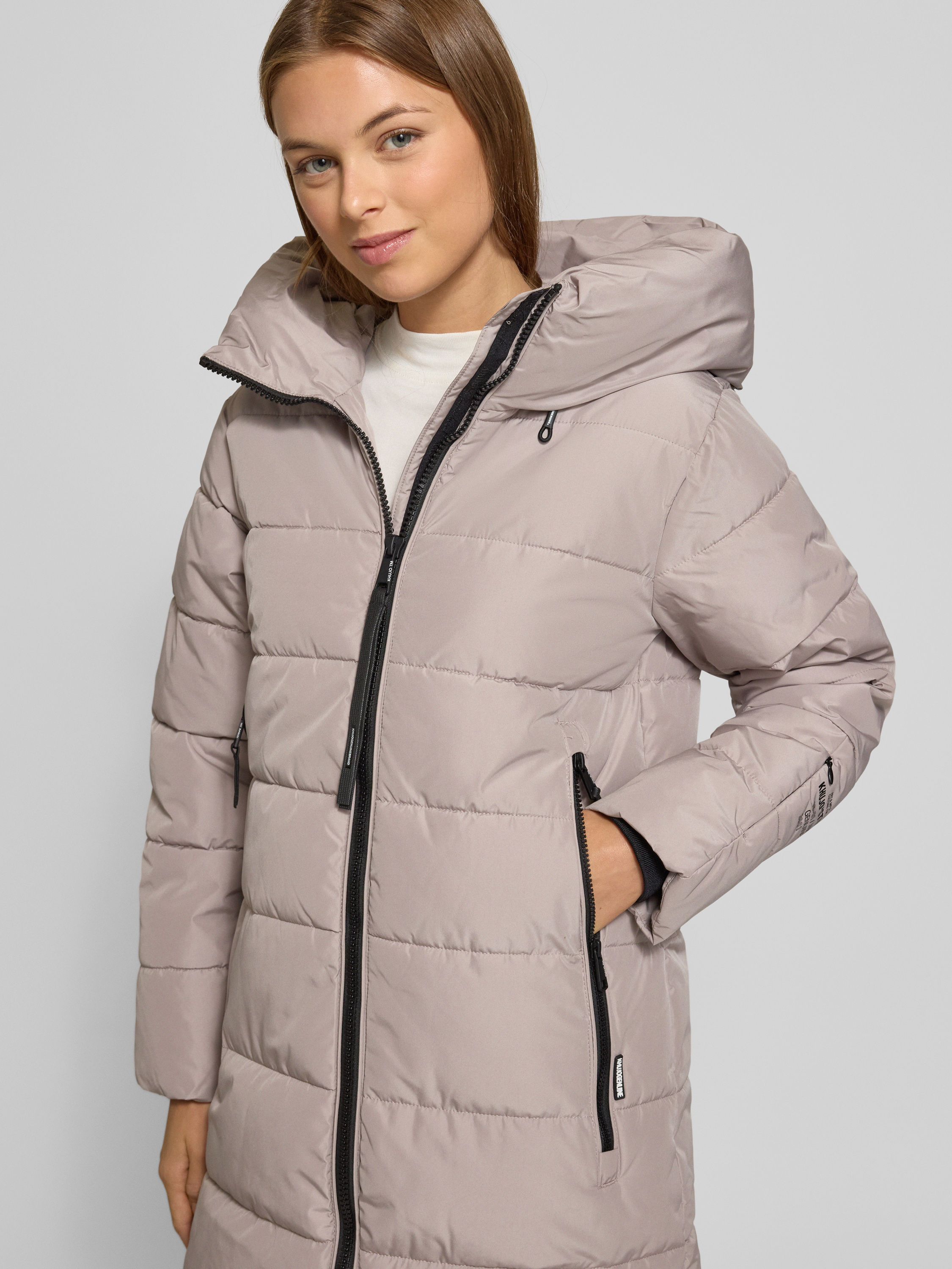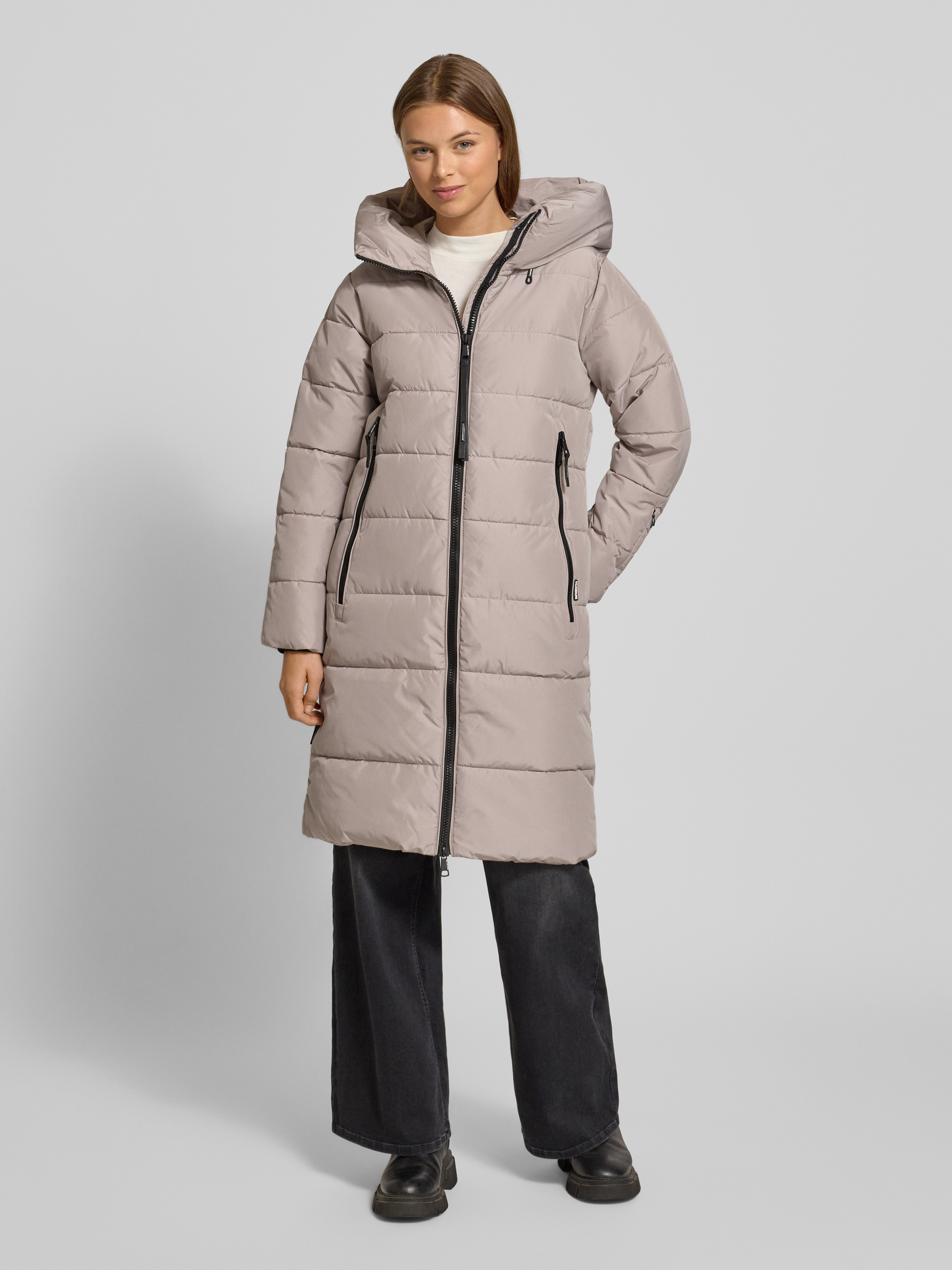 Regular fit gewatteerde lange jas met gevoerde opstaande kraag, model Jilia' in beige