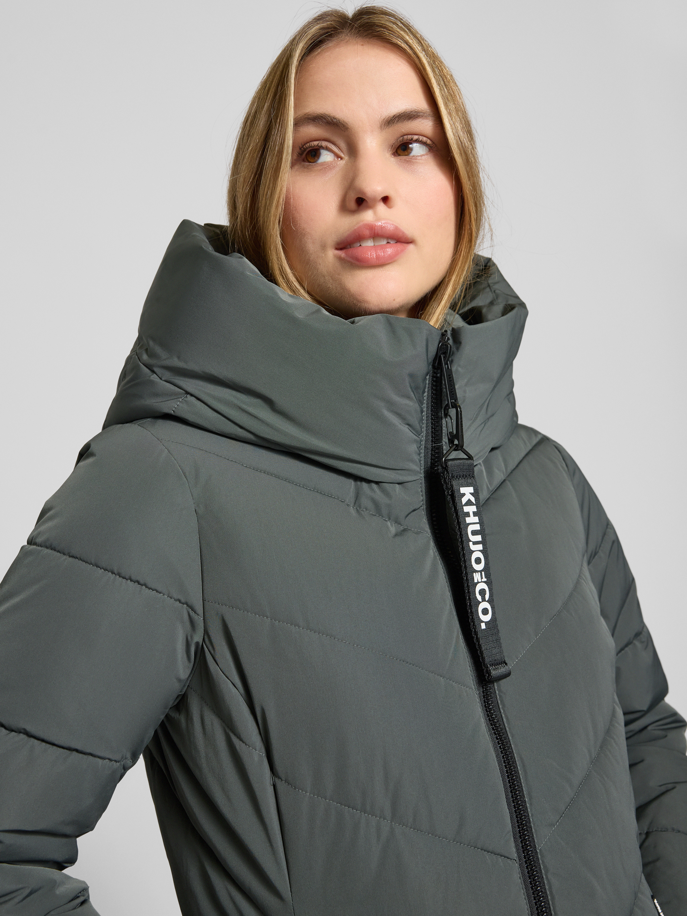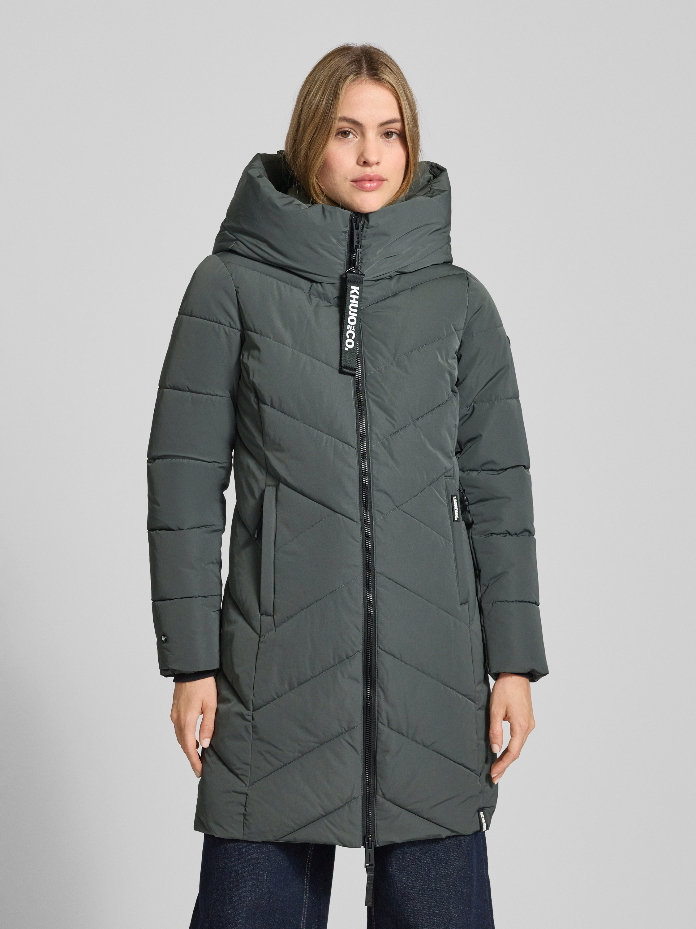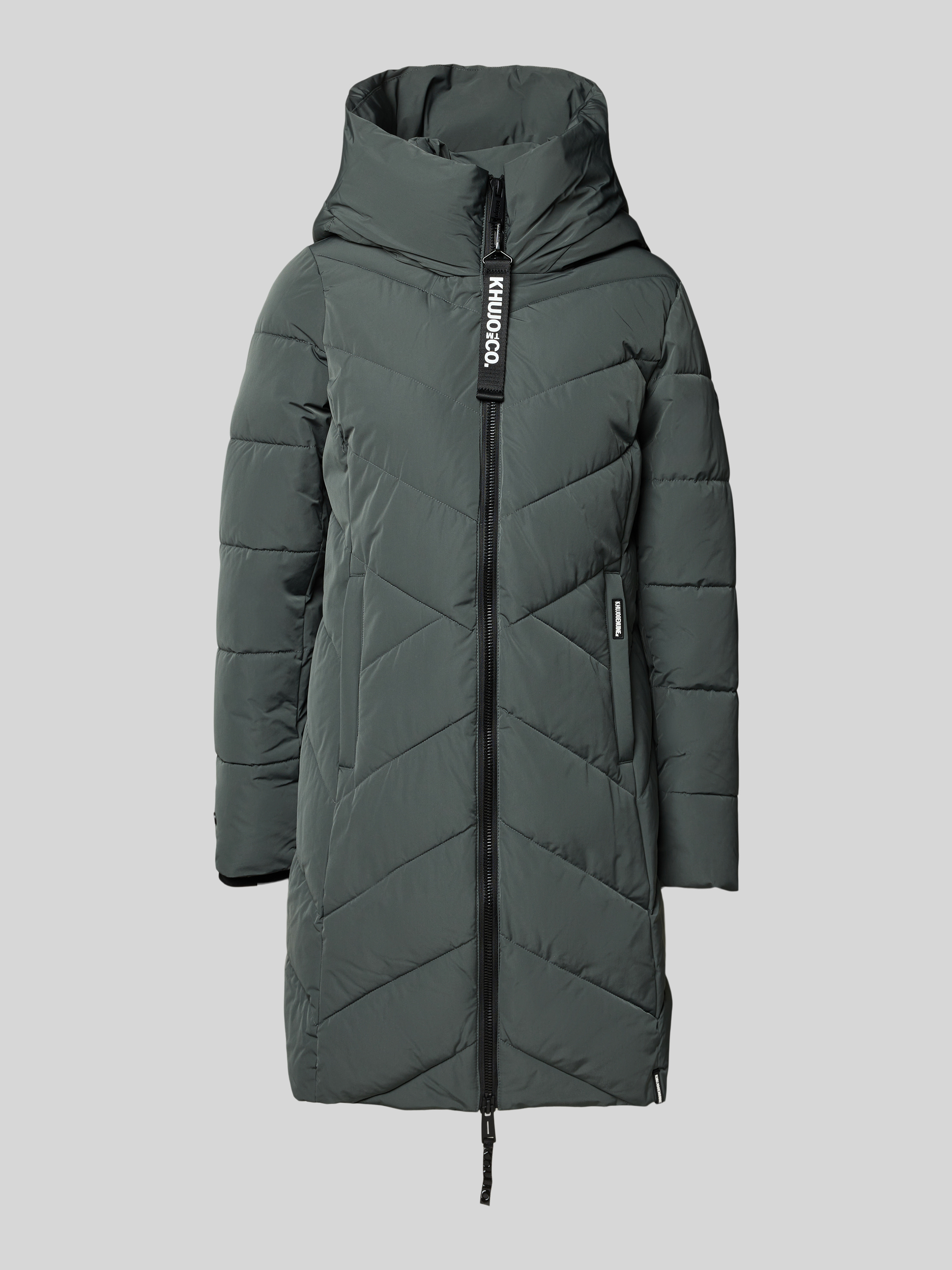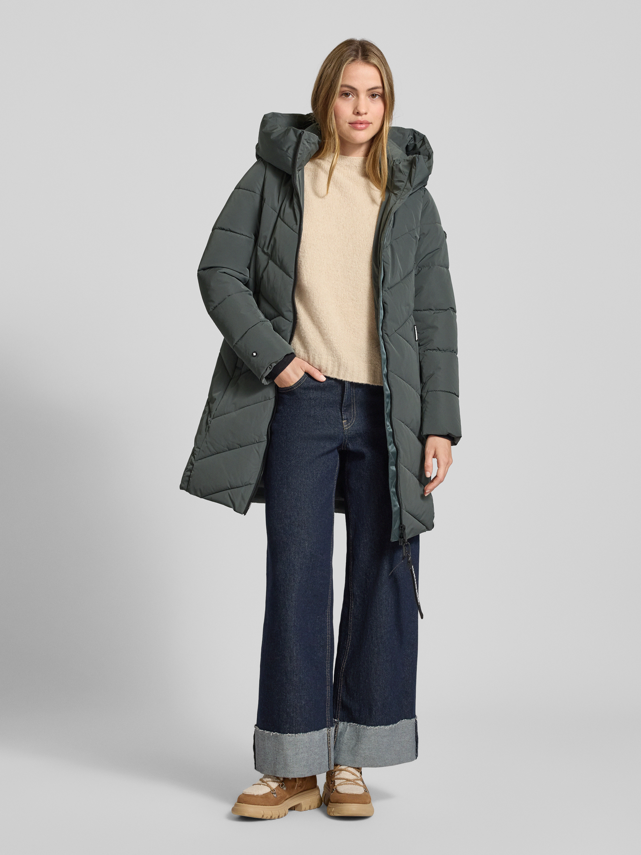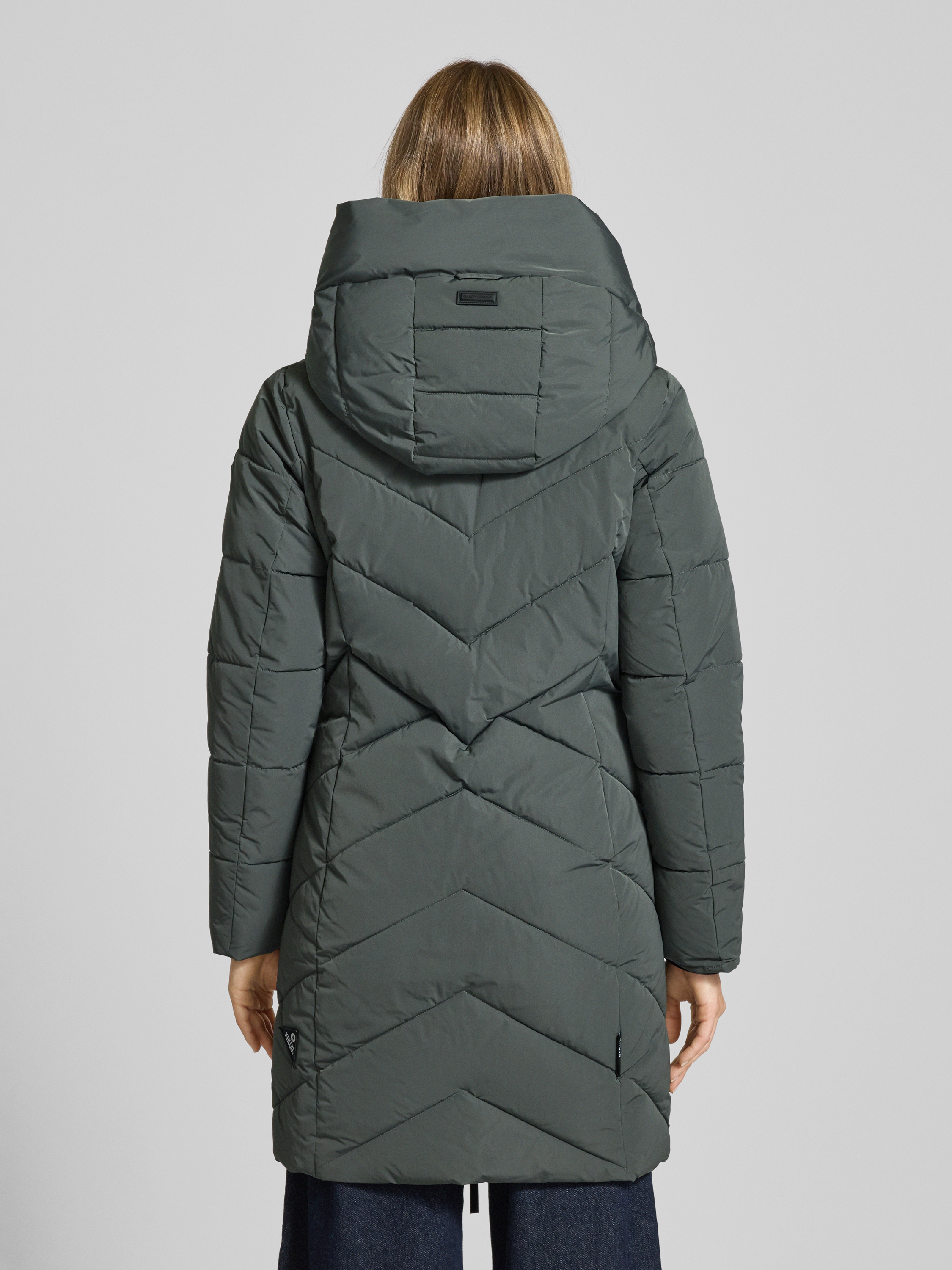 Regular fit gewatteerde lange jas met logoprint, model 'Darka' in donkergroen