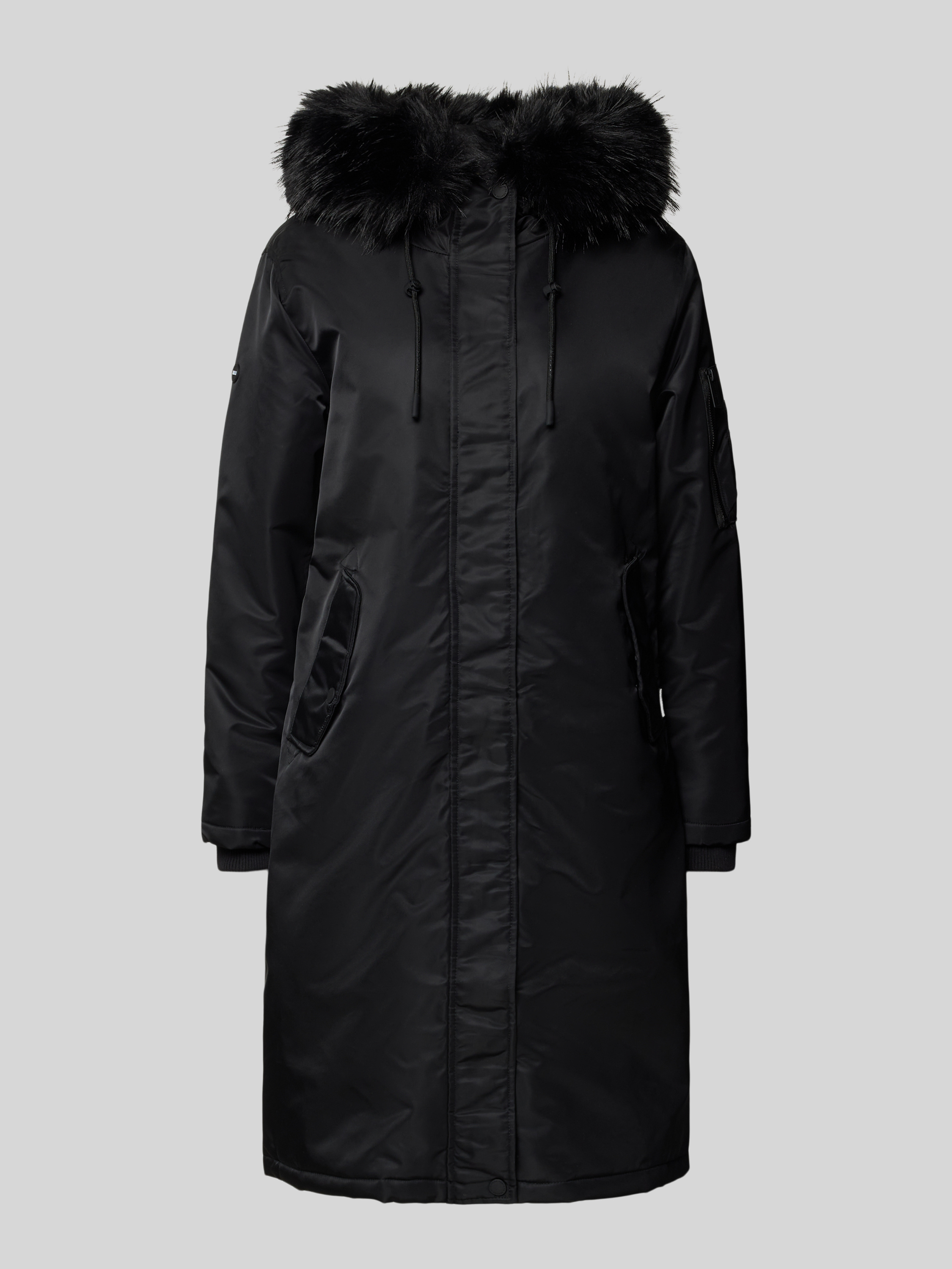 Regular fit lange jas met imitatiebont, model 'Jilla' in zwart