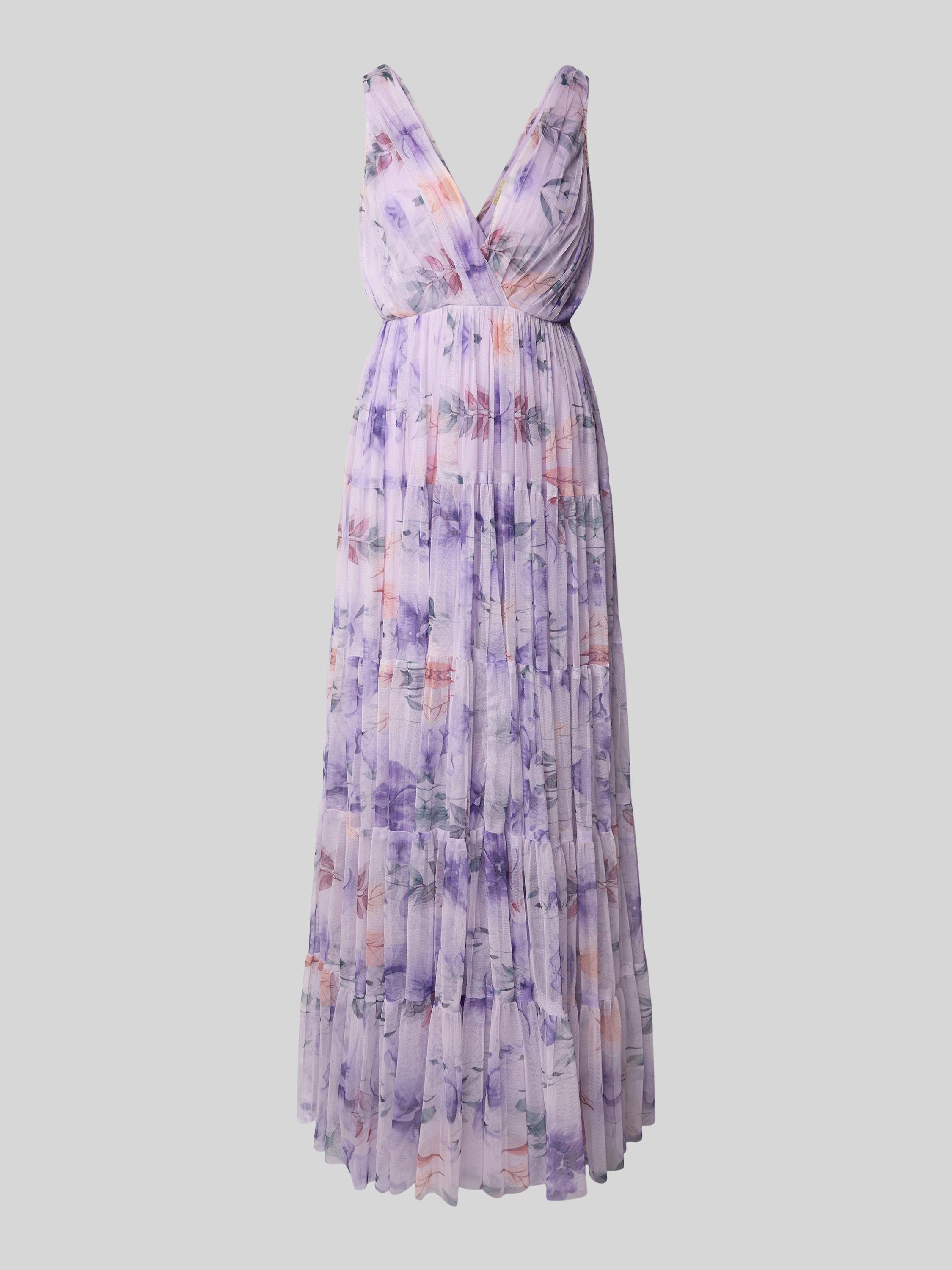 Avondjurk in laagjeslook met V-hals in paars