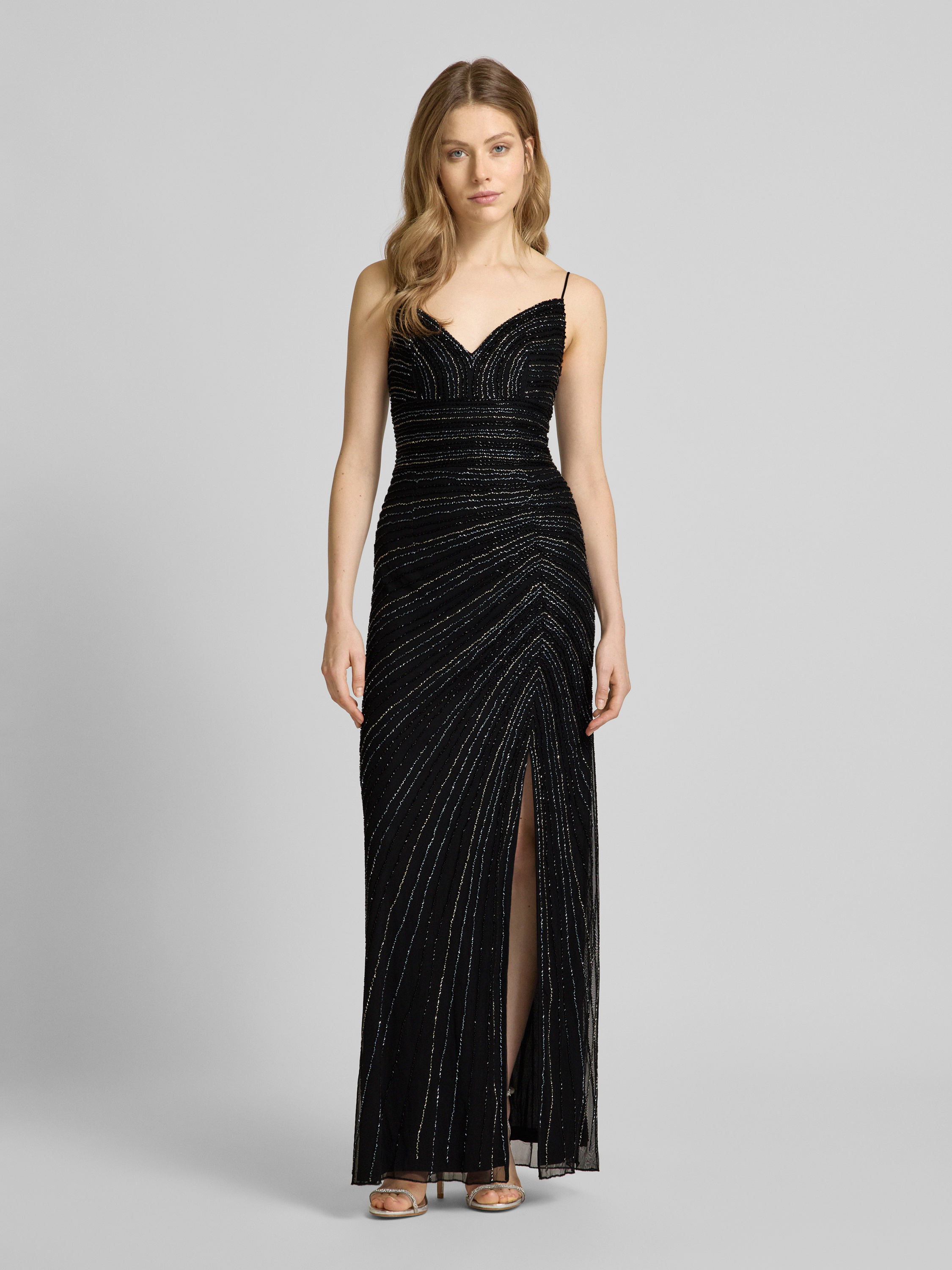 Avondjurk met spaghettibandjes in zwart