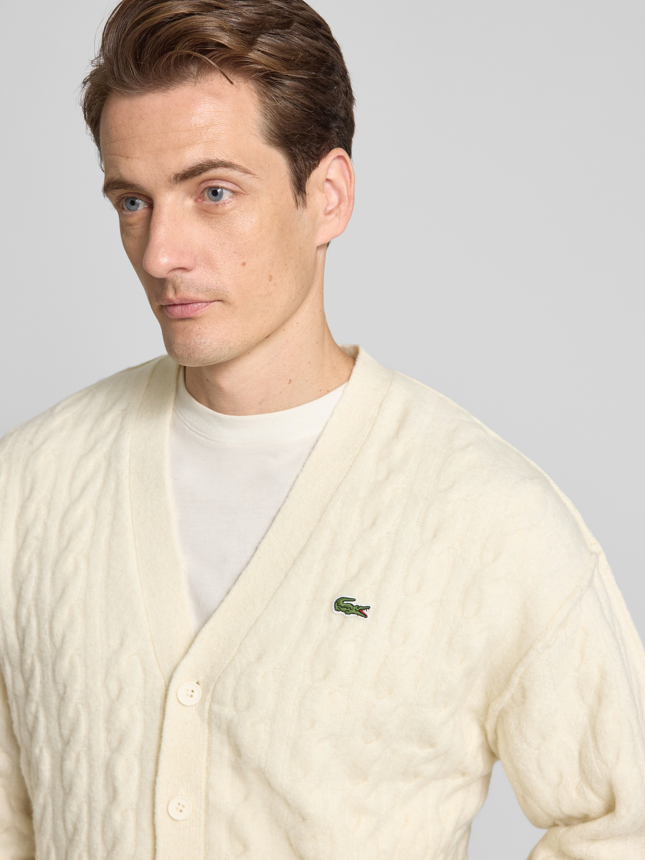 LacosteRelaxed fit gebreid jack van wolmix in offwhite