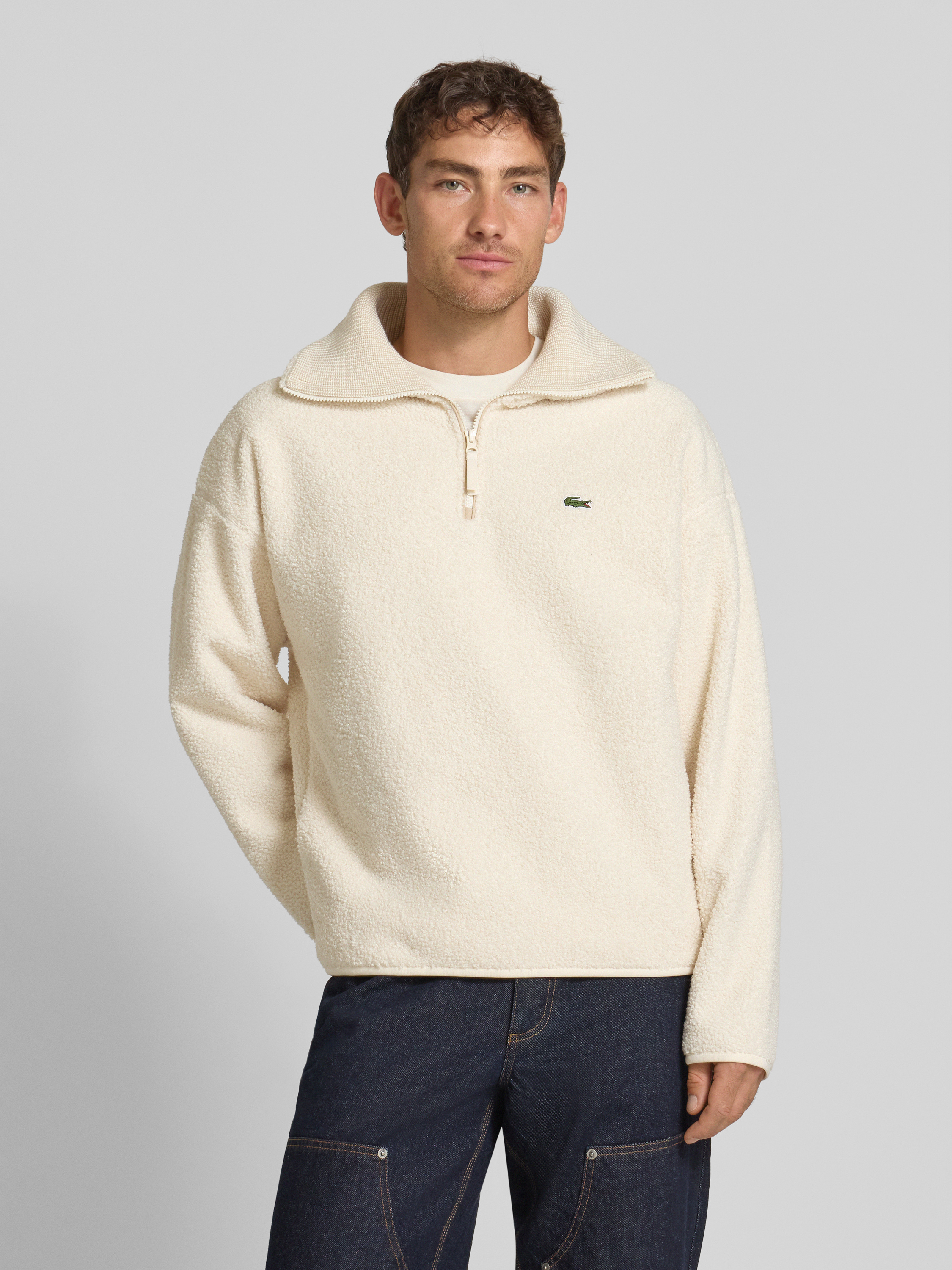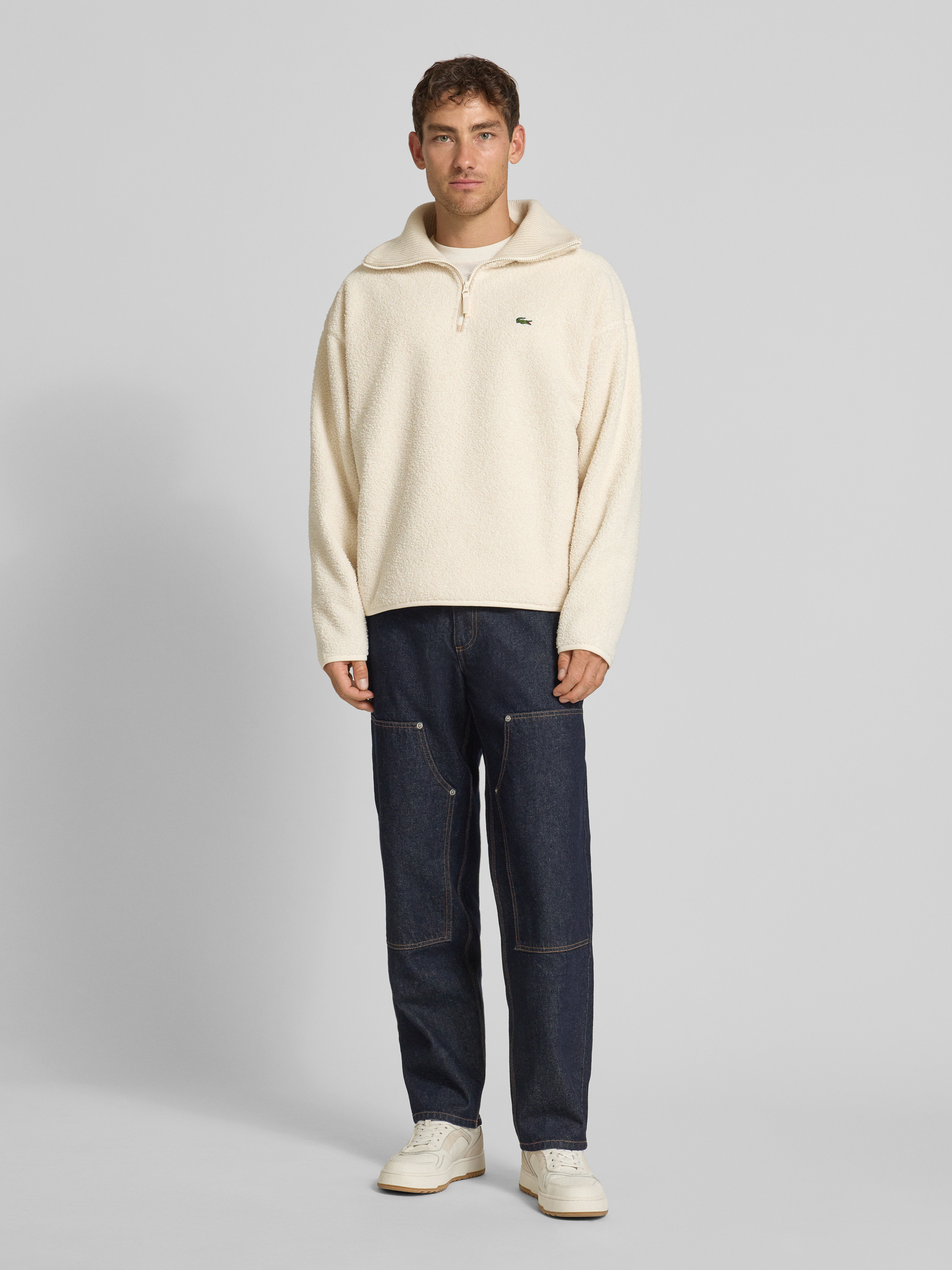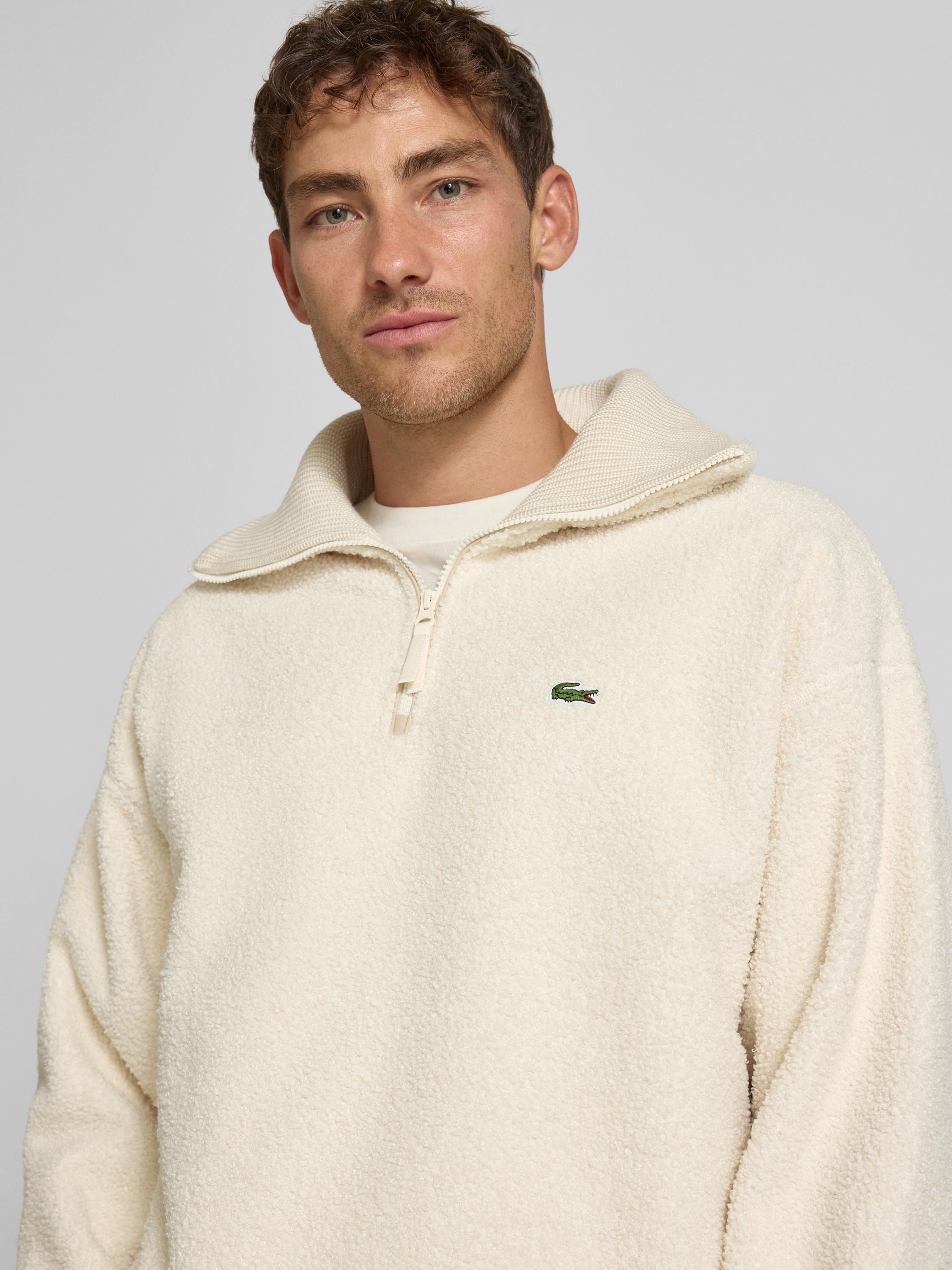 Relaxed fit sweatshirt met schipperskraag van warme fleece in offwhite
