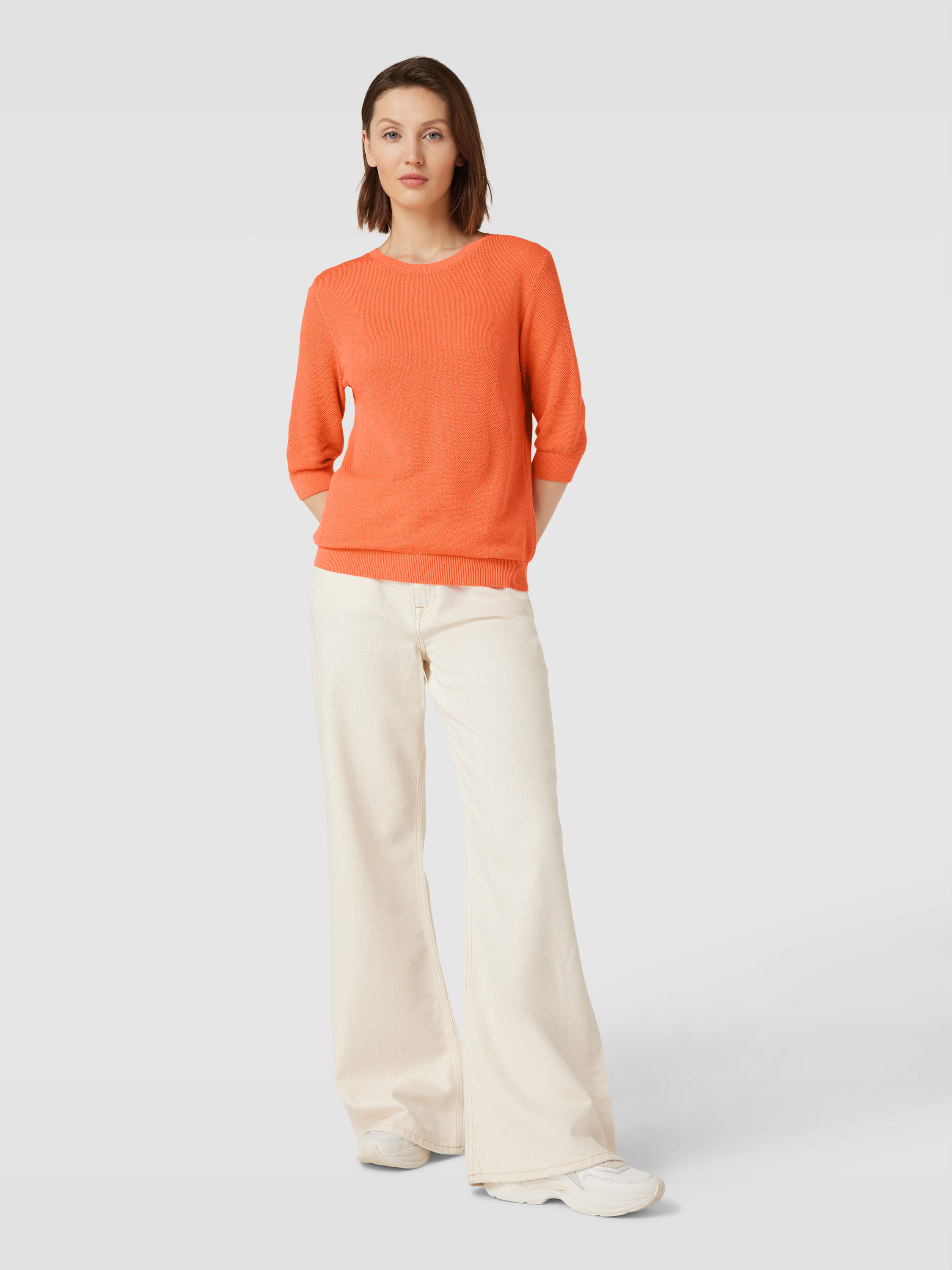 LaniusGebreide pullover met structuurmotief in abrikoos