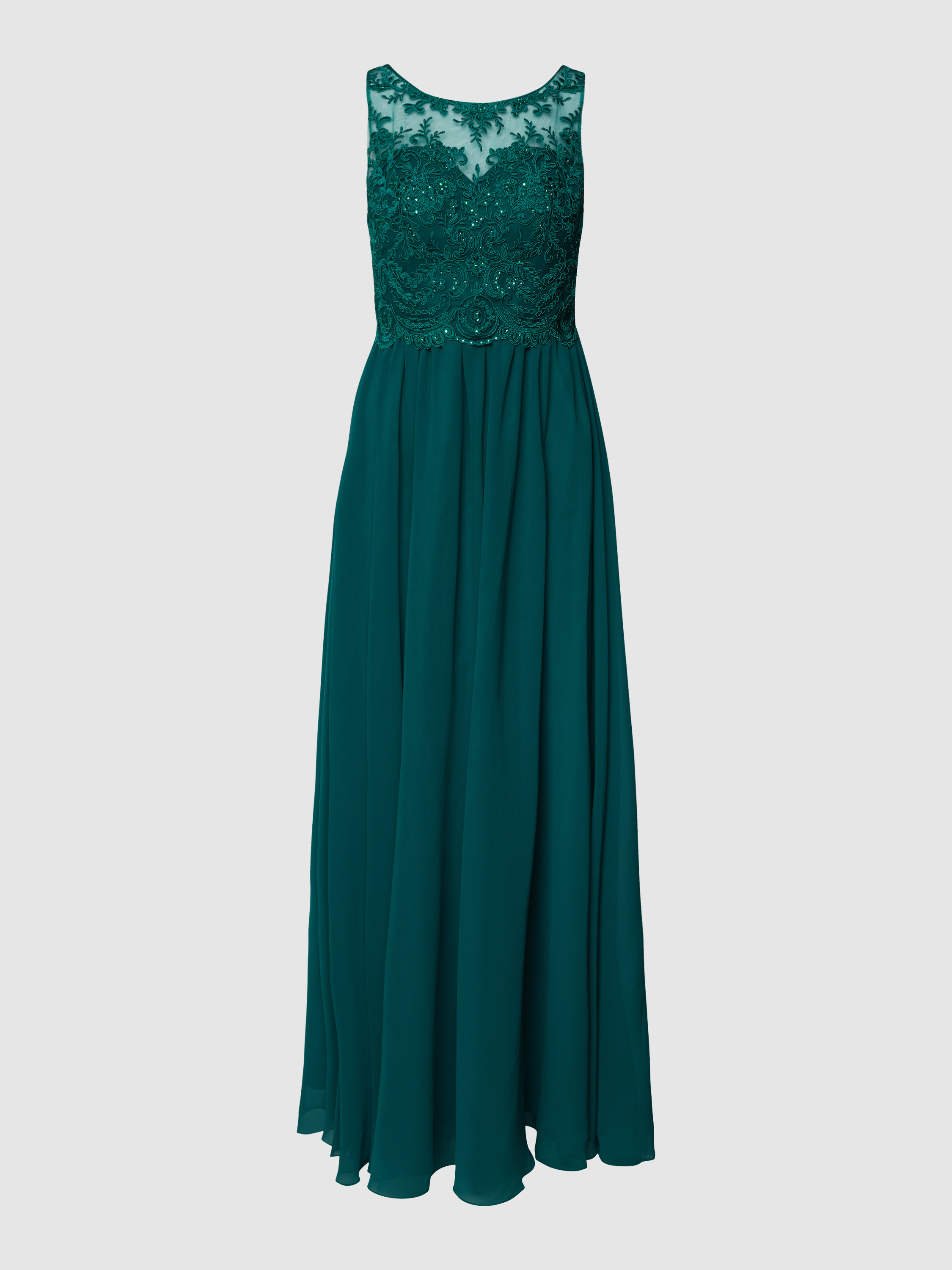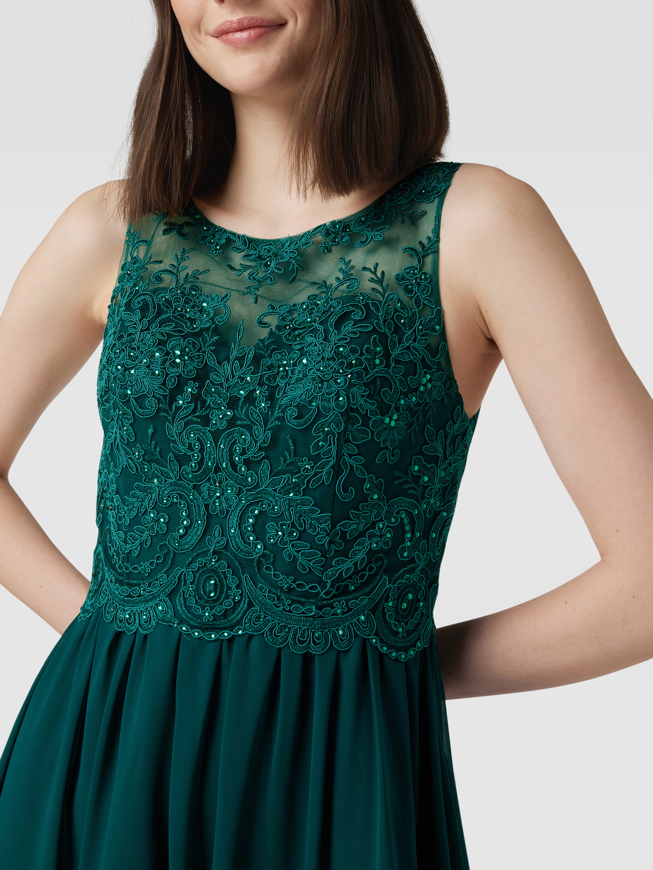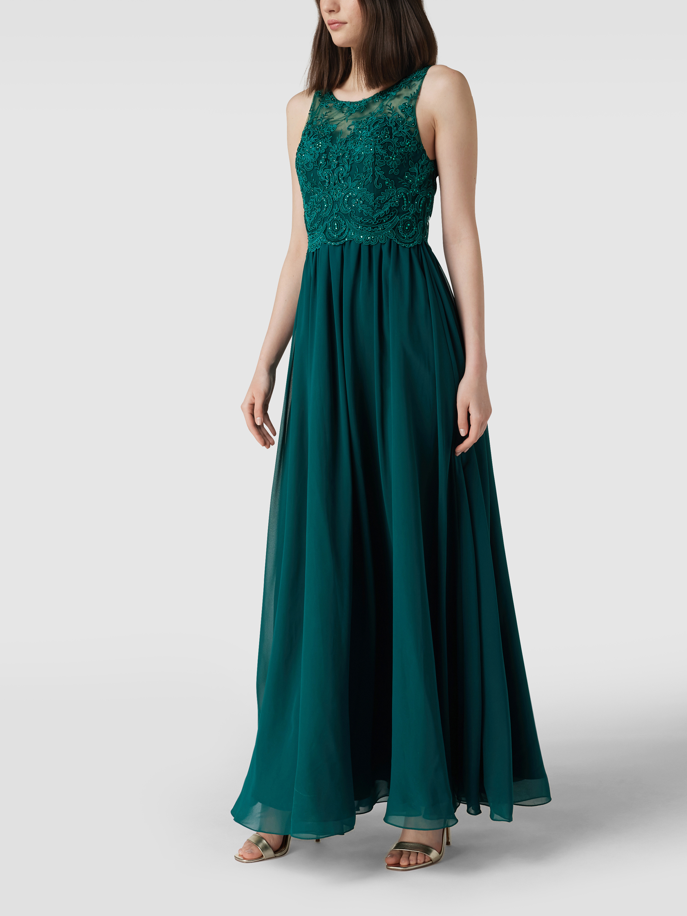 LaonaAvondjurk met siersteentjes en bloemenborduursels in groen