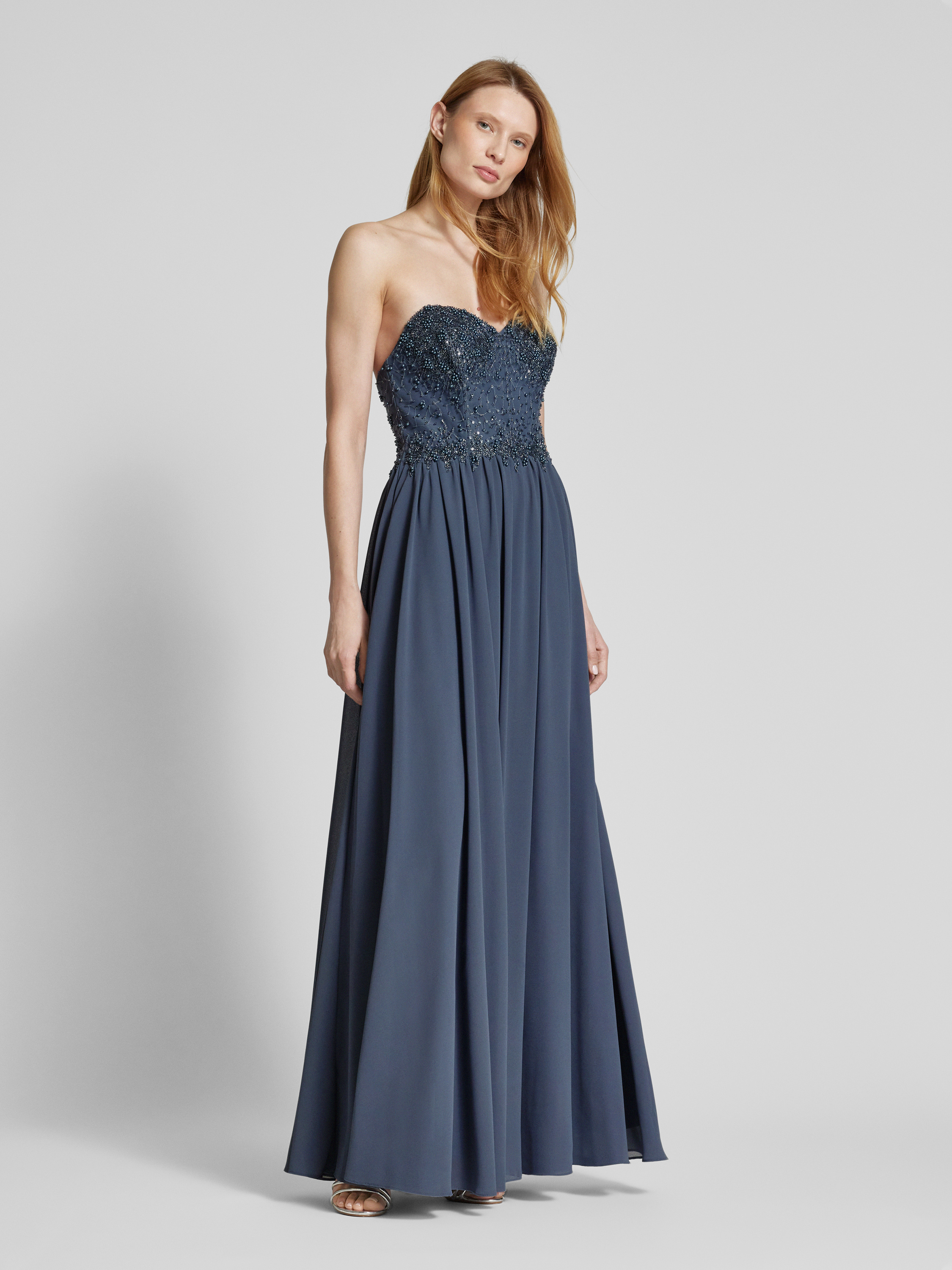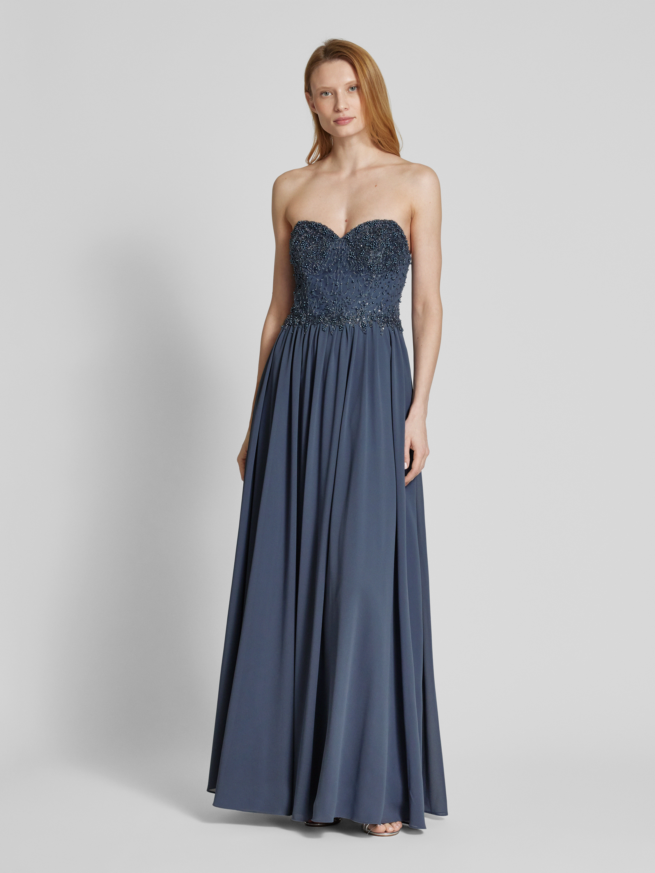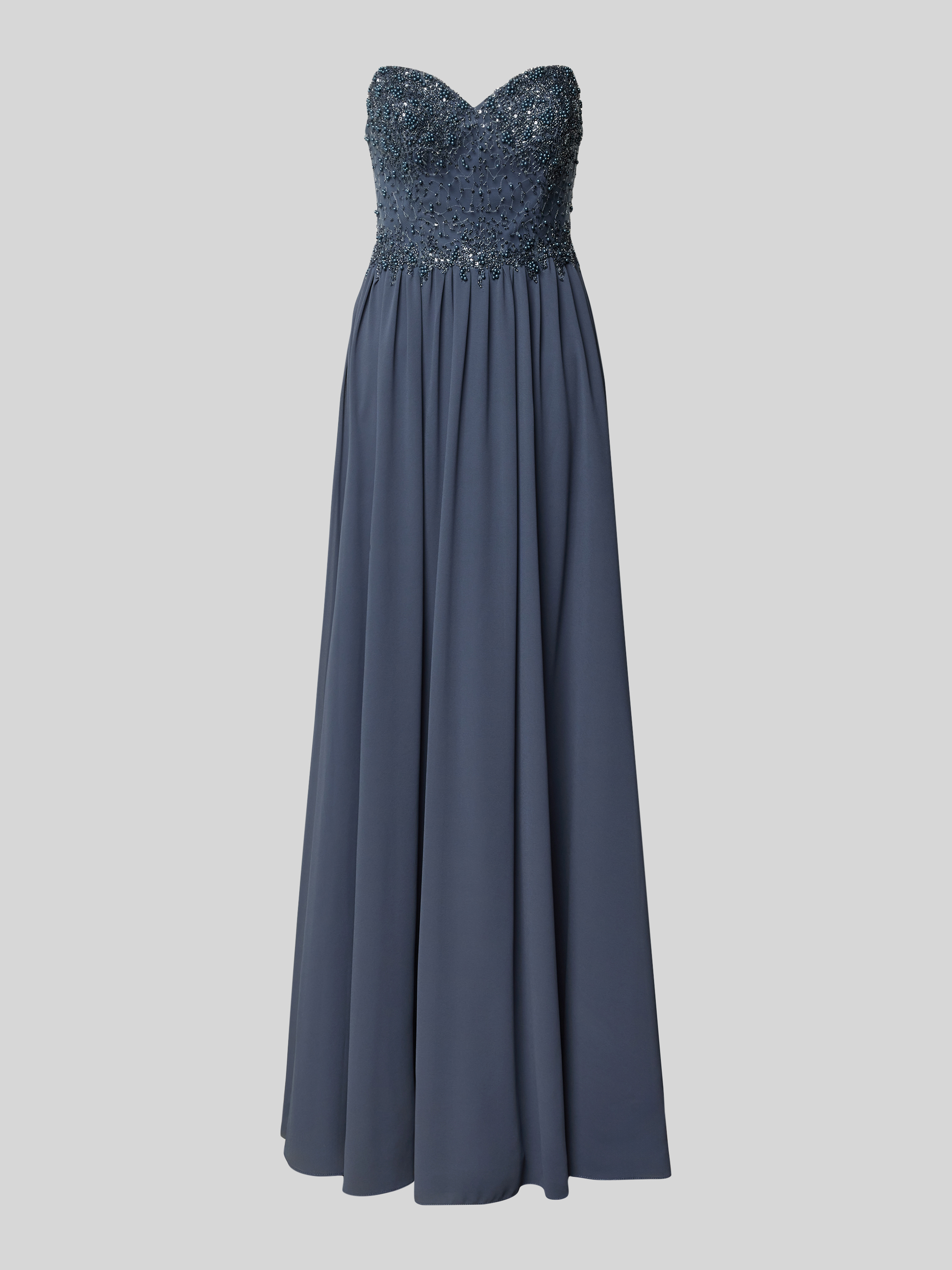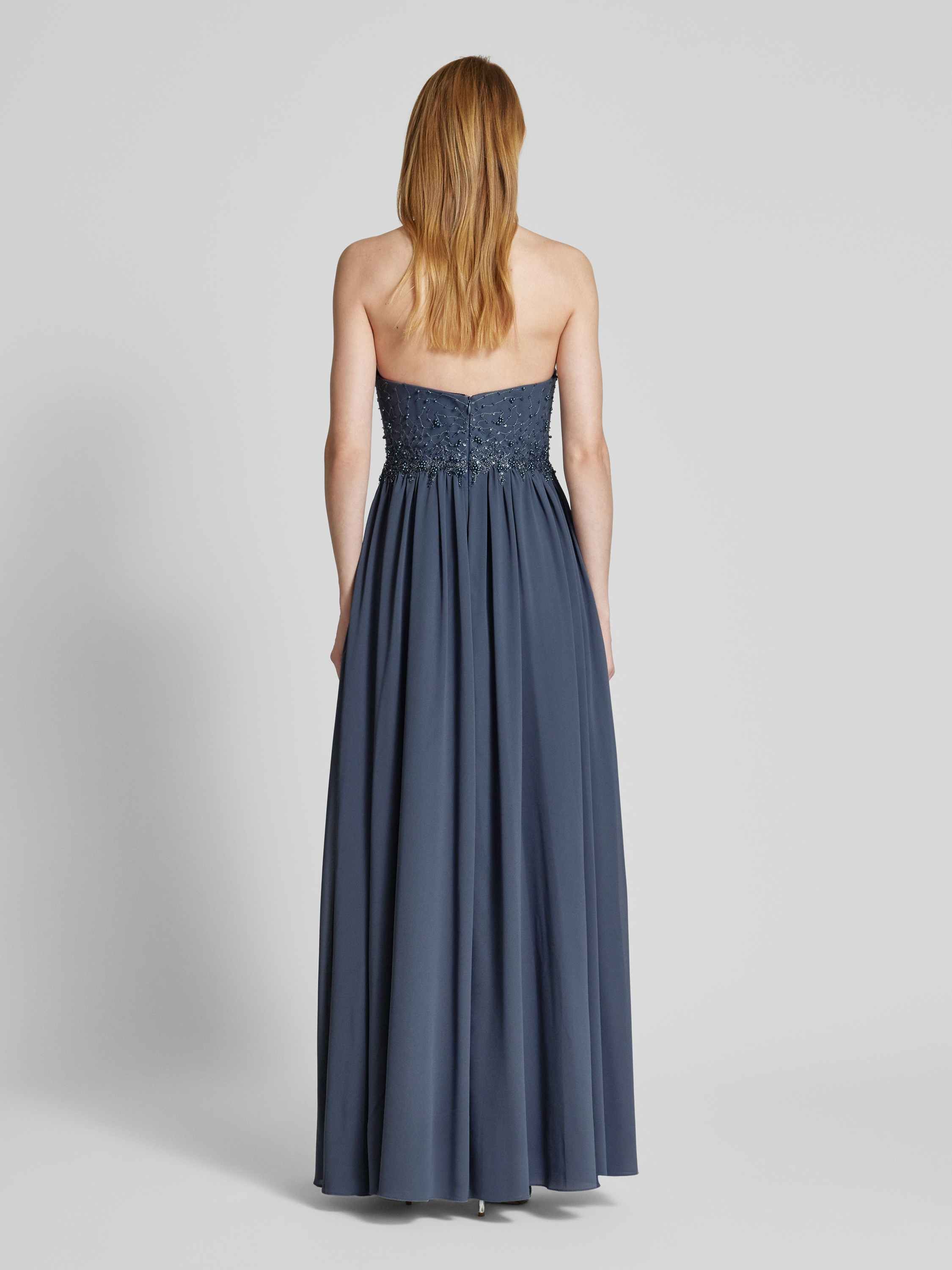 LaonaAvondjurk met siersteentjes en pailletten in rookblauw