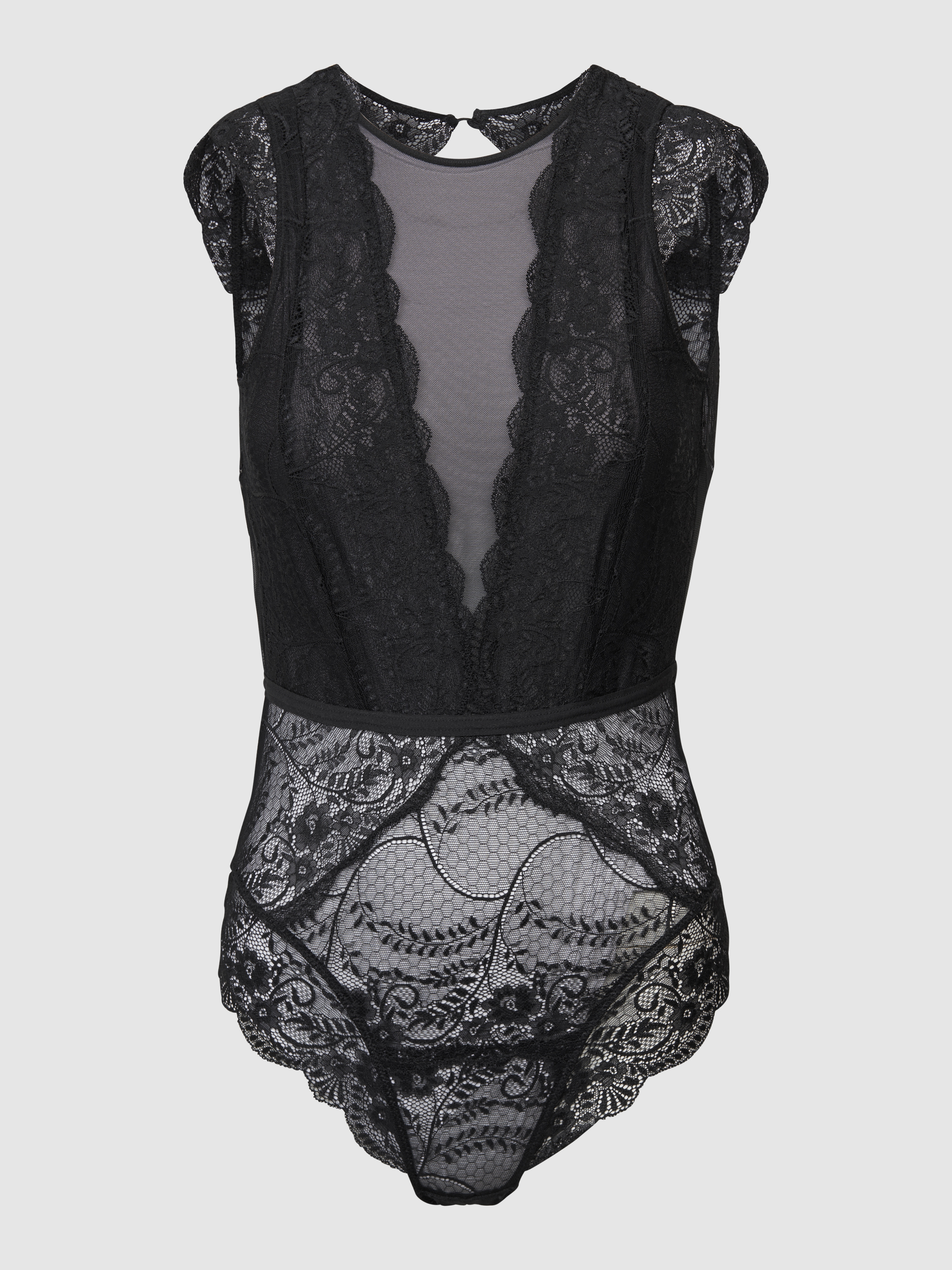 Body met gebloemd kant in zwart