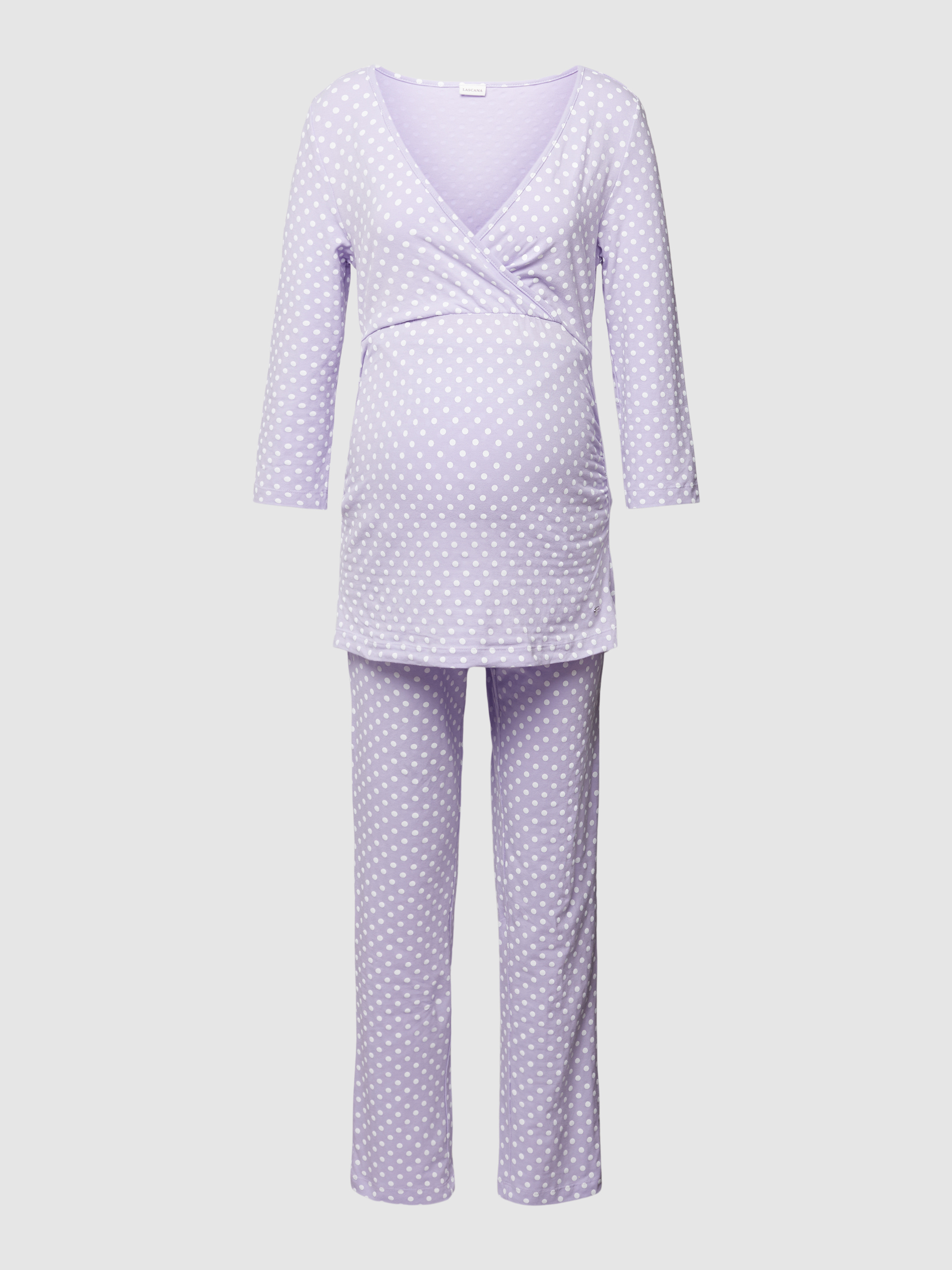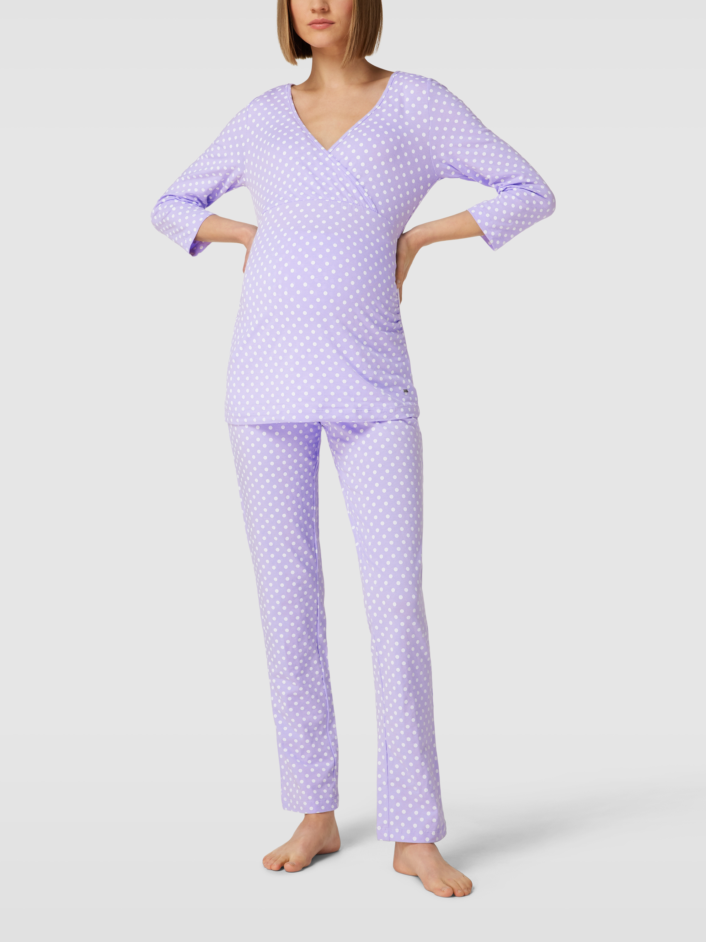 Zwangerschapspyjama met 3/4-mouwen en voedingsfunctie in paars