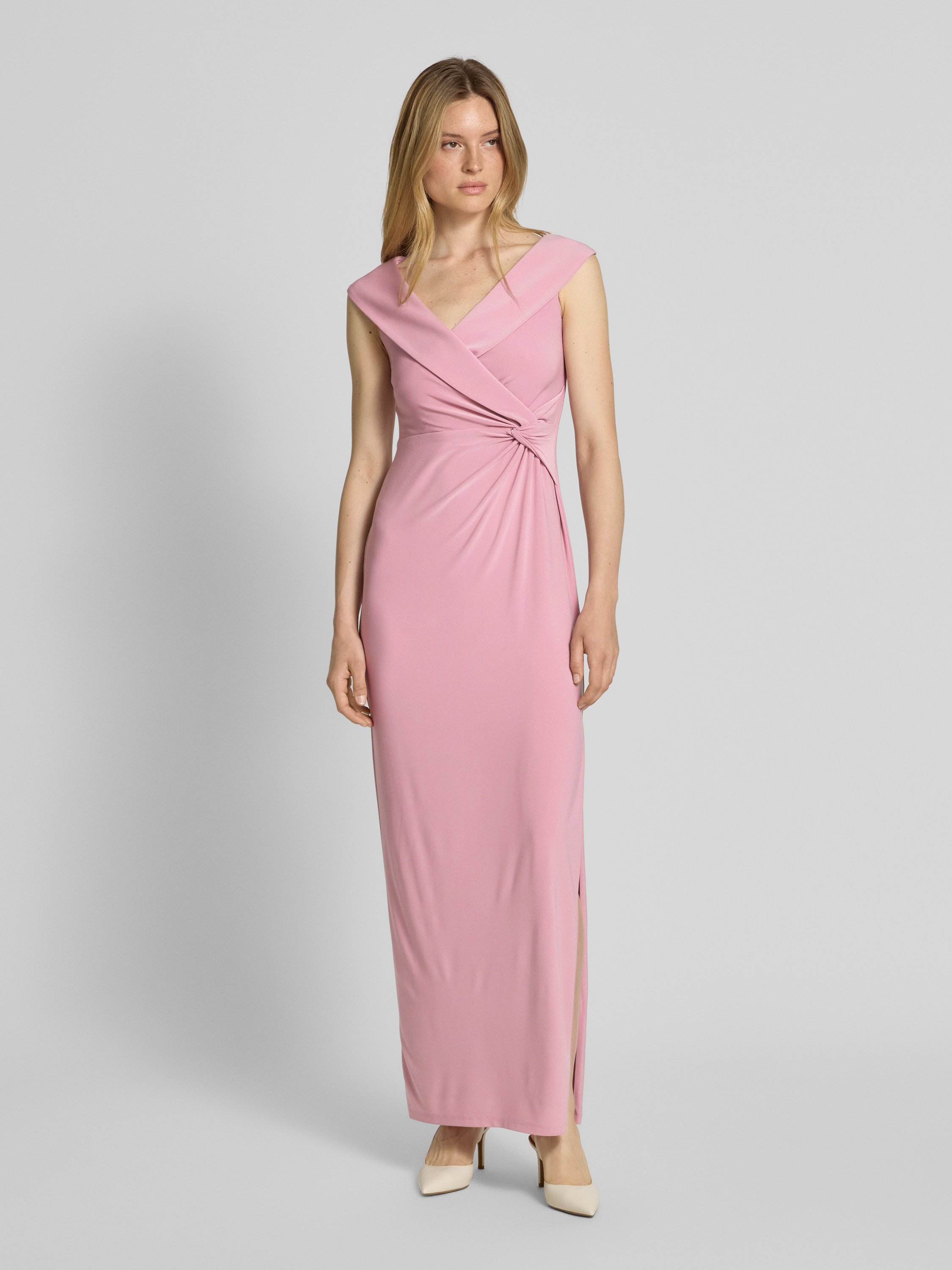 Avondjurk in wikkellook, model 'LEONIDAS' in rosé
