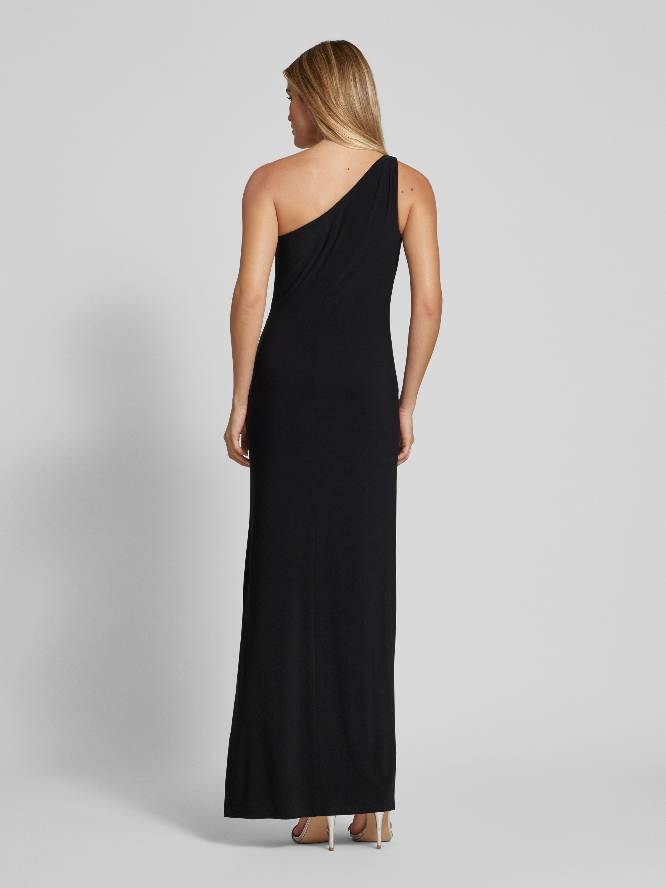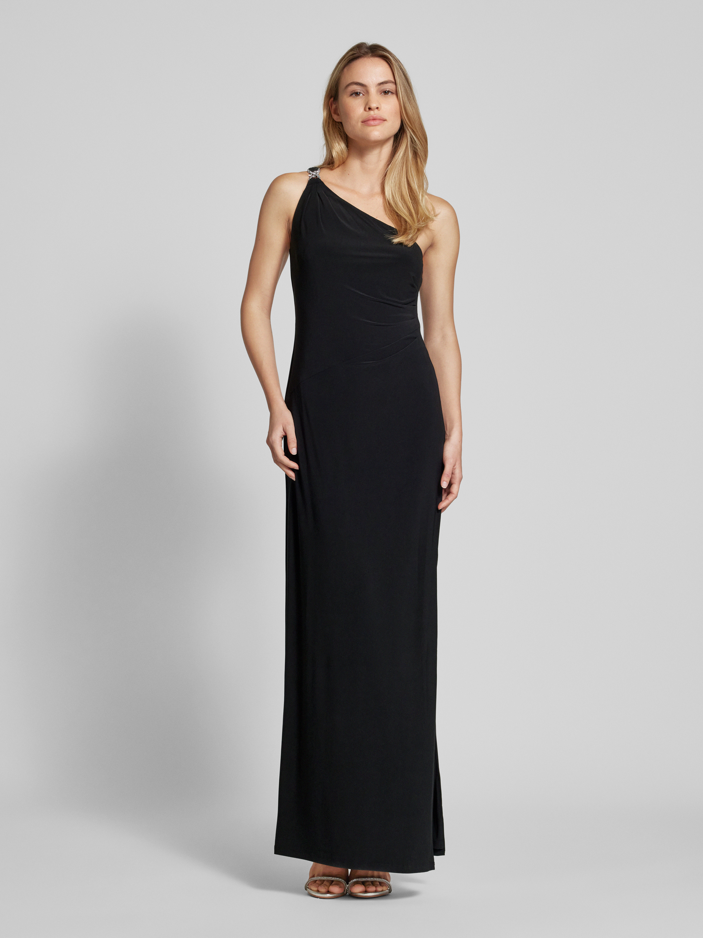 Avondjurk met one shoulder-band, model 'BELINA' in zwart