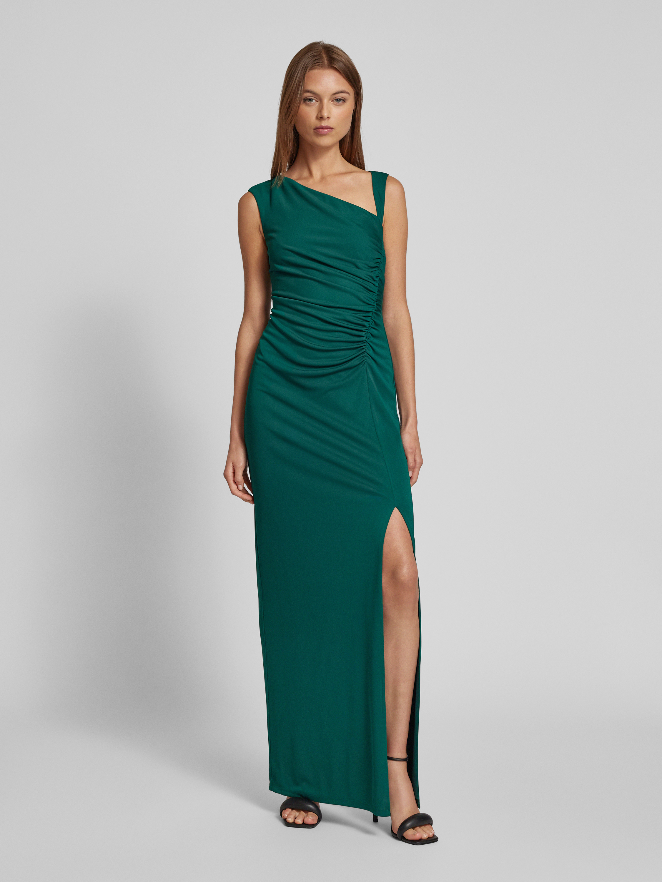 Avondjurk met plooien, model 'BARAIYA' in donkergroen