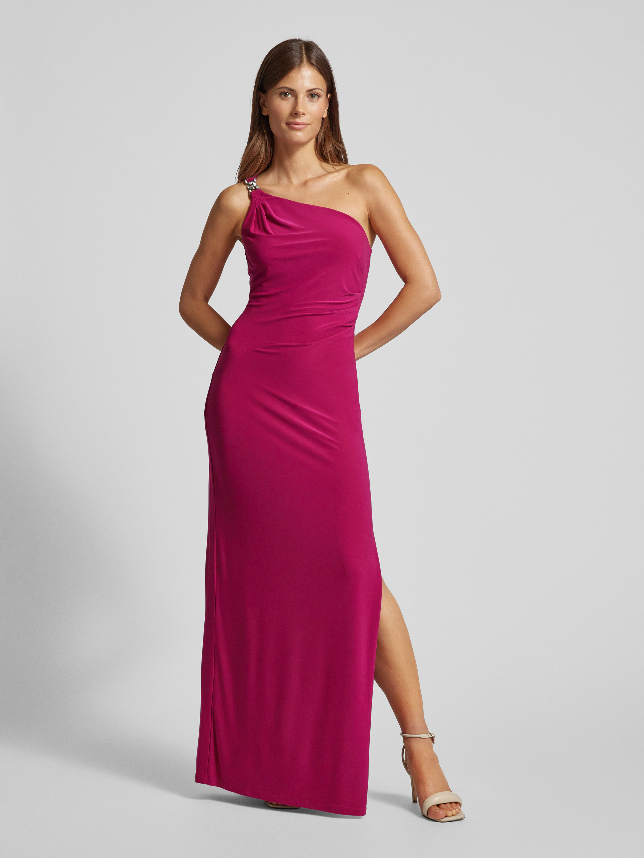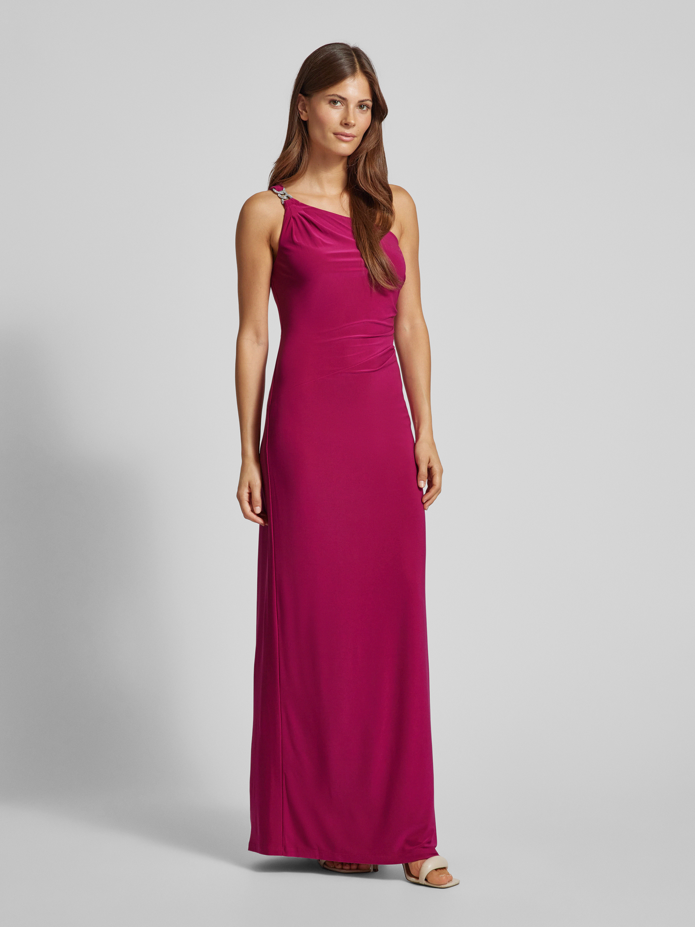 Avondjurk met plooien, model 'BELINA' in fuchsia