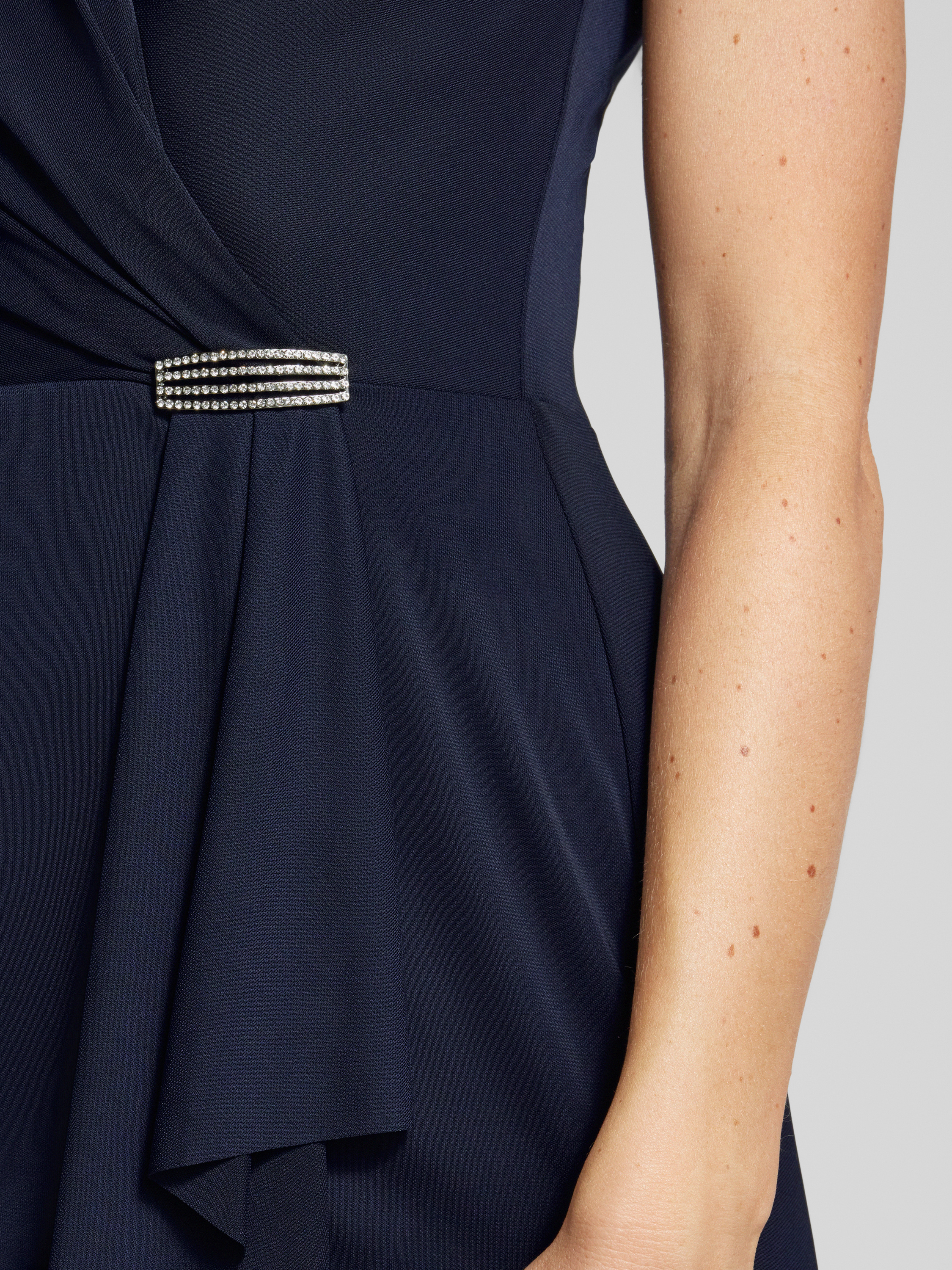 Knielange cocktailjurk met applicatie, model 'RYLAN' in donkerblauw