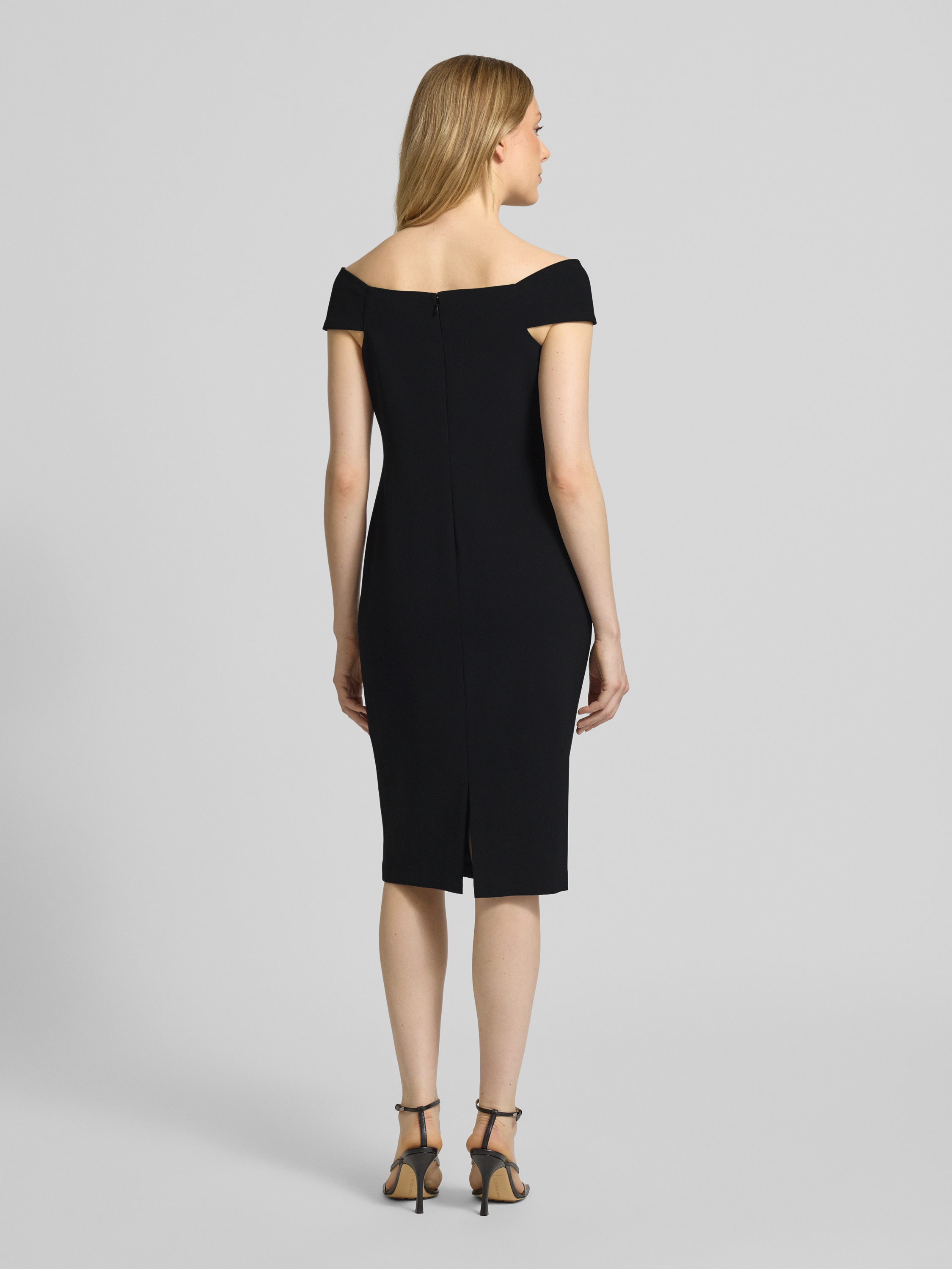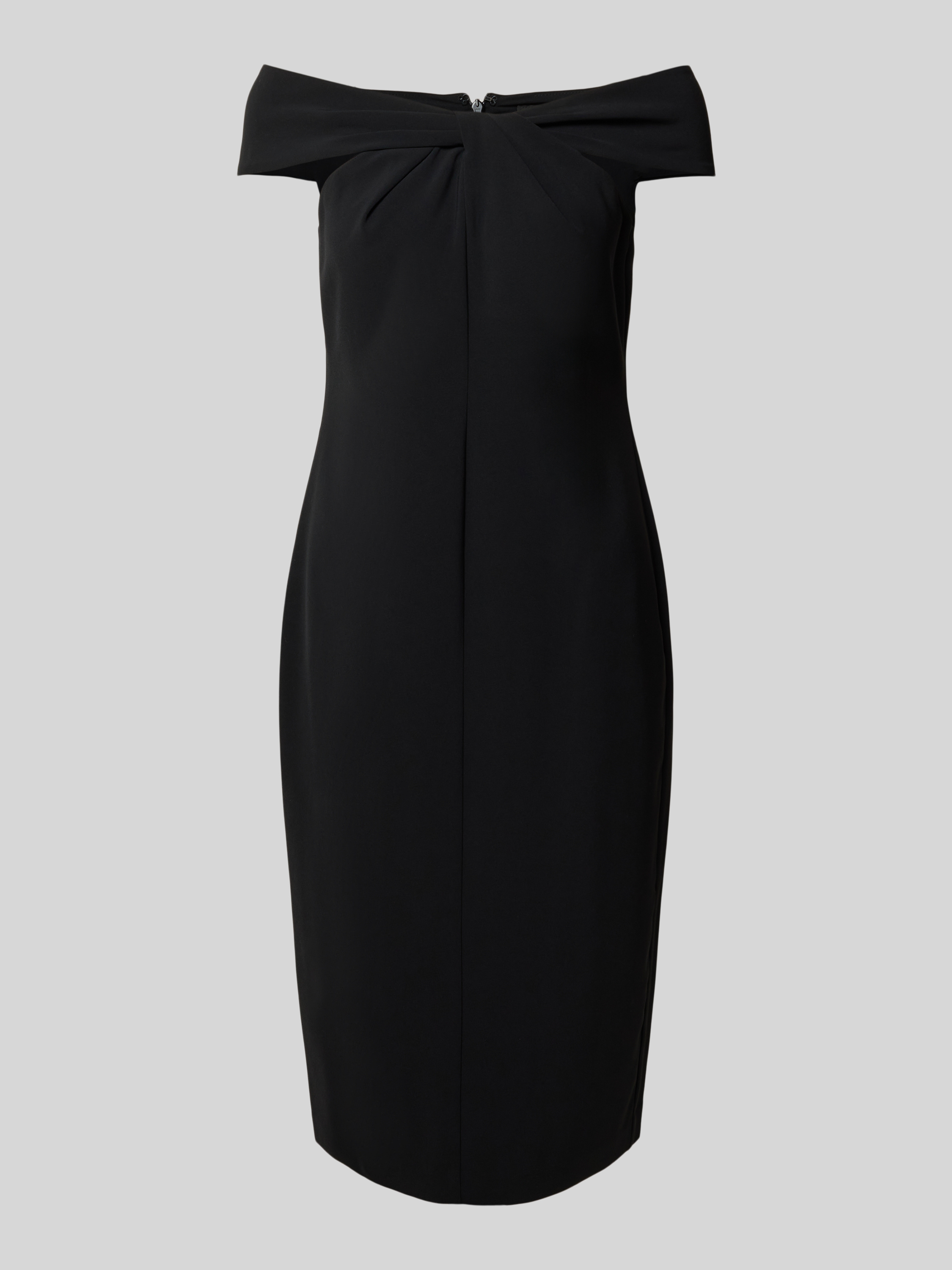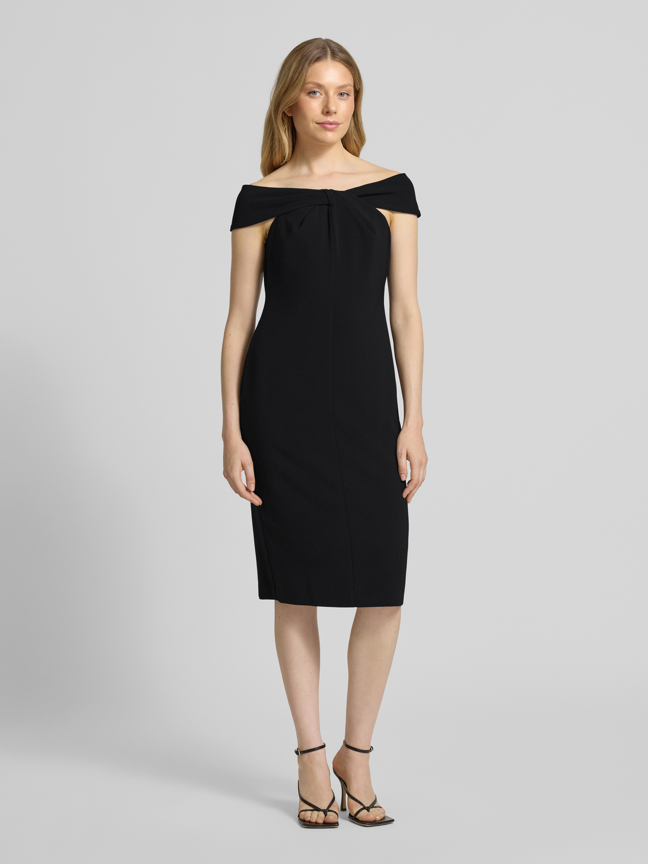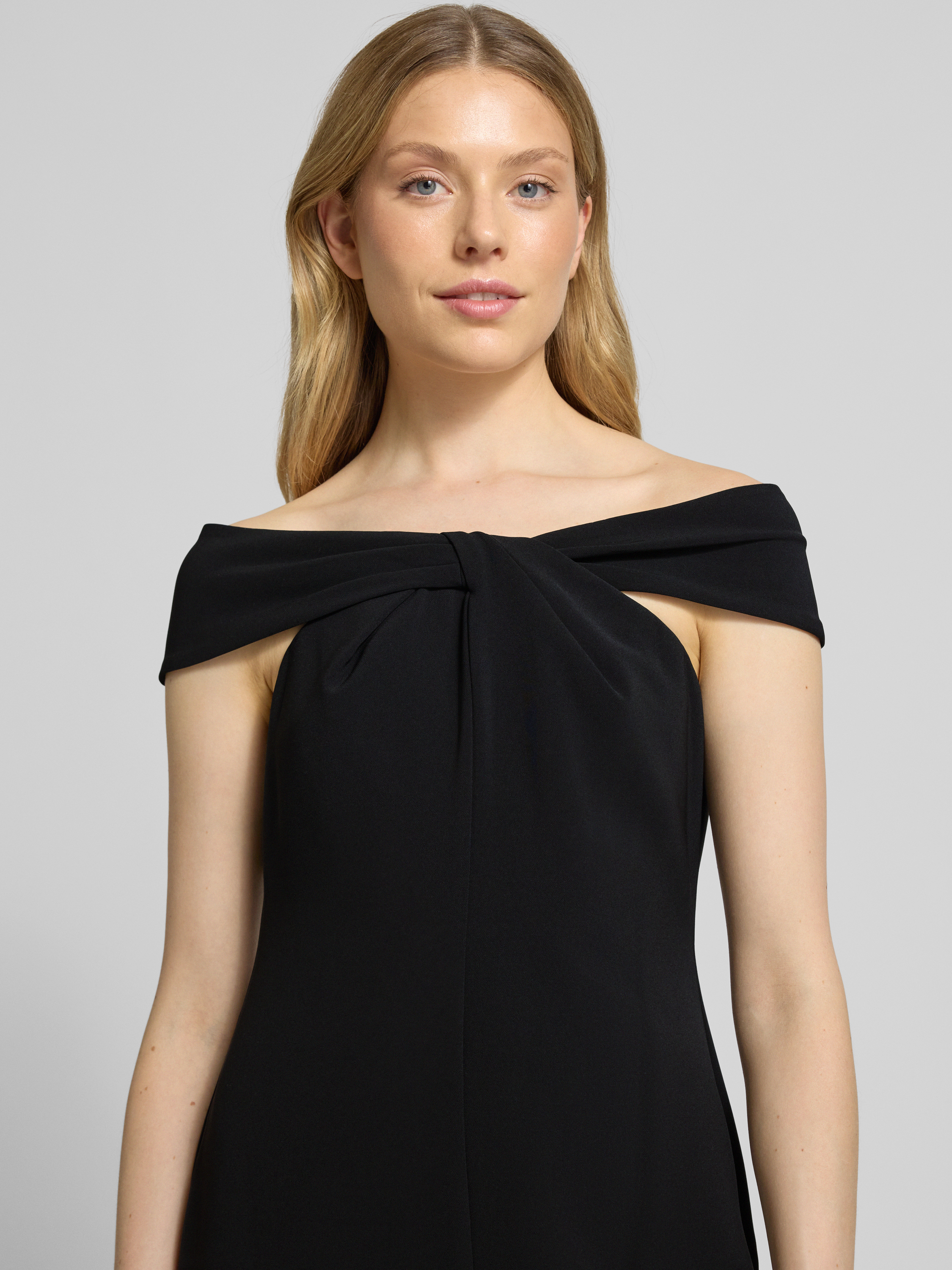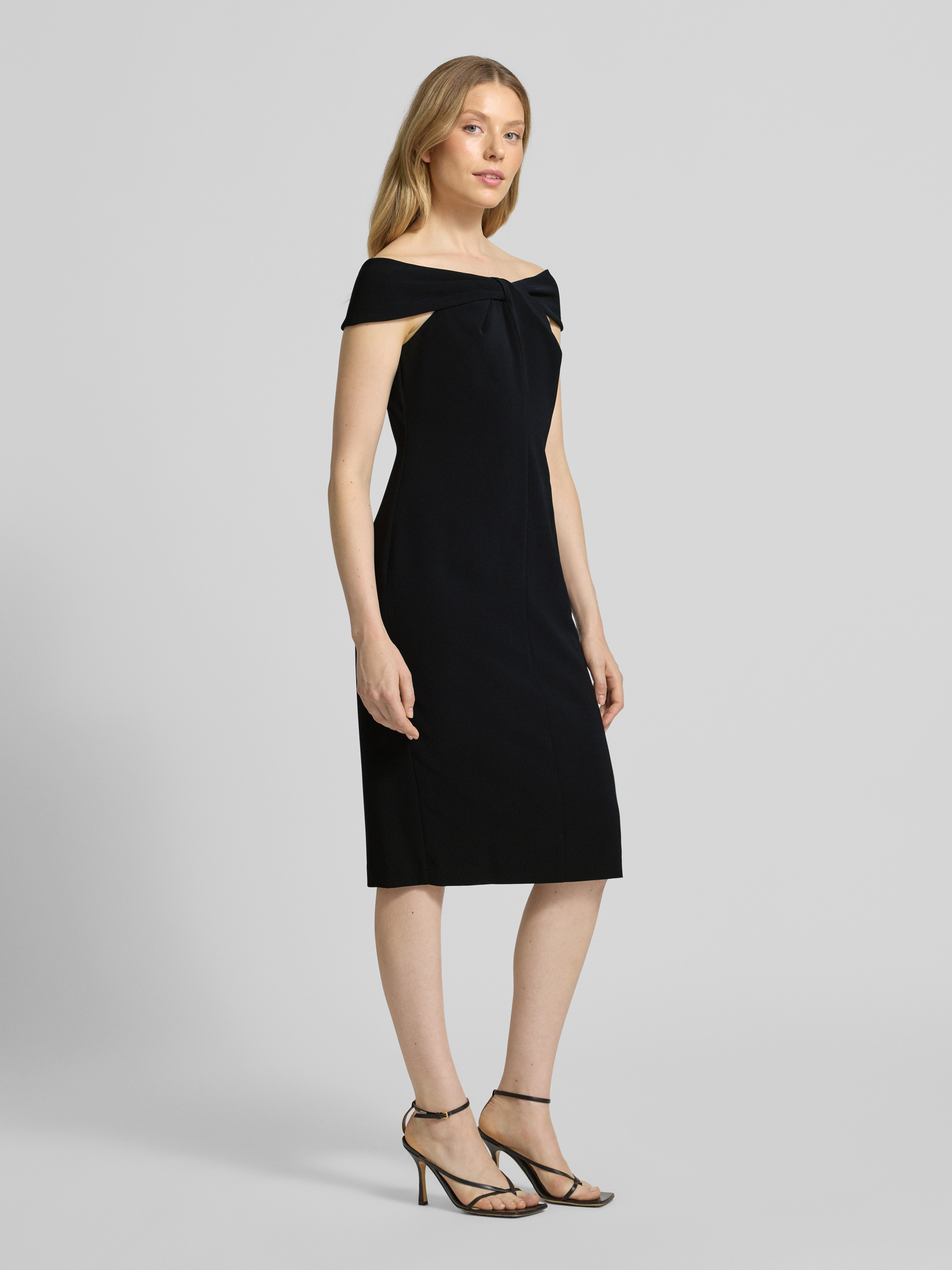 Knielange cocktailjurk met knoopdetail, model 'TAKOTA' in zwart